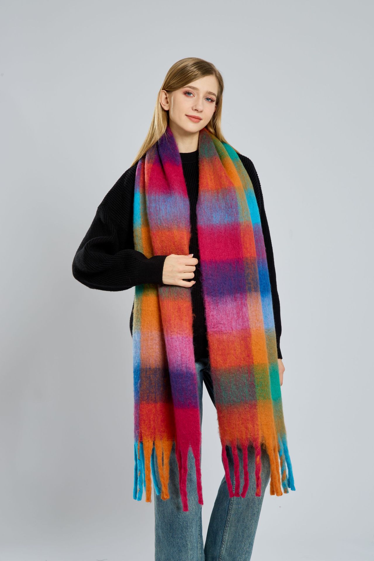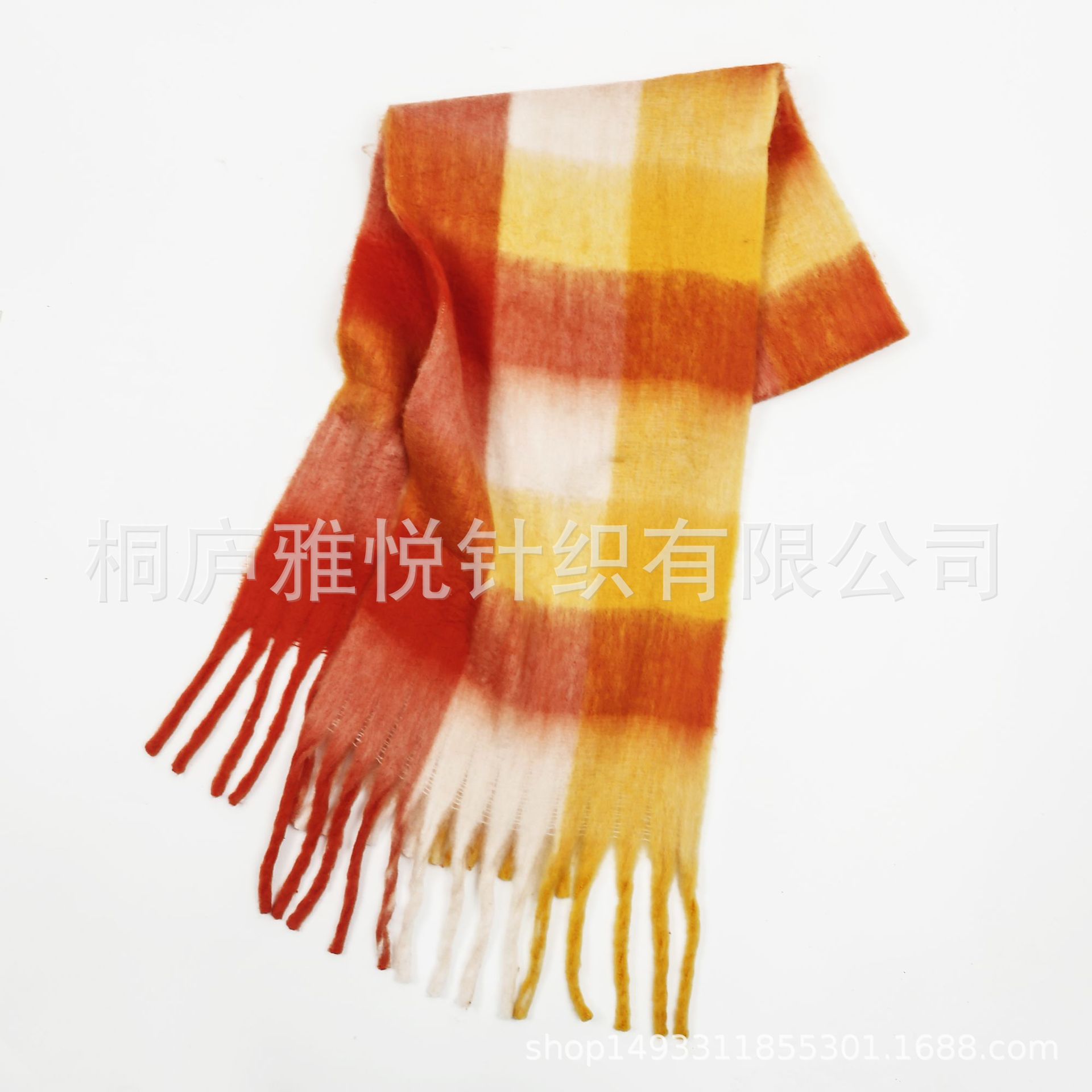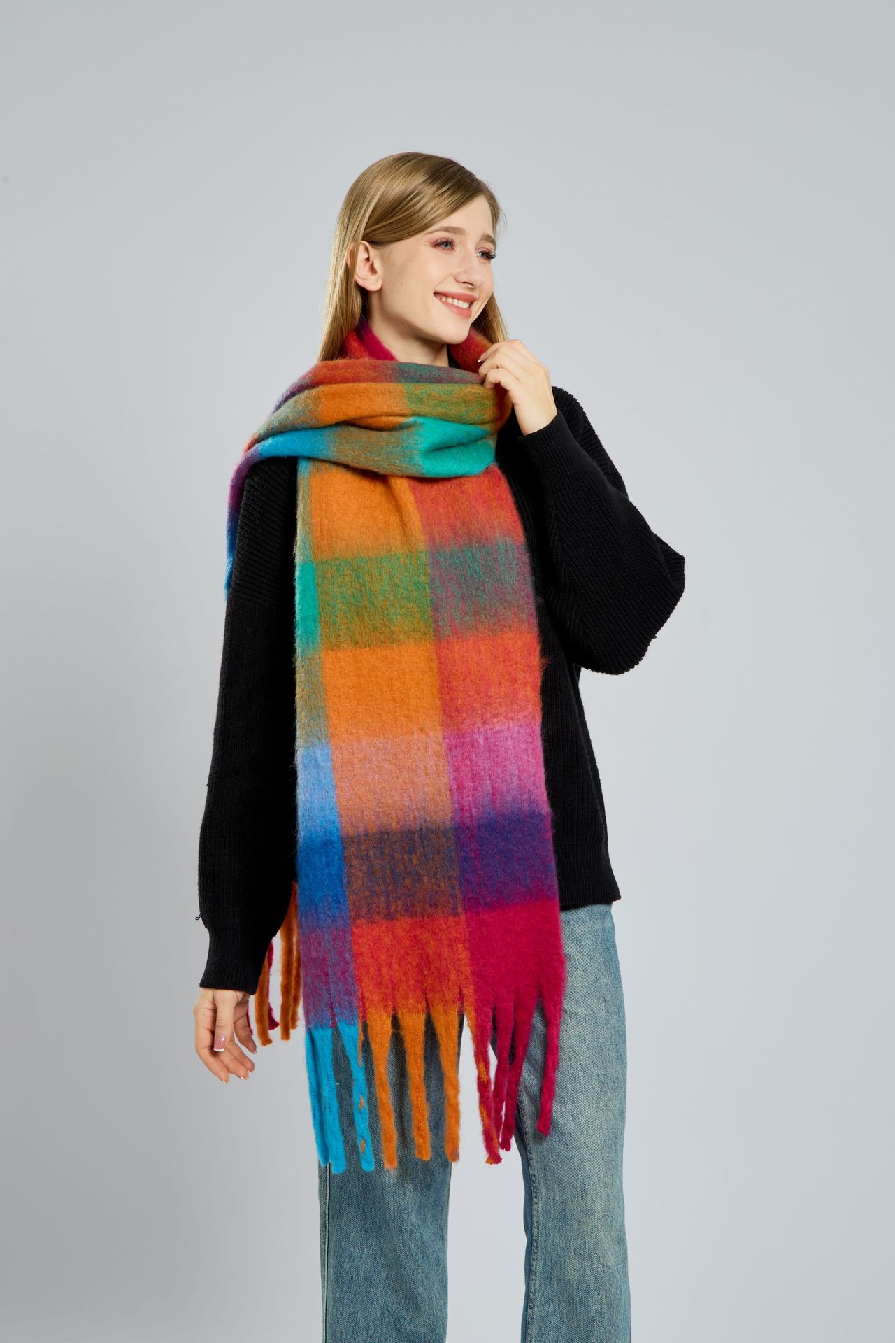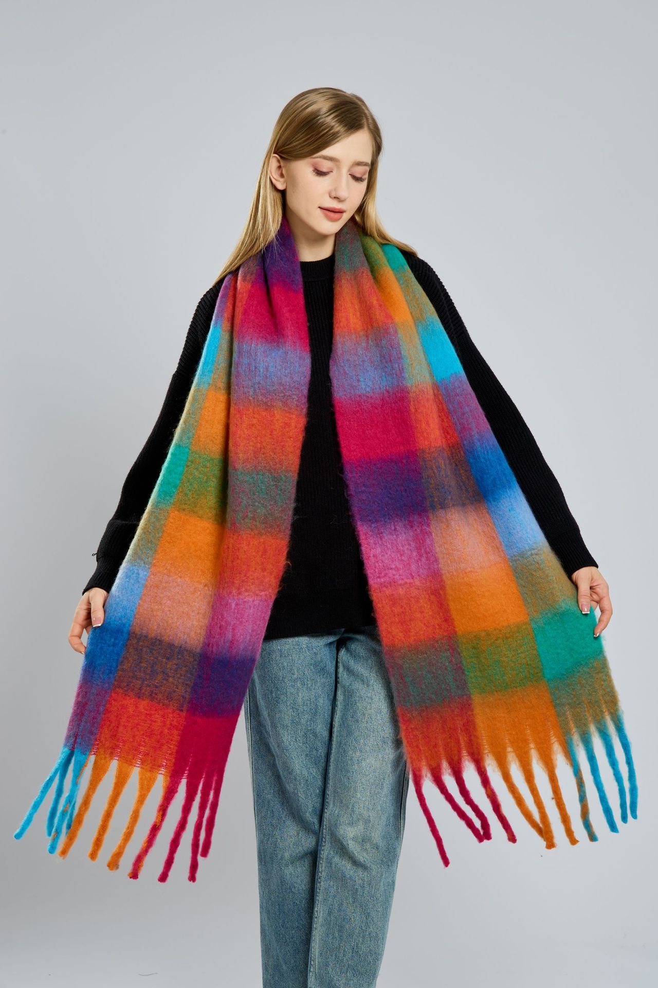 여성을위한 다채로운 격자 무늬 스카프 겨울 따뜻한 스카프 모헤어 두꺼운 긴 스카프 크로스 보더 격자 무늬 목도리 도매