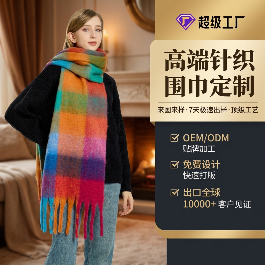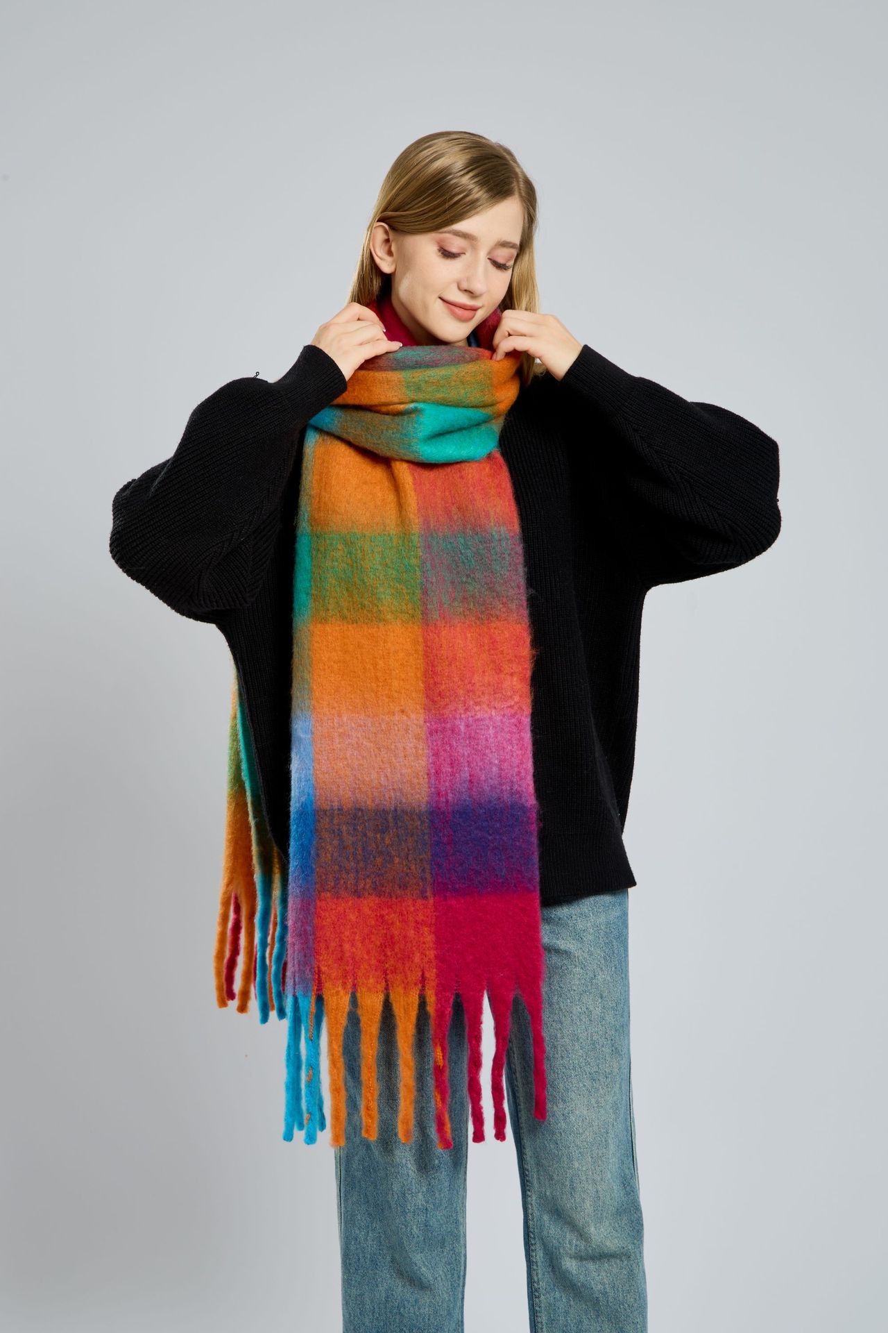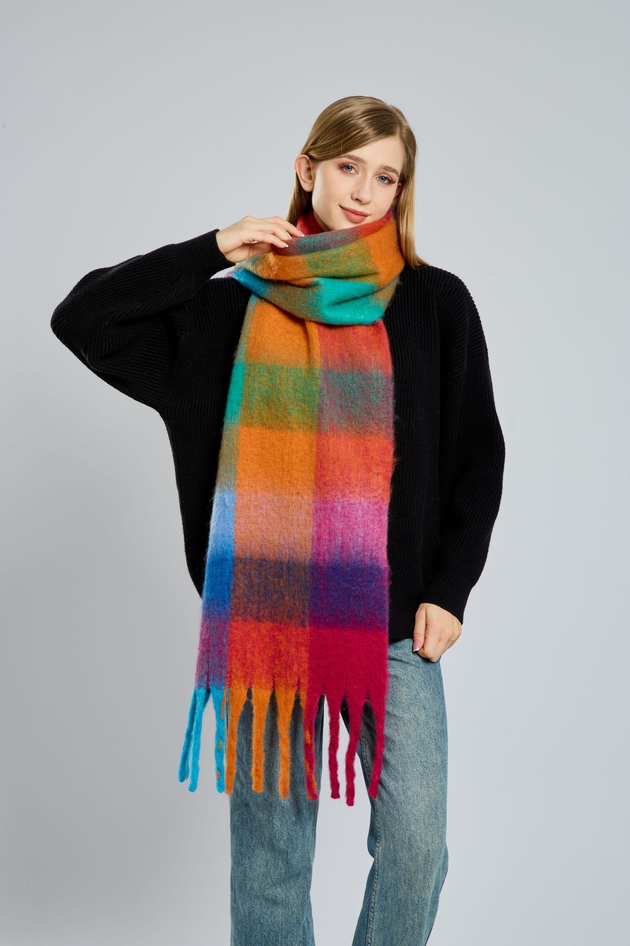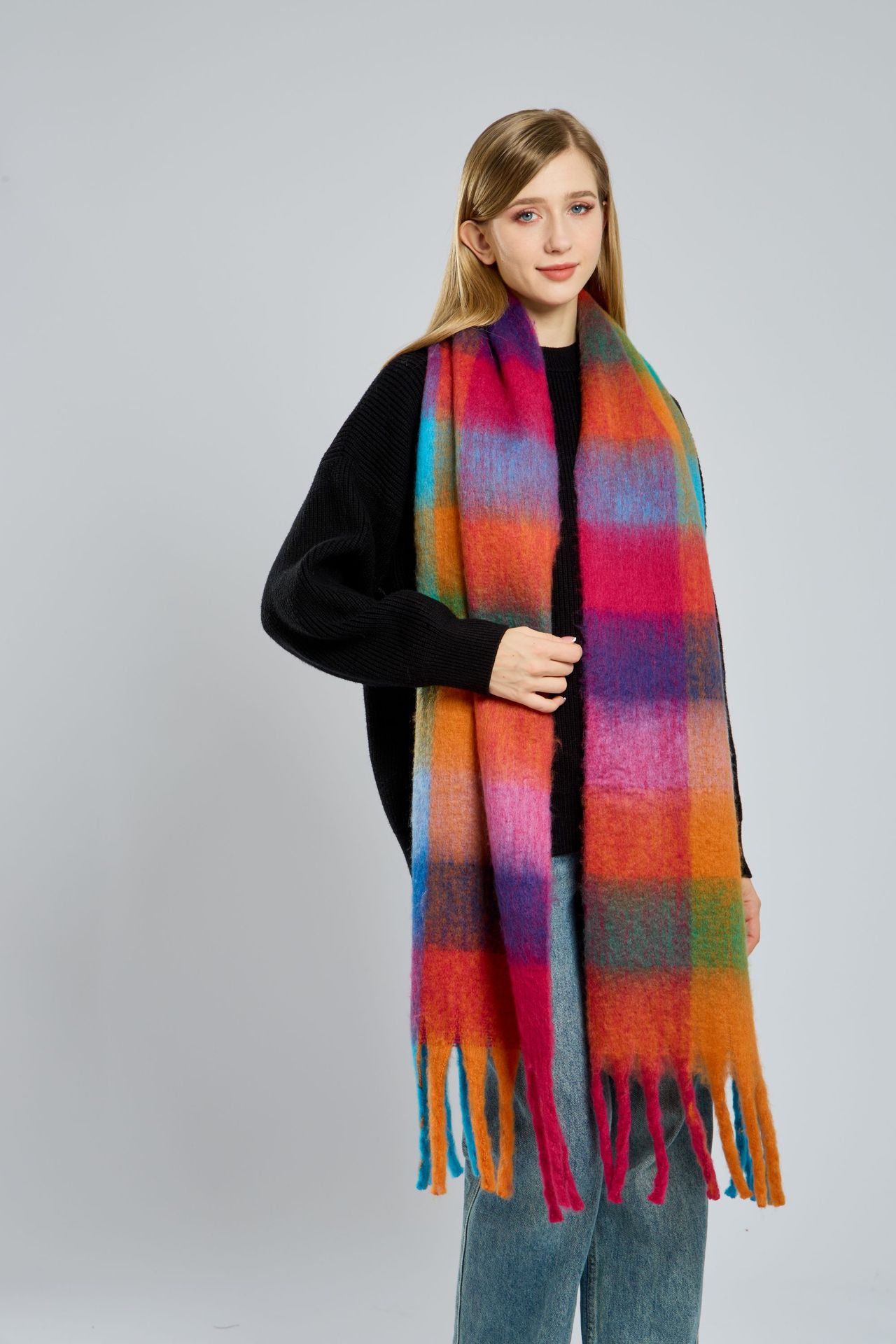 여성을위한 다채로운 격자 무늬 스카프 겨울 따뜻한 스카프 모헤어 두꺼운 긴 스카프 크로스 보더 격자 무늬 목도리 도매