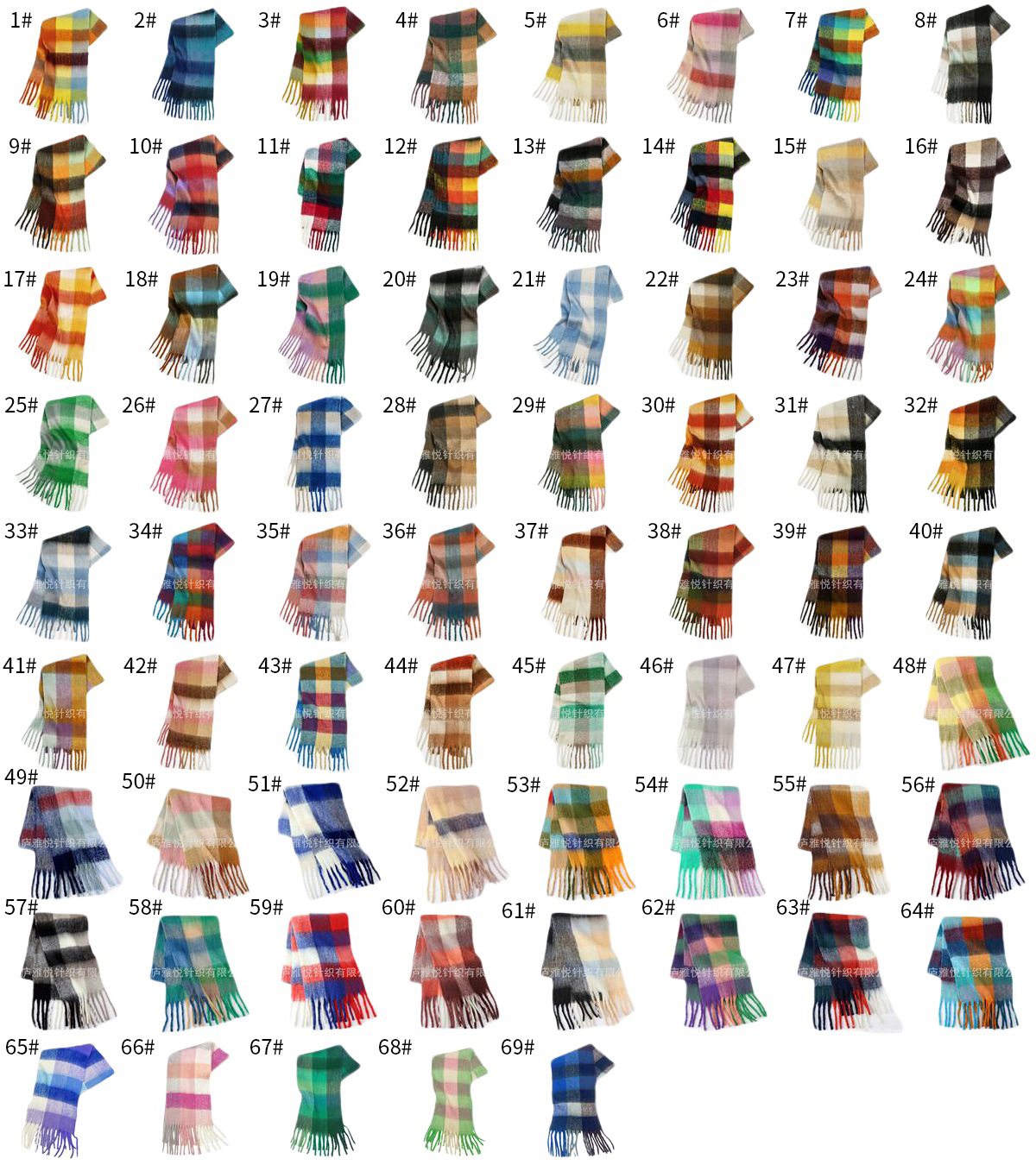 여성을위한 다채로운 격자 무늬 스카프 겨울 따뜻한 스카프 모헤어 두꺼운 긴 스카프 크로스 보더 격자 무늬 목도리 도매스토어 가기