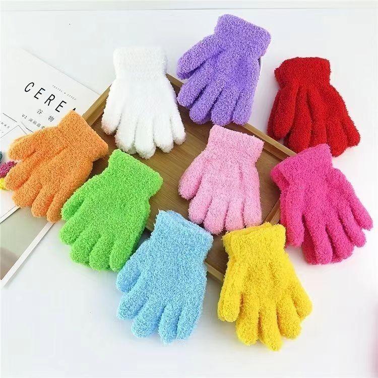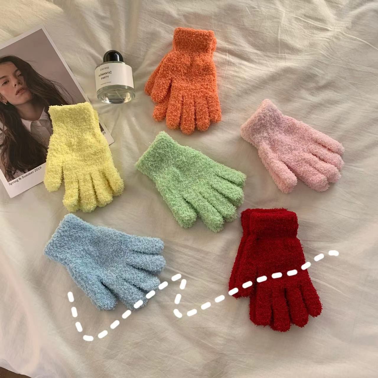 어린이 화이트 장갑 겨울 귀여운 봉제 사탕 컬러 댄싱 핑거 장갑 성능 장갑 다섯 손가락 장갑스토어 가기