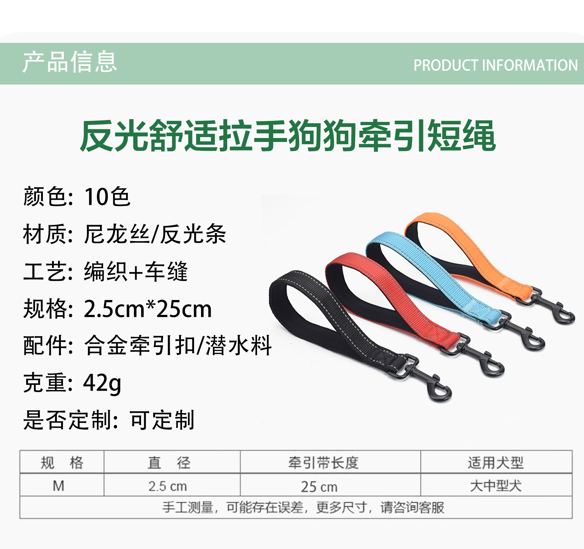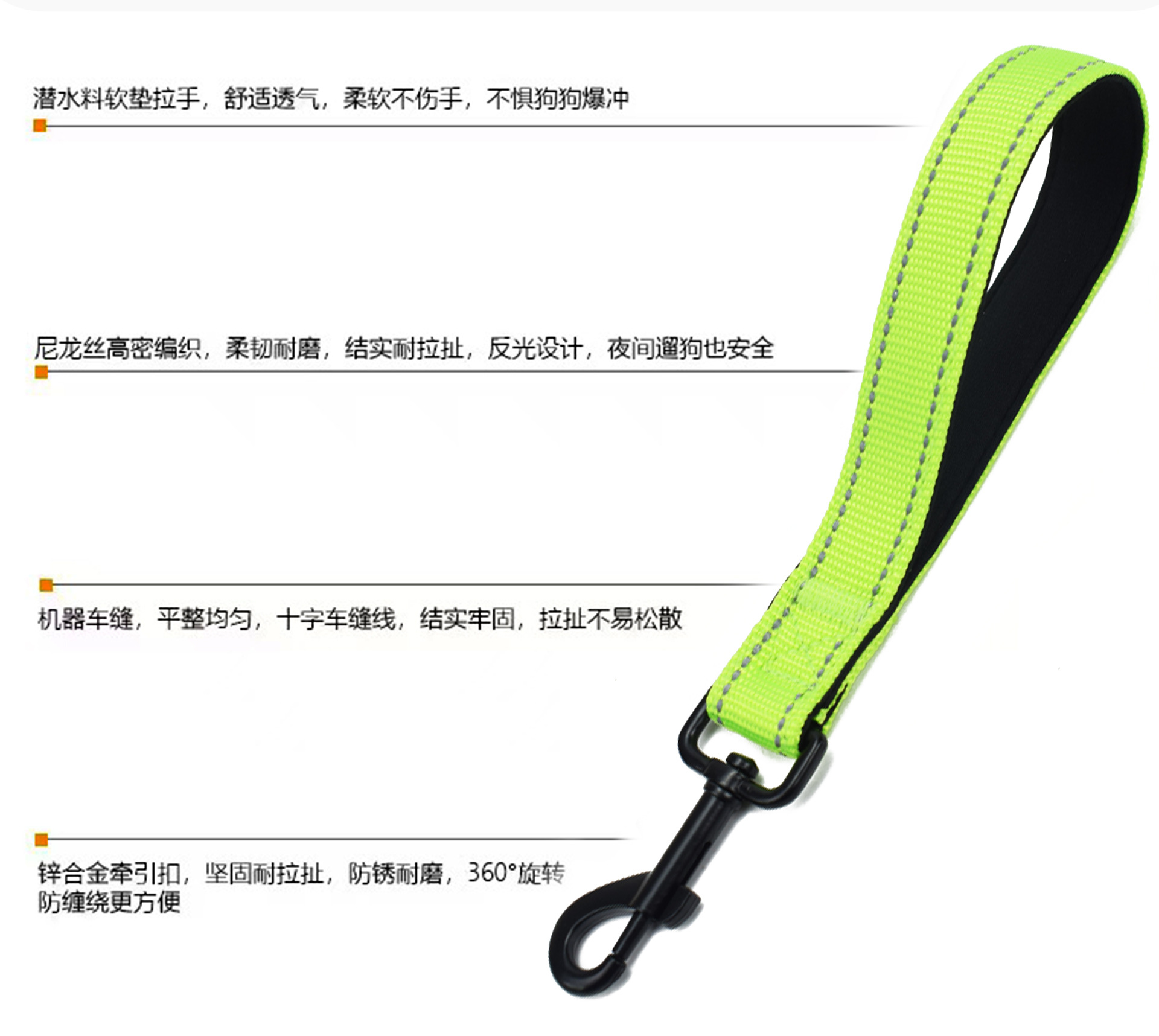 공장 직접 공급 개 나일론 웨빙 대형 풀 후크 반사 견인 로프 핸들 짧은 개 로프 개 체인 멀티 컬러 도매스토어 가기