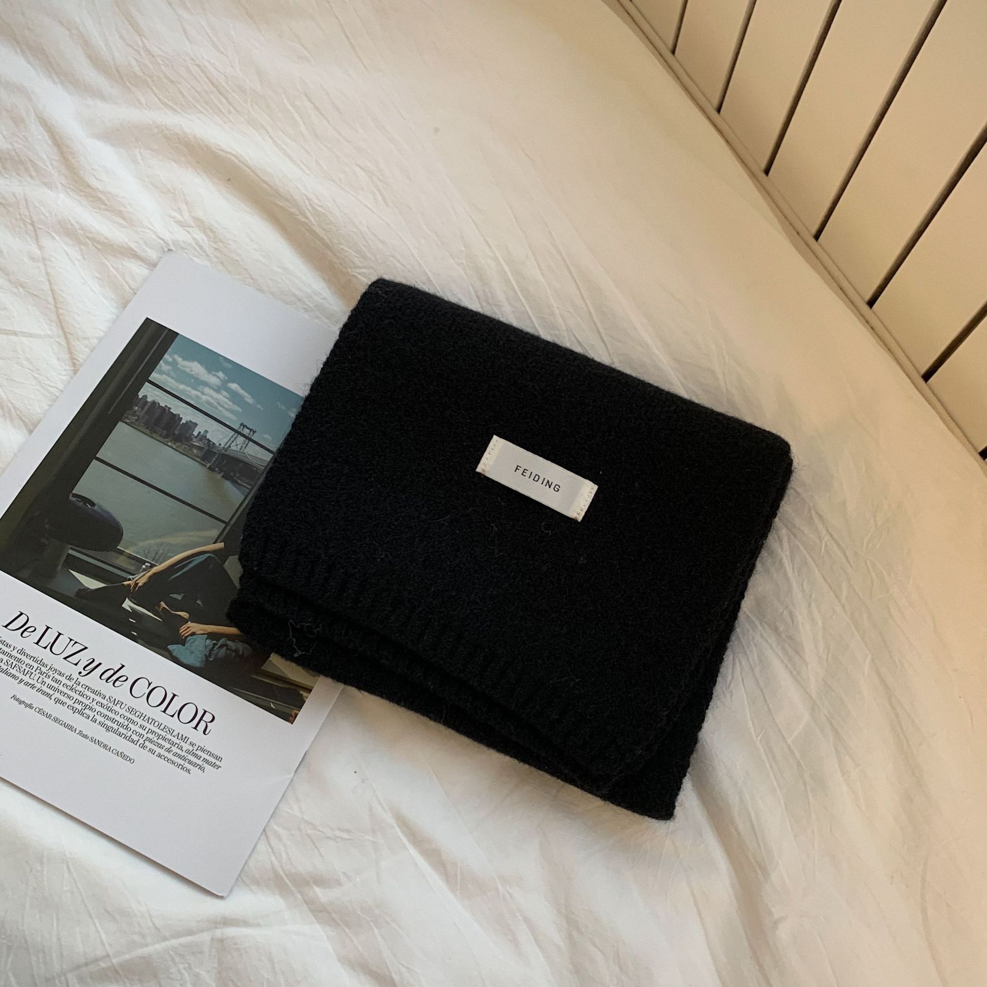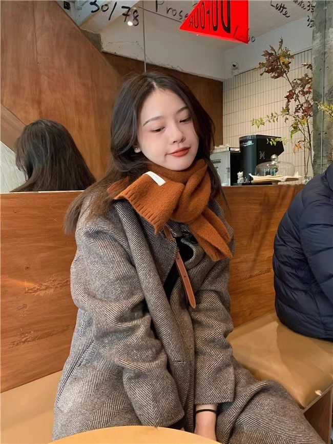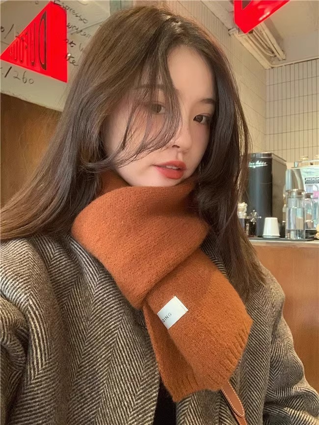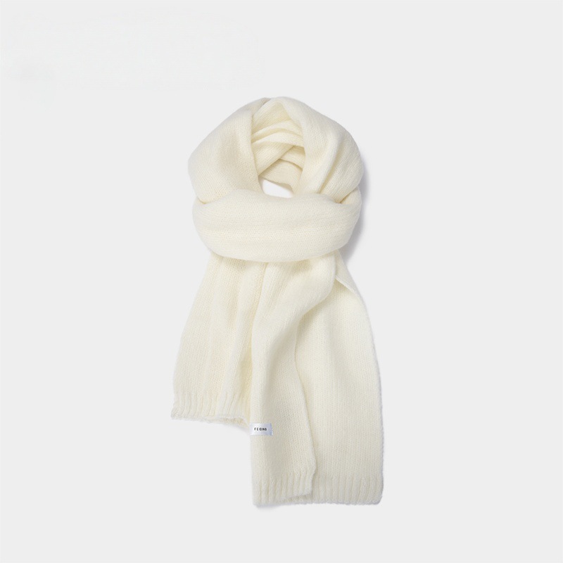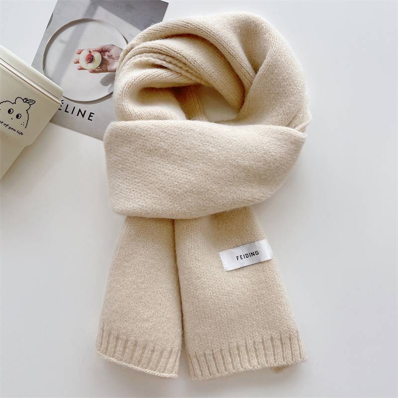 심플 스타일 스카프 솔리드 컬러 니트 울 올 매치 화이트 스카프 새로운 스타일 소녀 라벨 따뜻한 두꺼운 스카프스토어 가기