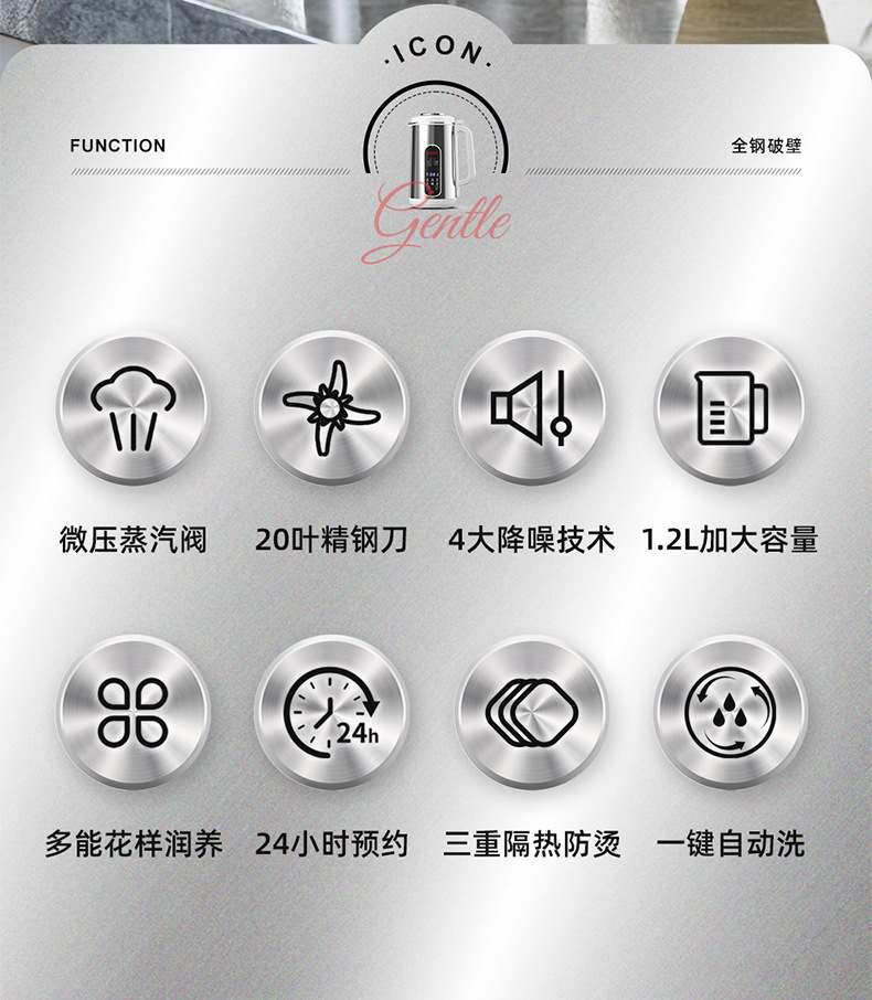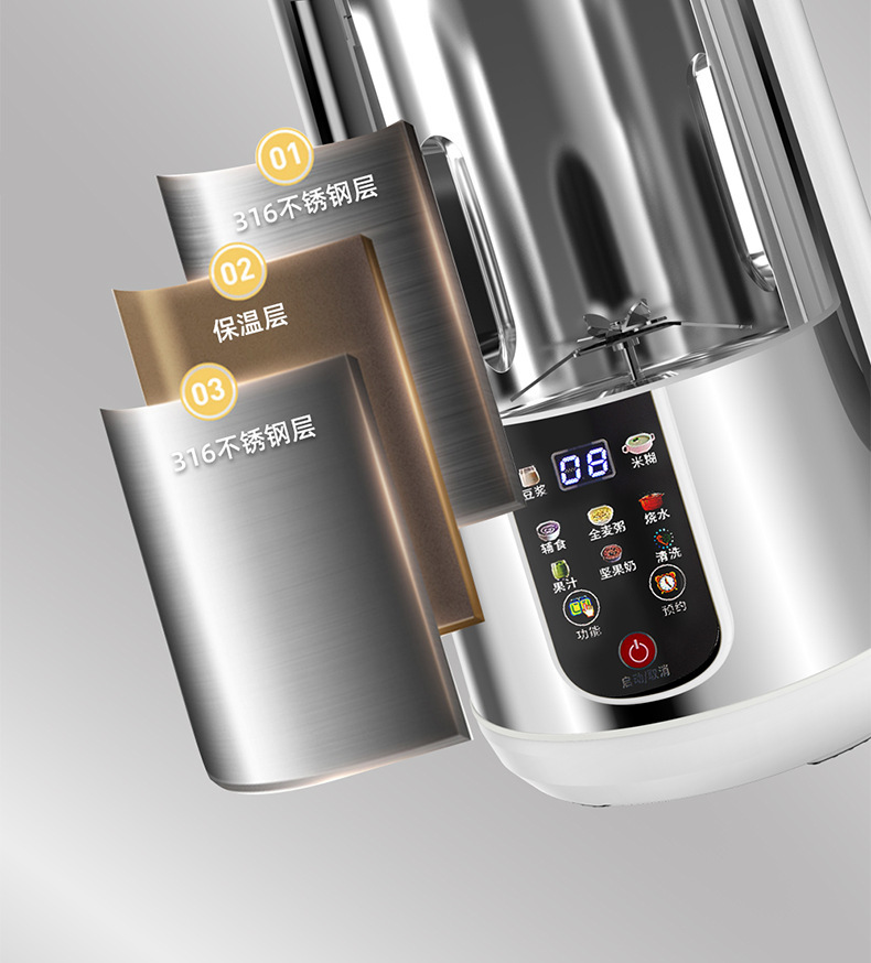 영국 굿레이디의 새로운 다기능 용량 예약 절연 비 거품 보충 식품 벽 깨는 스테인레스 스틸 두유 기계