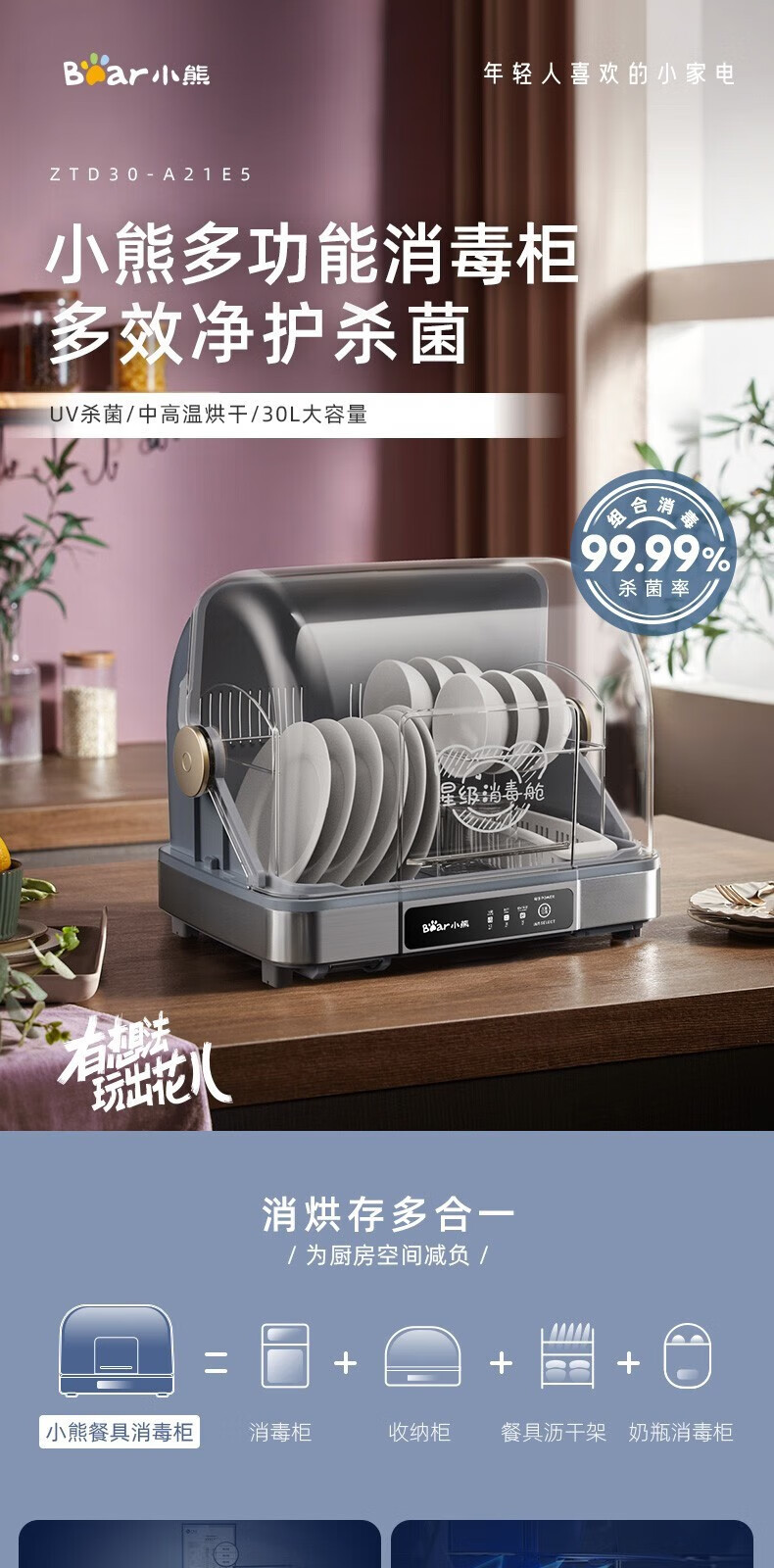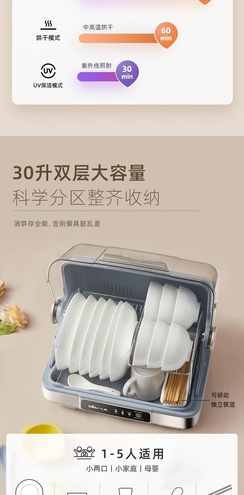 곰 ZTD30-A21E5 다기능 소독 내각 청소 내각 가구 작은 병 그릇 젓가락 살균기 30L