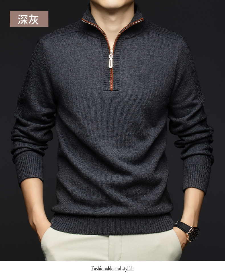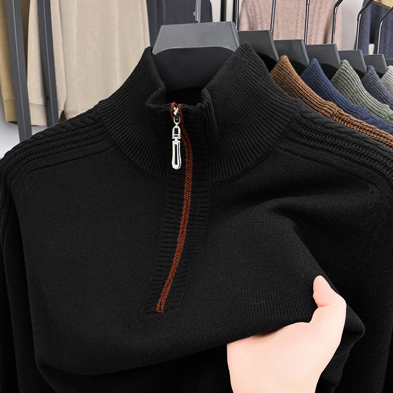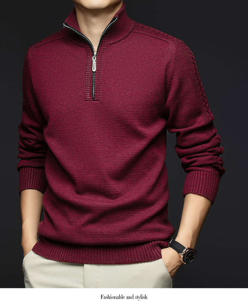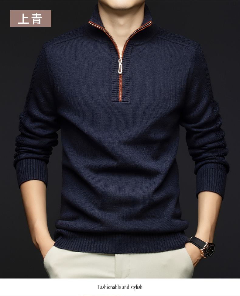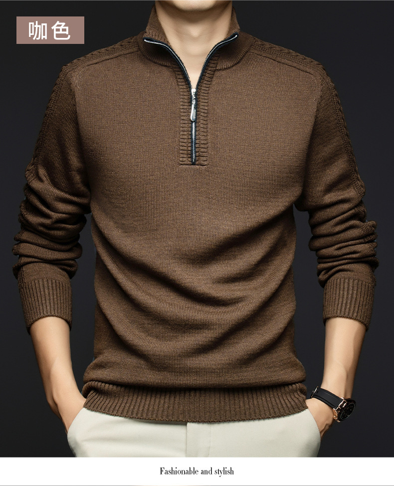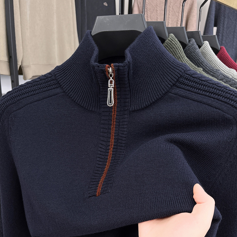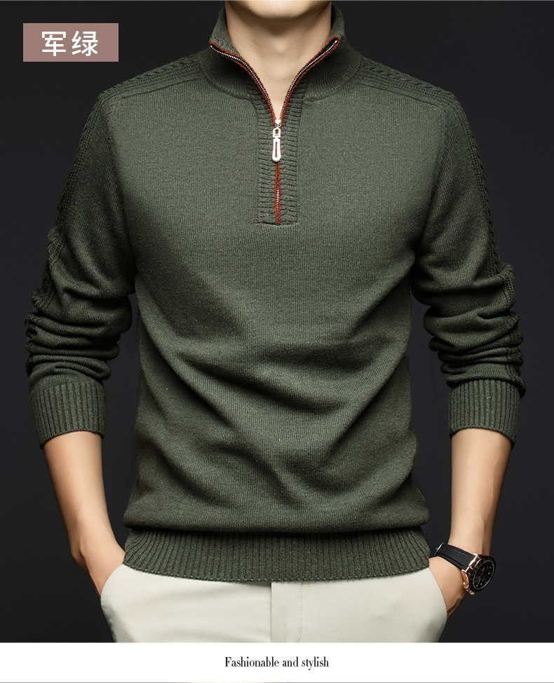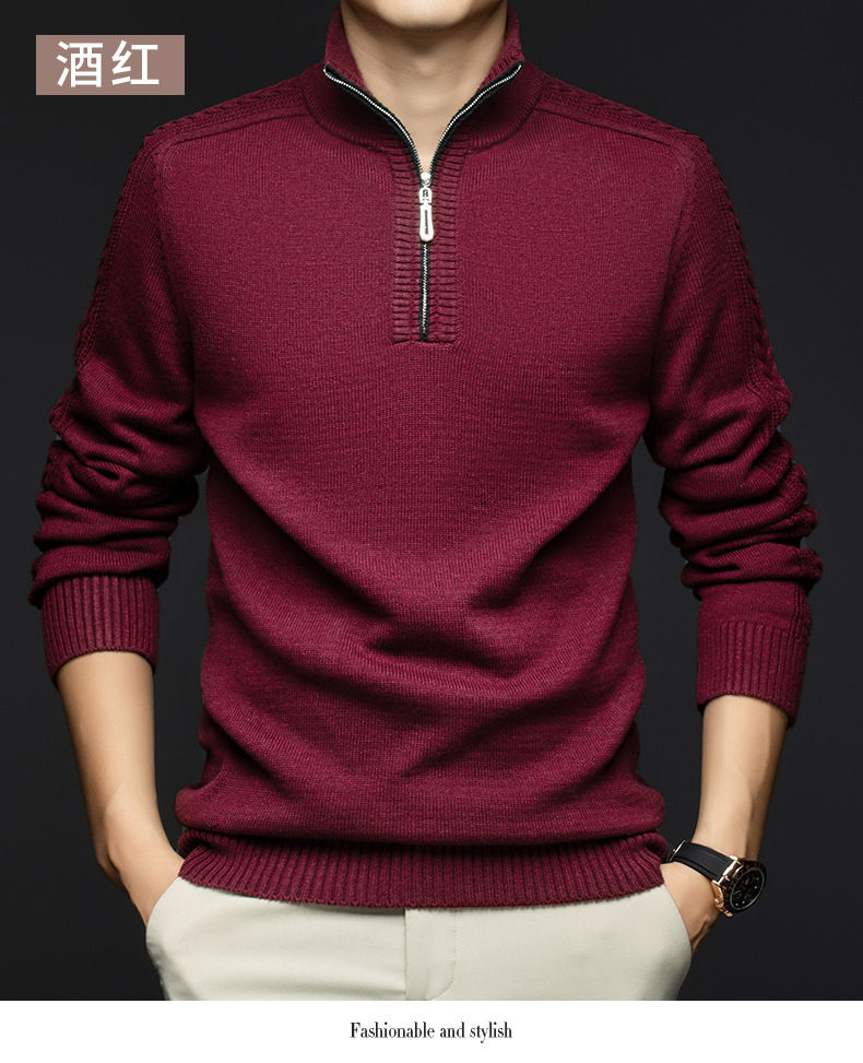 가을과 겨울 새로운 남성 스웨터 스탠드 칼라 지퍼 두꺼운 따뜻한 자카드 긴 소매 바닥 중년 남성 스웨터