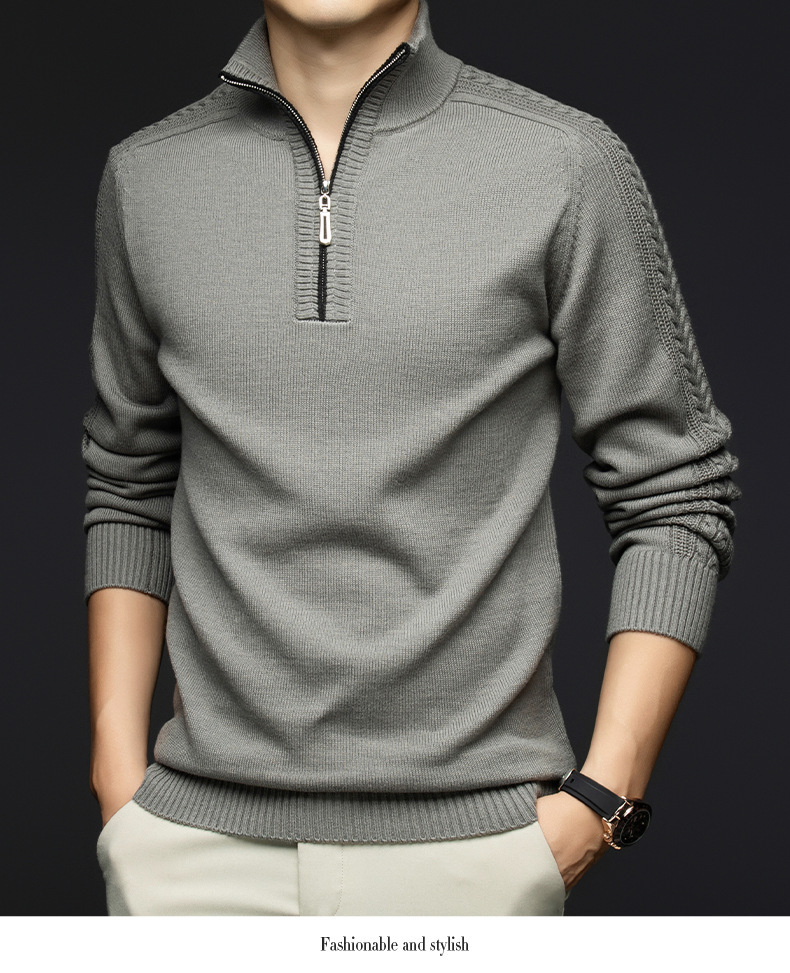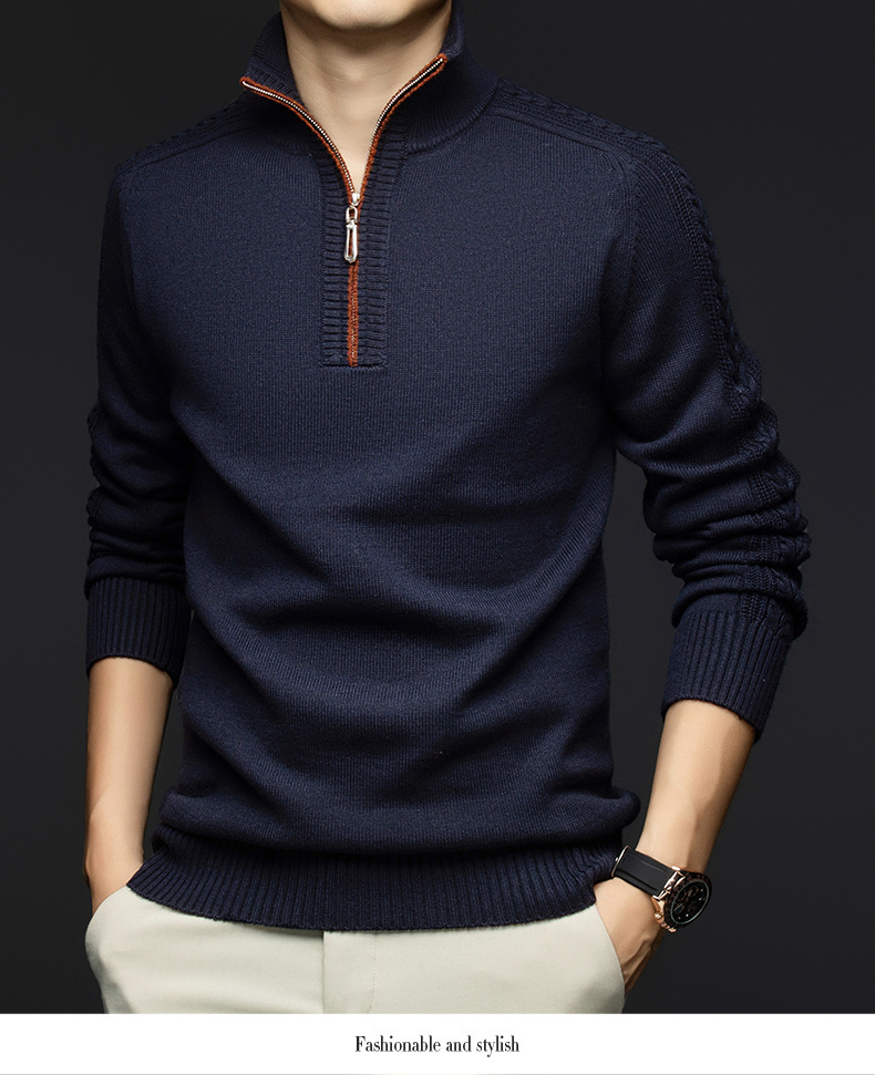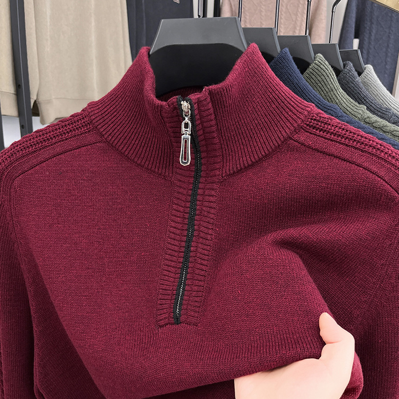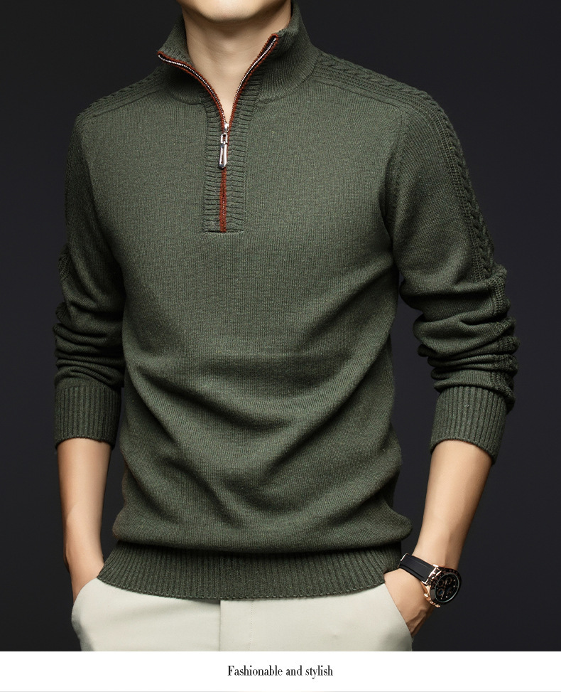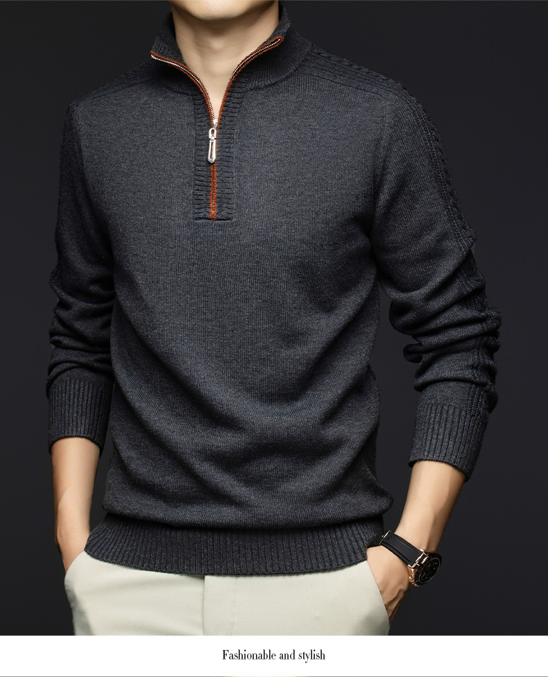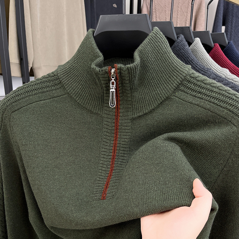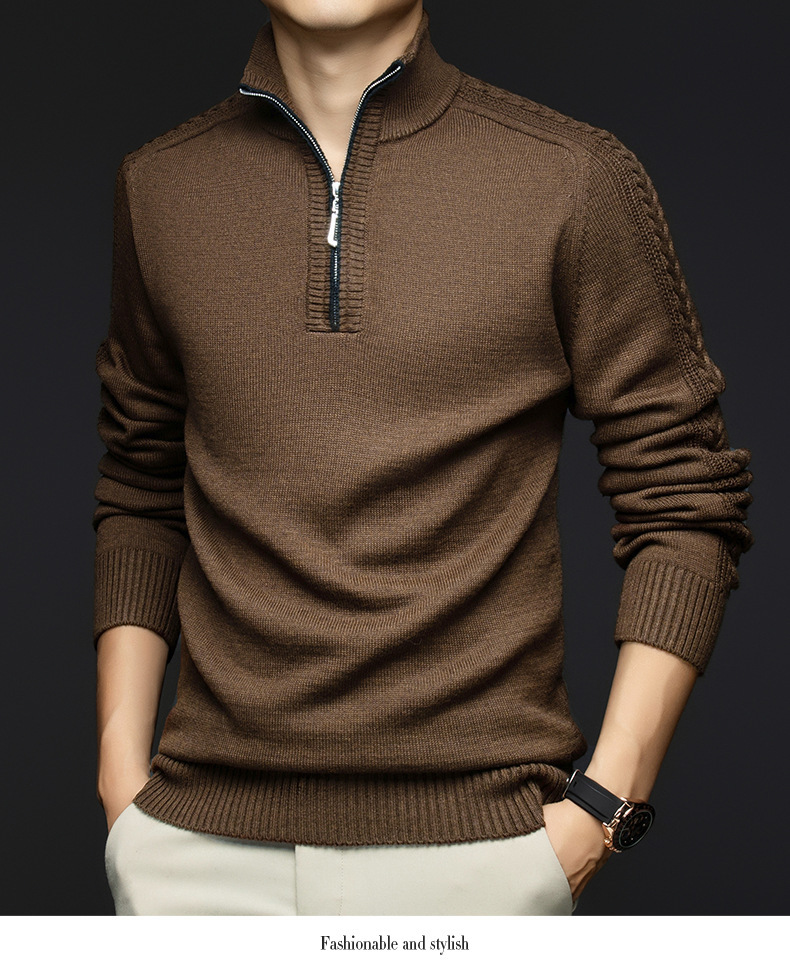 가을과 겨울 새로운 남성 스웨터 스탠드 칼라 지퍼 두꺼운 따뜻한 자카드 긴 소매 바닥 중년 남성 스웨터