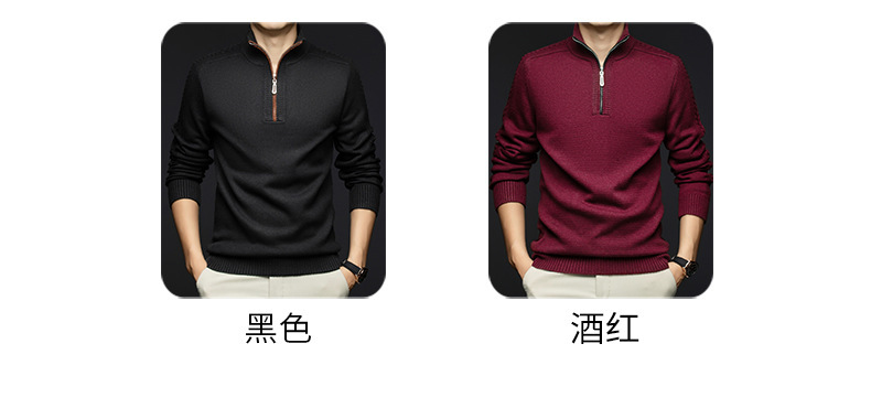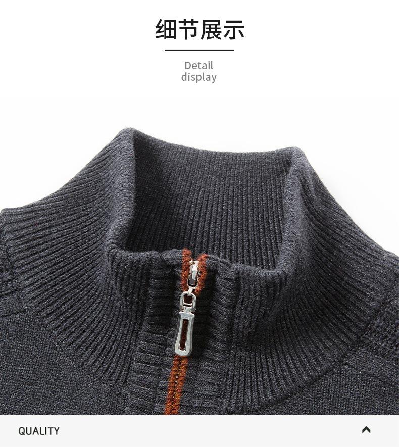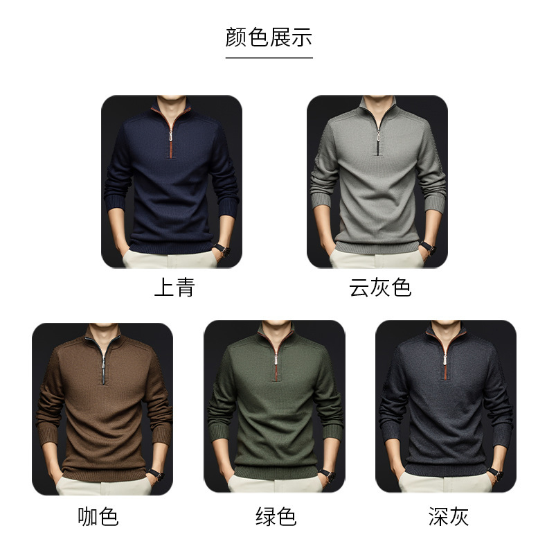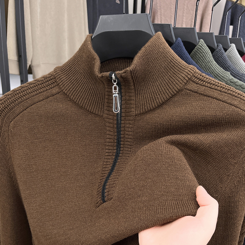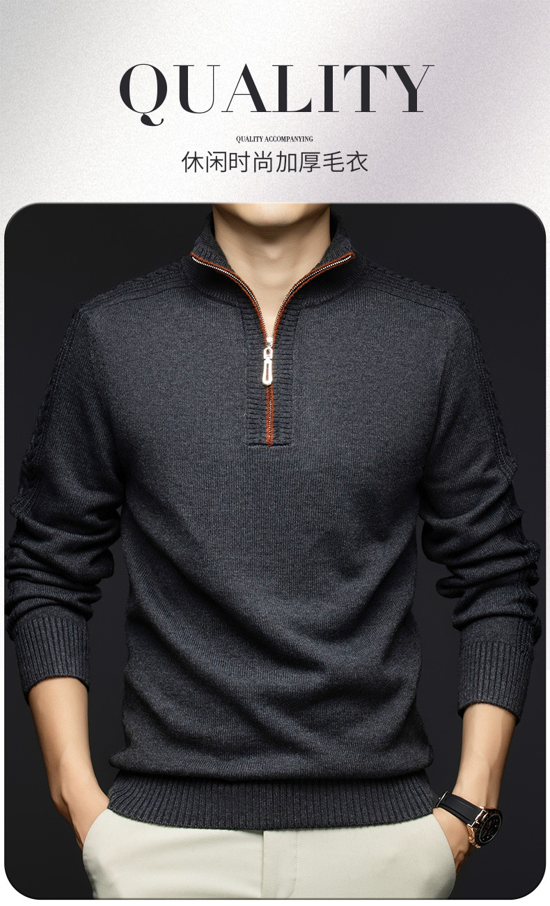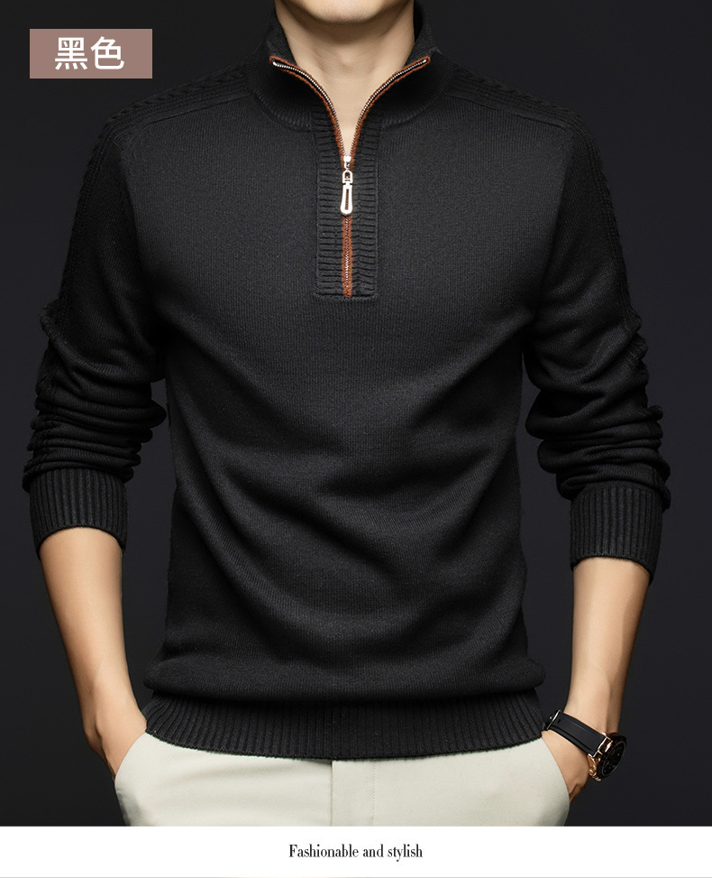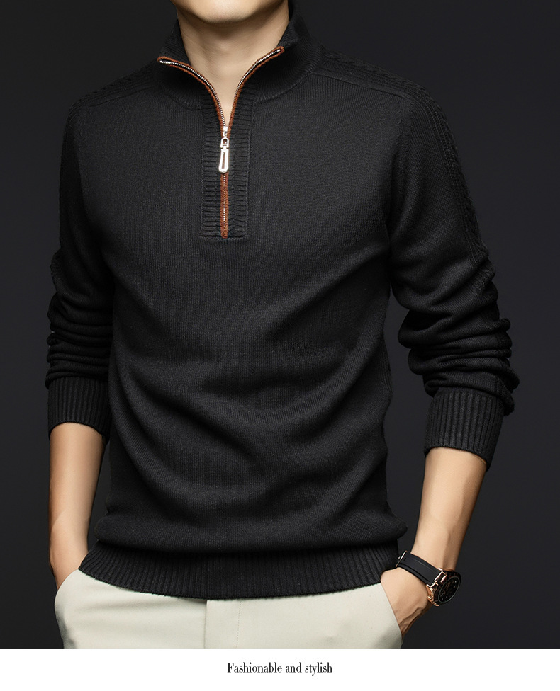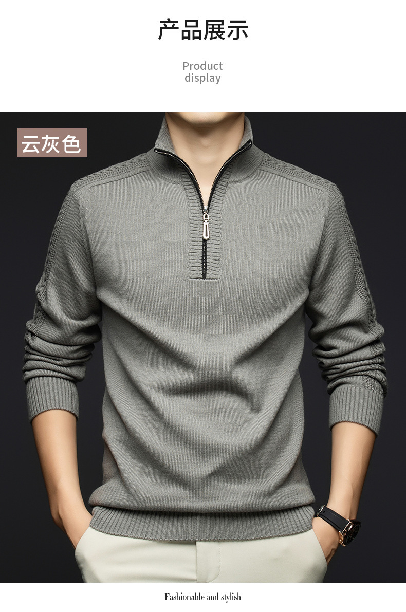 가을과 겨울 새로운 남성 스웨터 스탠드 칼라 지퍼 두꺼운 따뜻한 자카드 긴 소매 바닥 중년 남성 스웨터