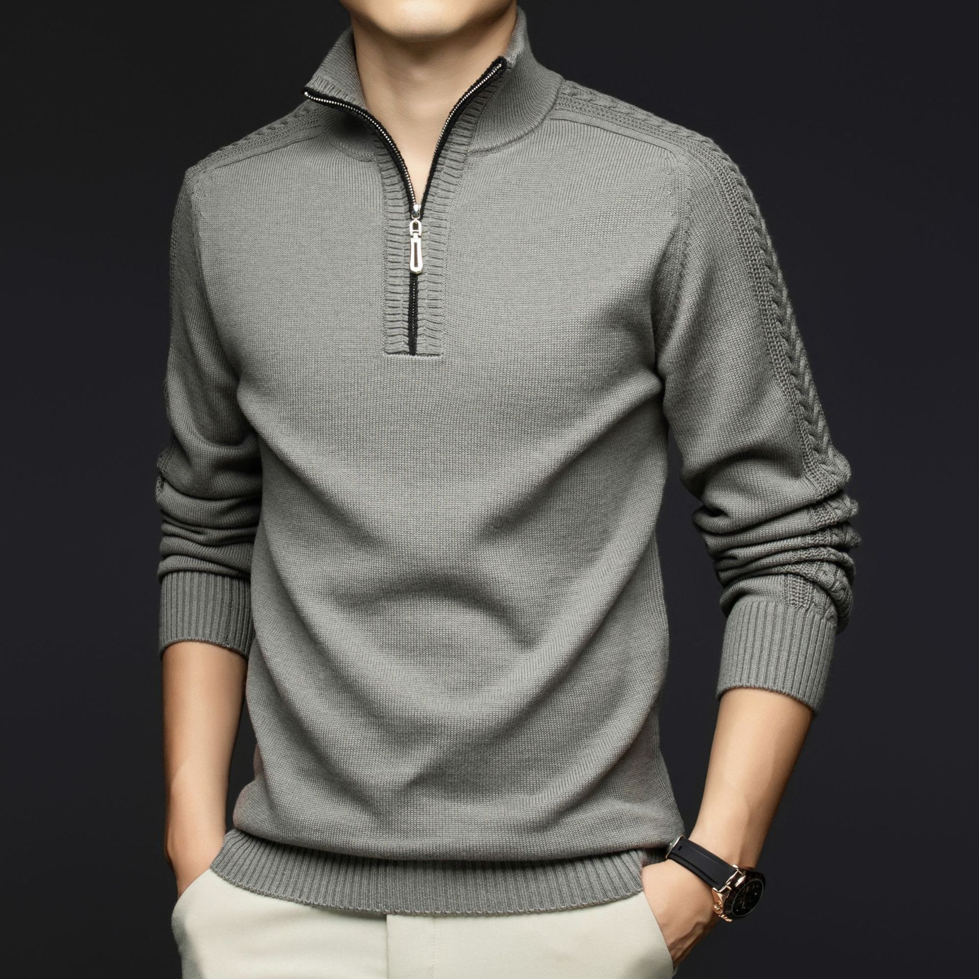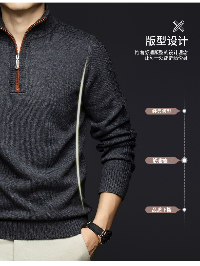 가을과 겨울 새로운 남성 스웨터 스탠드 칼라 지퍼 두꺼운 따뜻한 자카드 긴 소매 바닥 중년 남성 스웨터스토어 가기