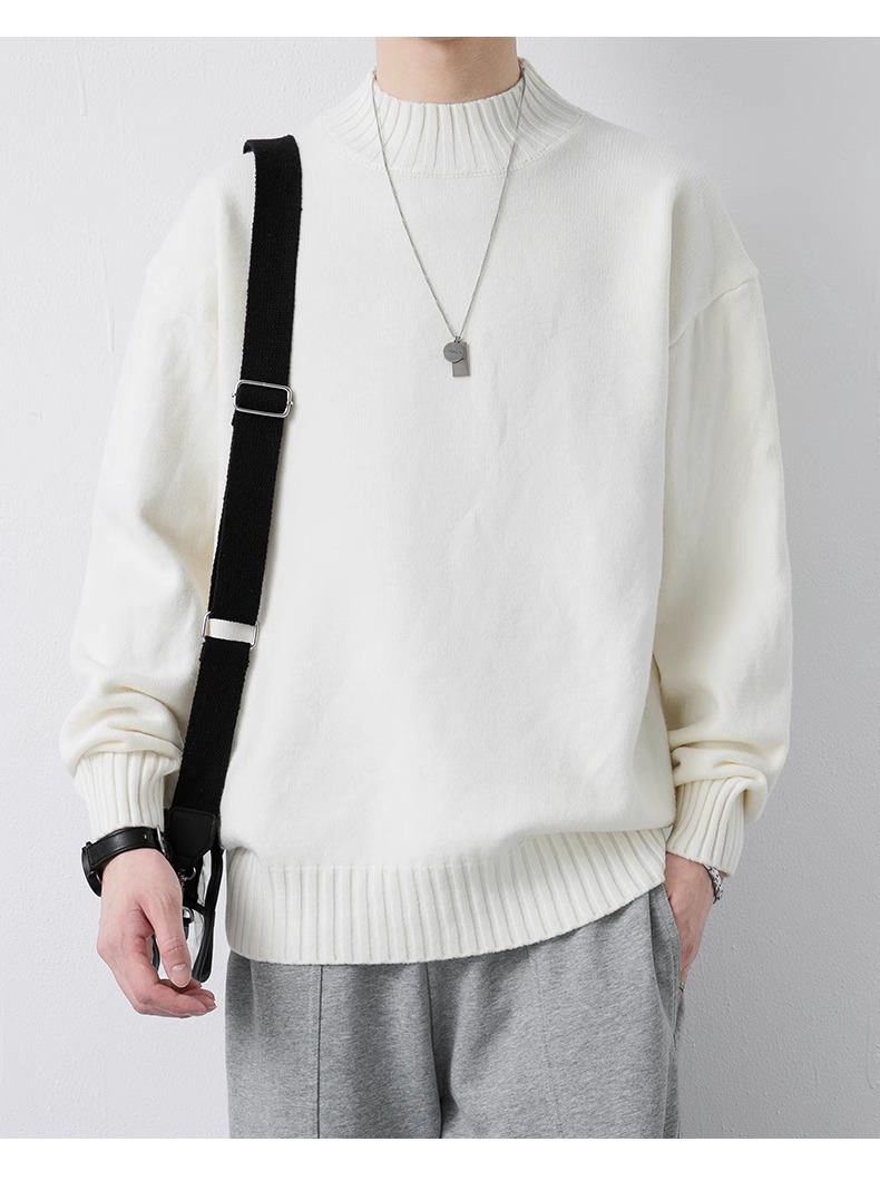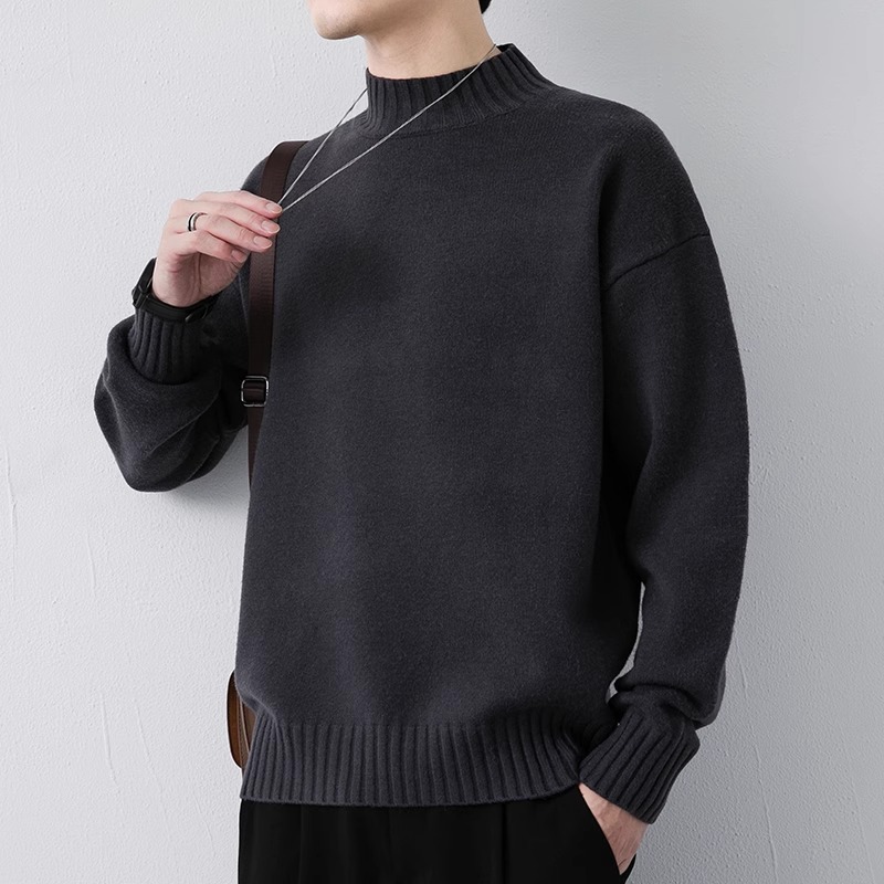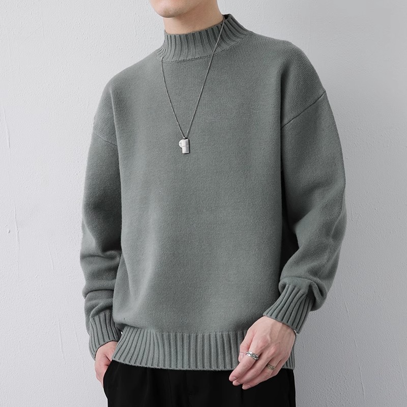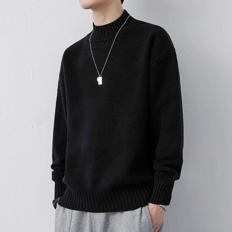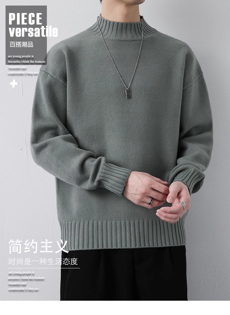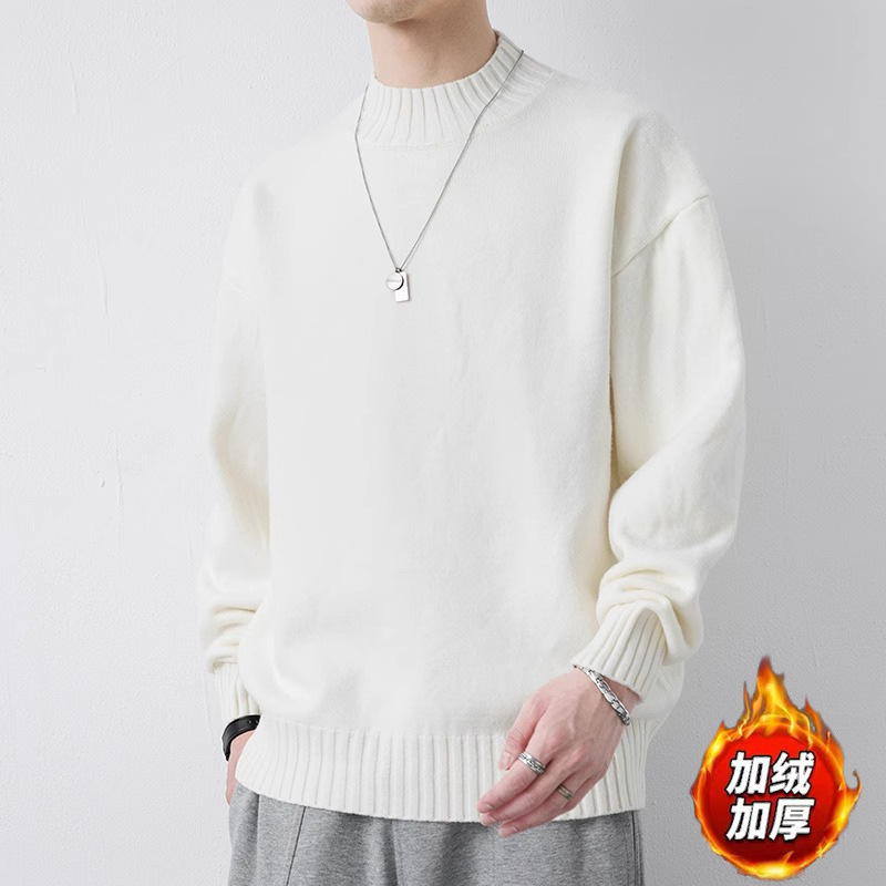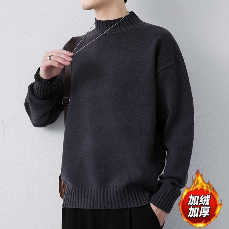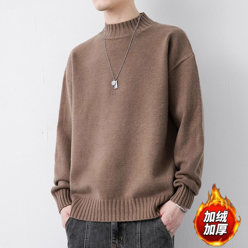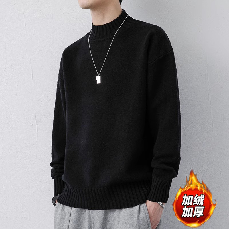 NASA 캐주얼 기모 하프 터틀넥 스웨터 남자 가을과 겨울 새로운 유행 브랜드 두꺼운 니트 셔츠 내베이스 셔츠스토어 가기