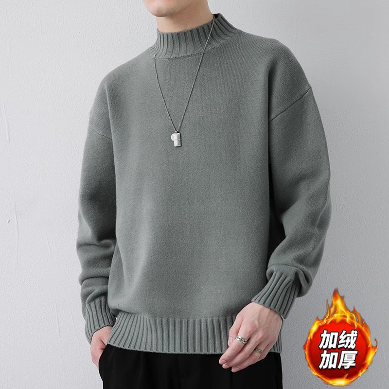 NASA 캐주얼 기모 하프 터틀넥 스웨터 남자 가을과 겨울 새로운 유행 브랜드 두꺼운 니트 셔츠 내베이스 셔츠