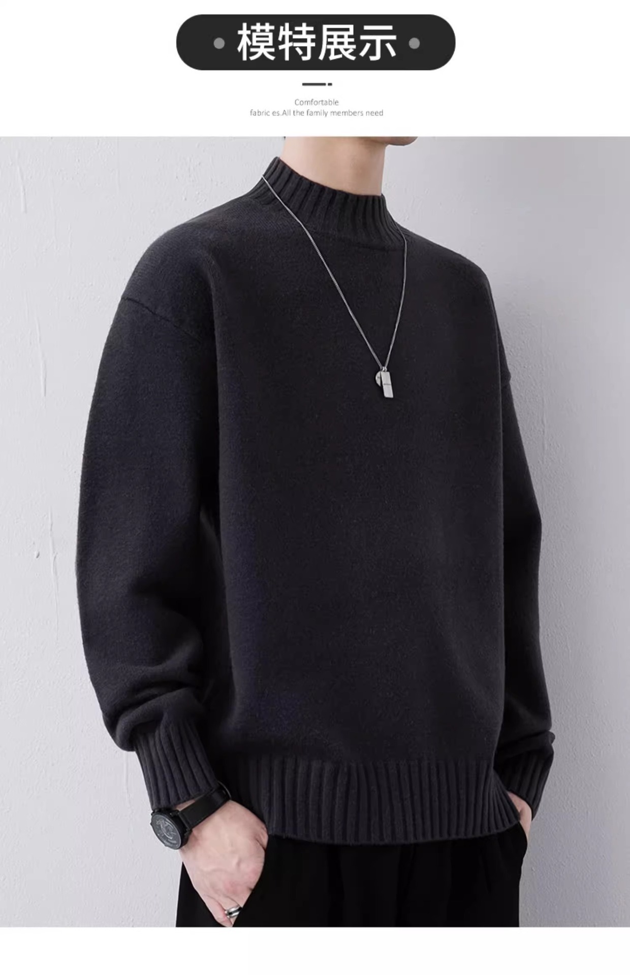 • 9618 블랙 [레귤러 스타일] 하프 터틀넥