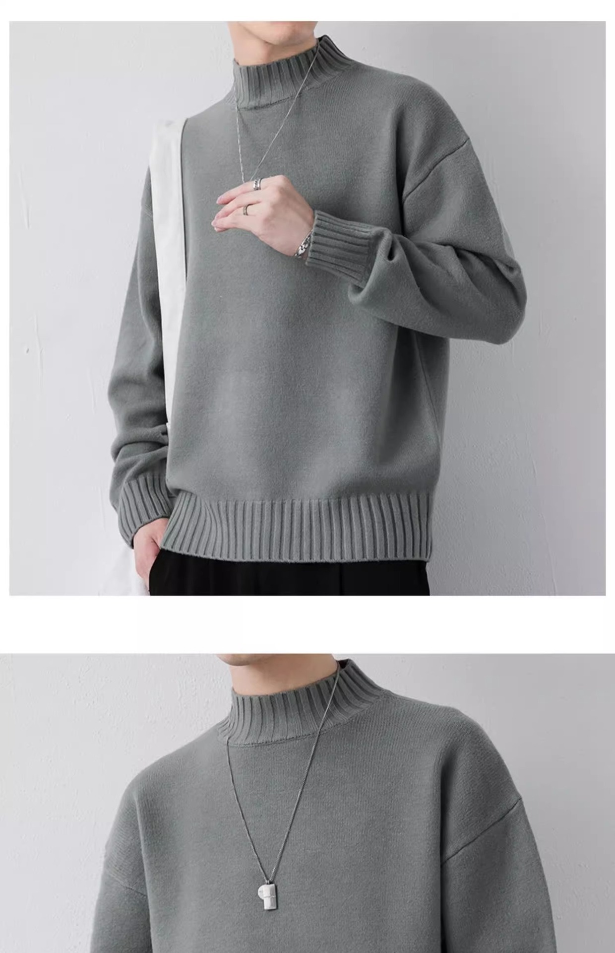 • 9618 그레이 그린 [레귤러 스타일] 하프 터틀넥