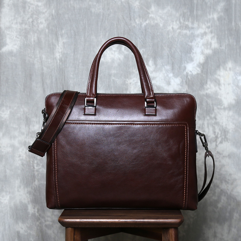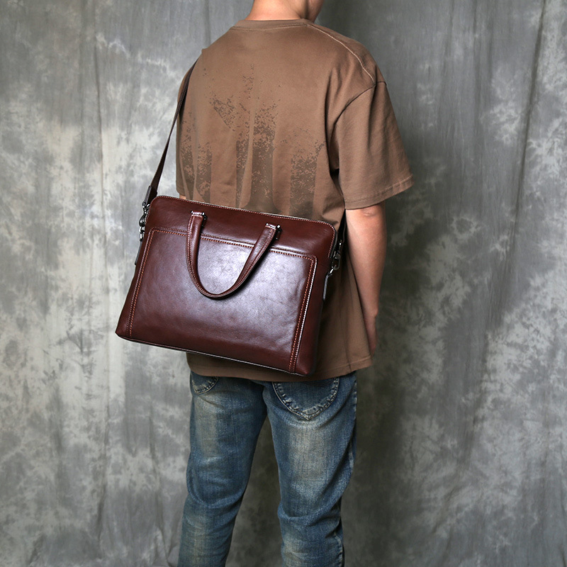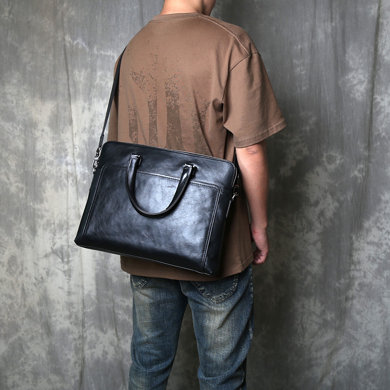 빈티지 정품 가죽 남성 서류 가방 사업 캐주얼 핸드백 컴퓨터 가방 헤드 레이어 트리 크림 야채 태닝 코가죽 크로스 바디 백스토어 가기