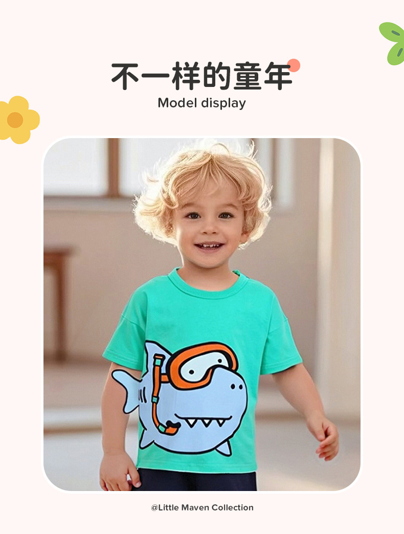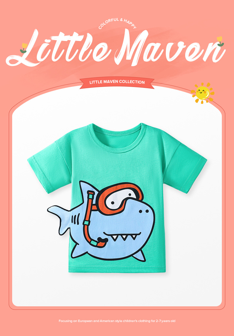 작은 maven 새로운 만화 반팔 티셔츠 여름 어린이 최고의 유럽 및 미국 귀여운 면 어린이 티셔츠스토어 가기