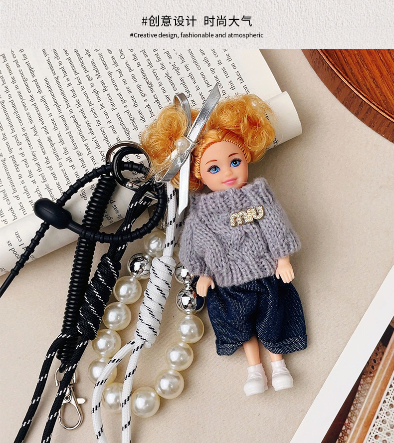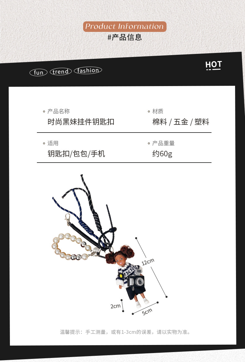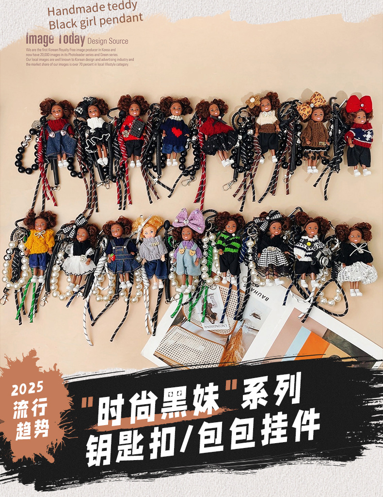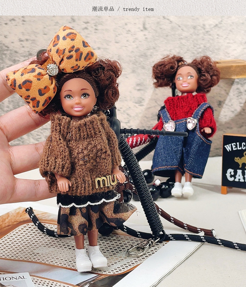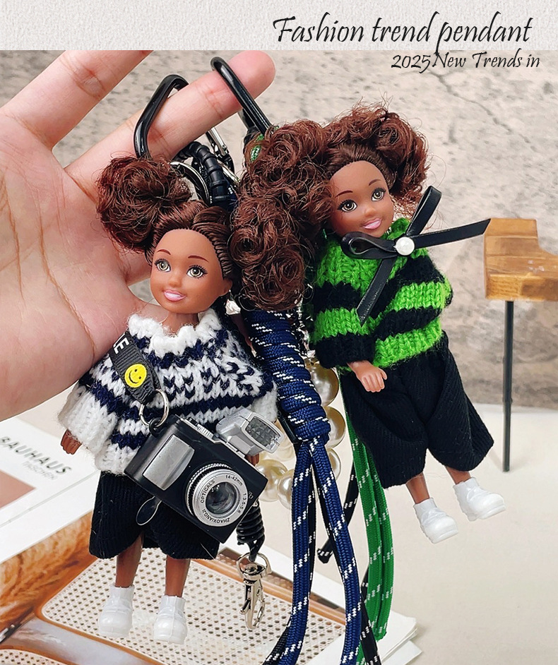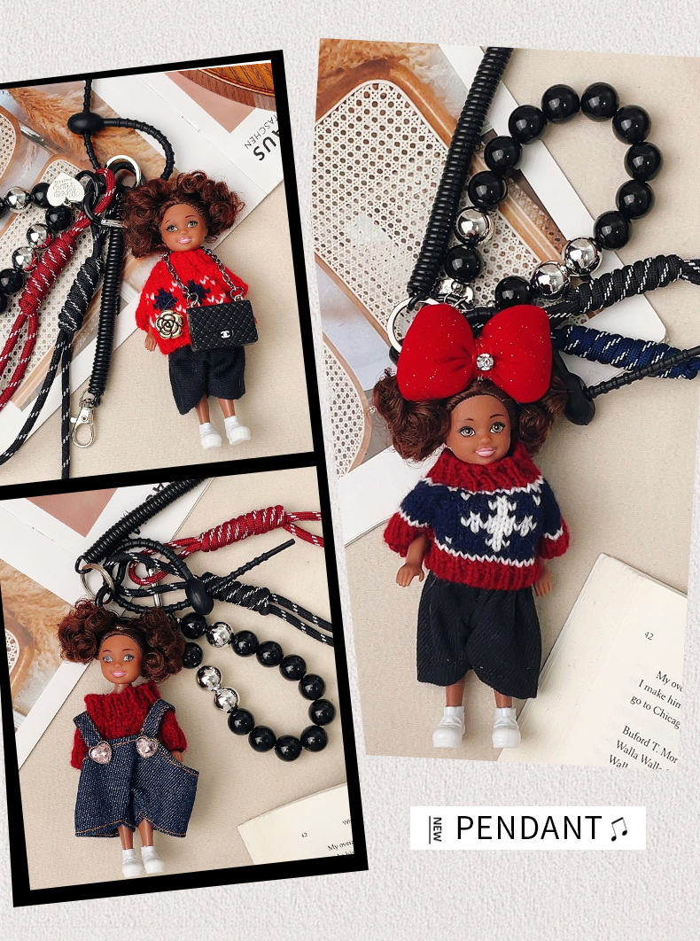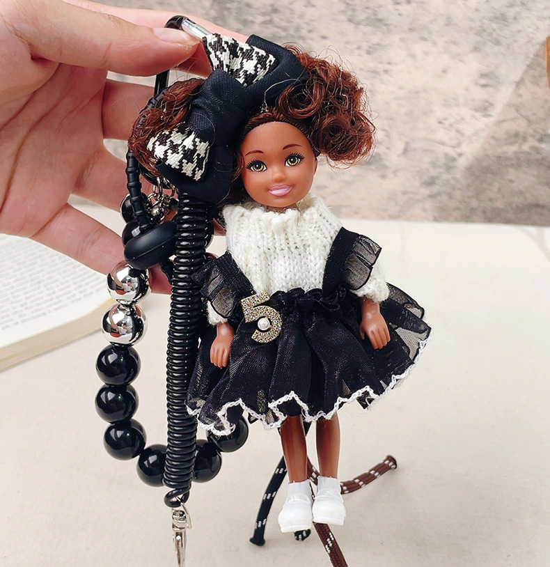 가방 교수형 인형 한국 하이 엔드 센스 귀여운 만화 바비 인형 키 체인 곱슬 머리 검은 소녀 Schoolbag 펜던트