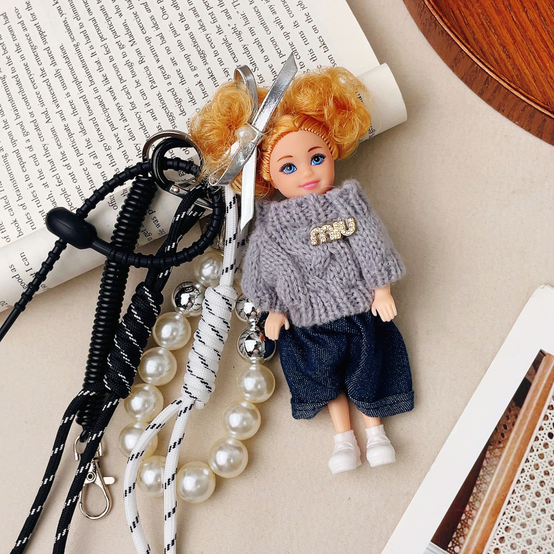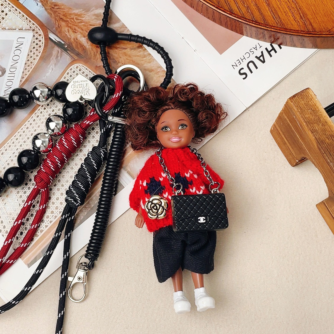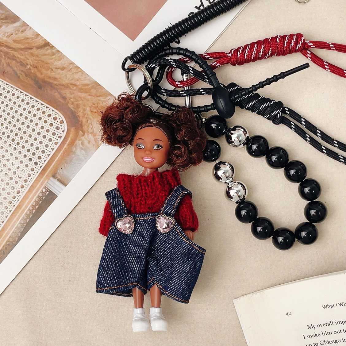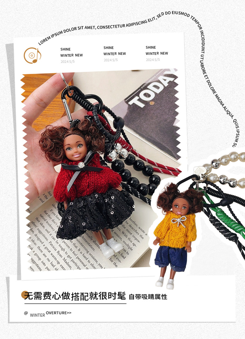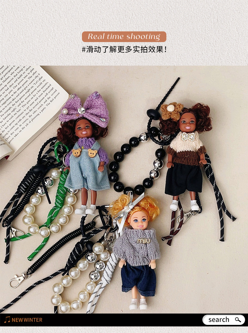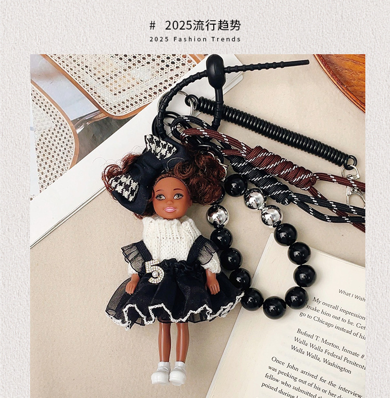 가방 교수형 인형 한국 하이 엔드 센스 귀여운 만화 바비 인형 키 체인 곱슬 머리 검은 소녀 Schoolbag 펜던트스토어 가기