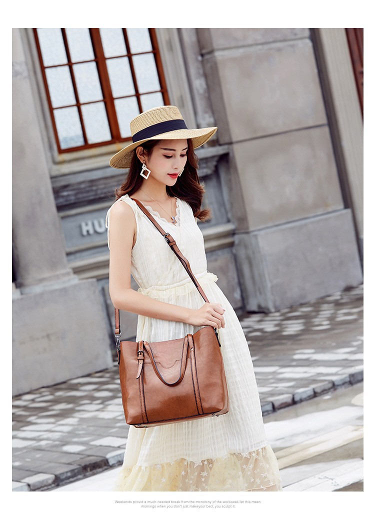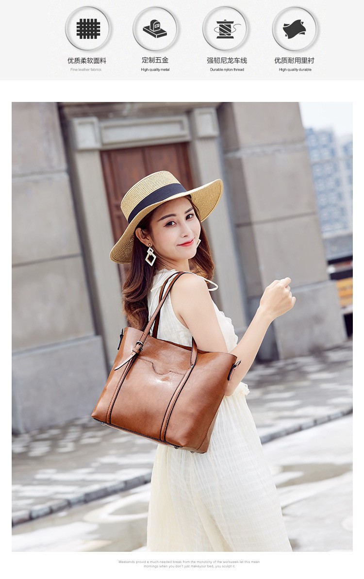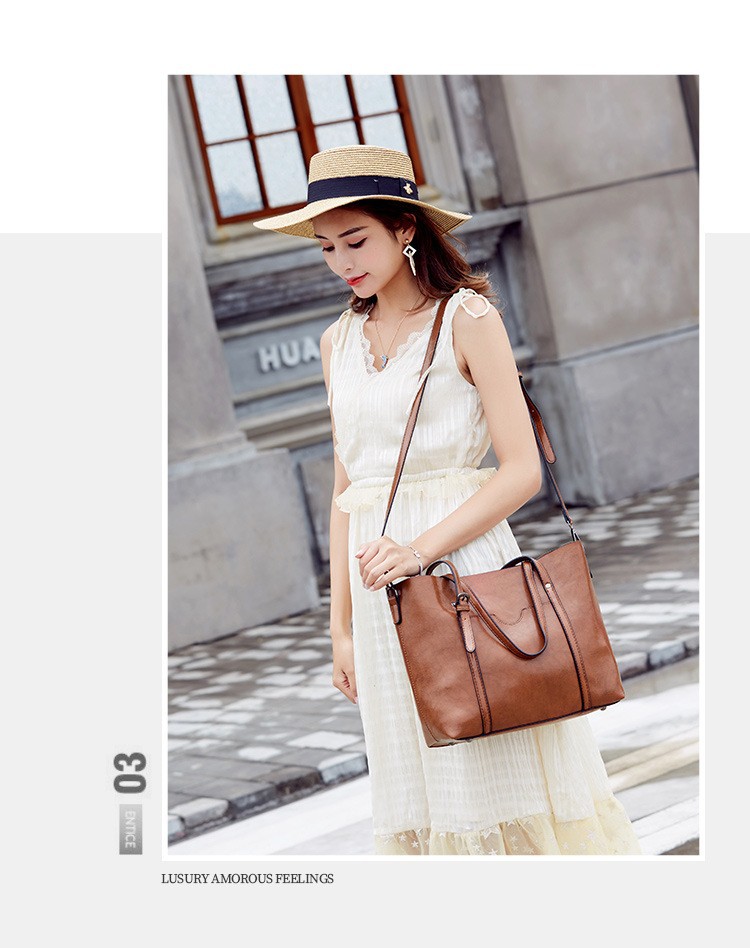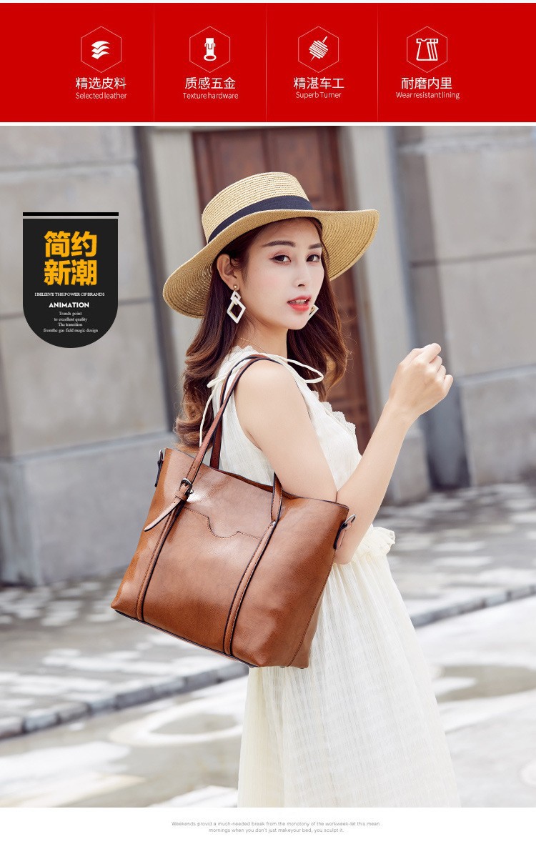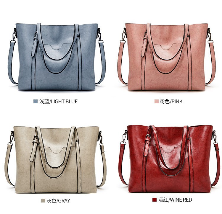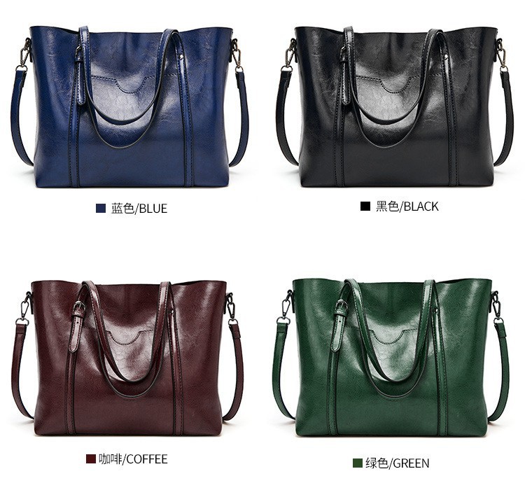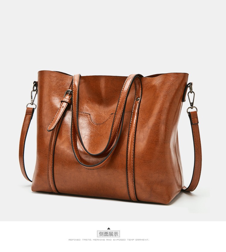 대외 무역 새로운 패션 유럽과 미국 여성 가방 패션 왁스 가죽 휴대용 토트 백 간단한 여성 어깨 가방 머리카락 세대스토어 가기
