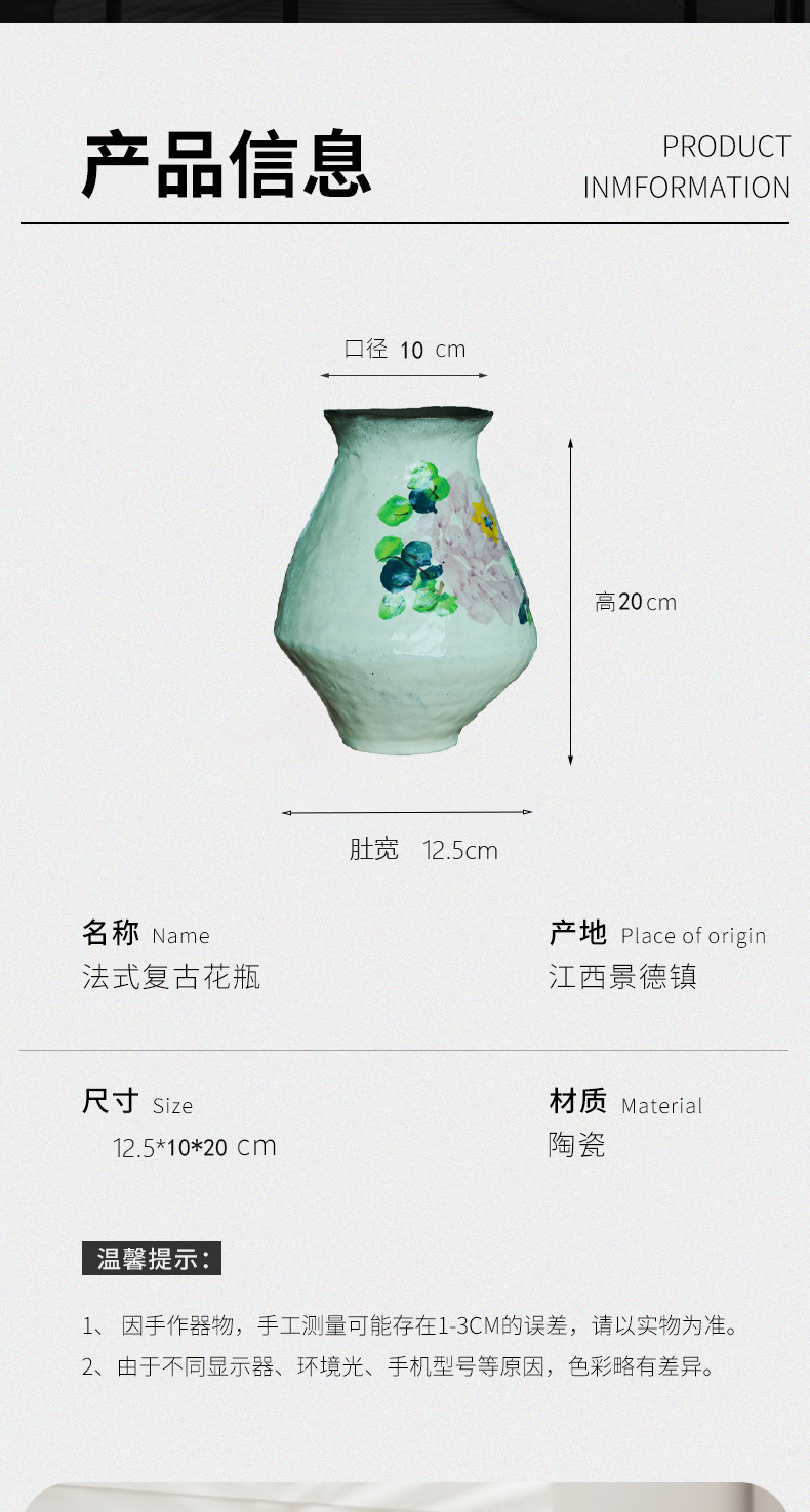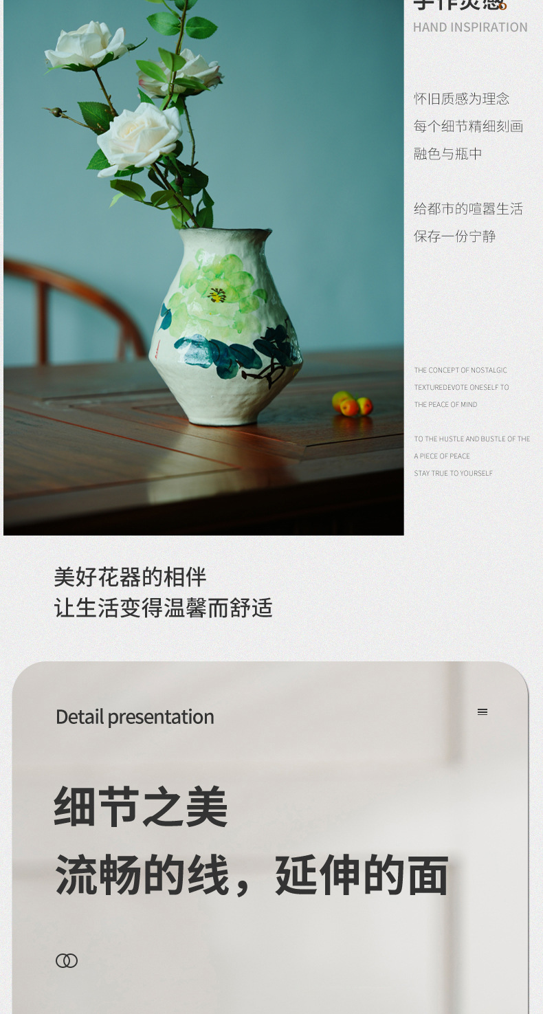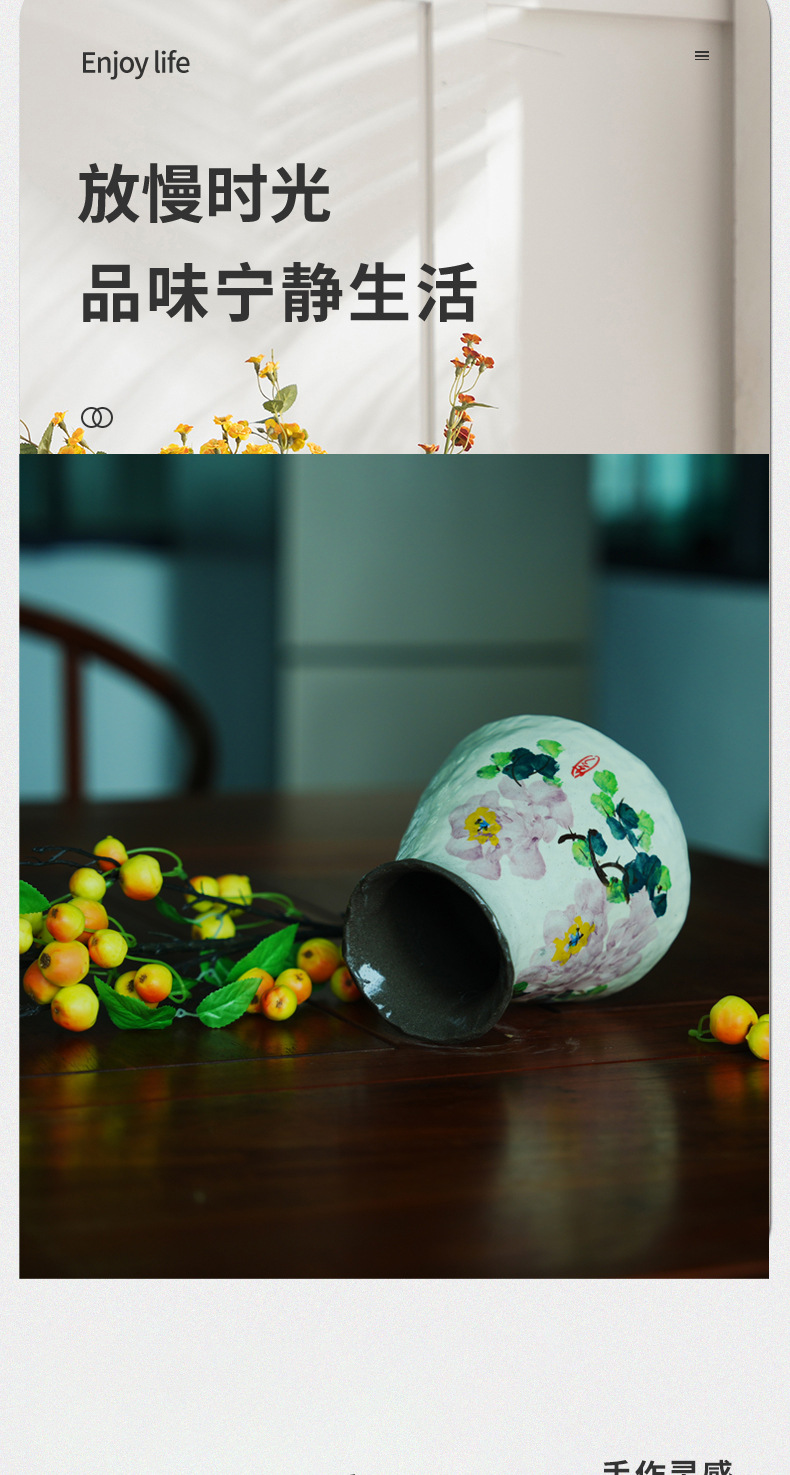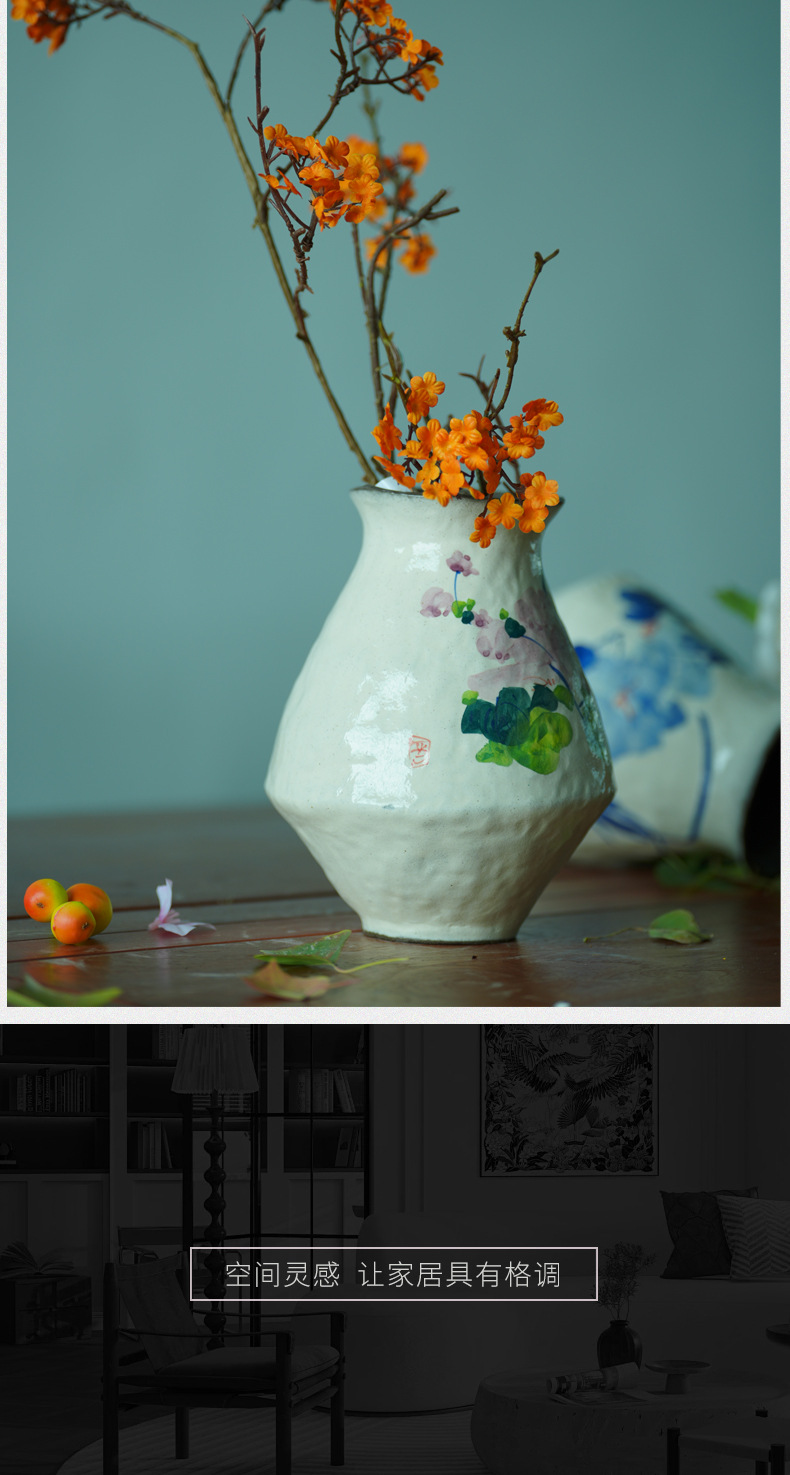 Jingdezhen 세라믹 꽃병 수제 손으로 그린 꽃 꽃병 거실 TV 캐비닛 홈 장식 녹색 식물 꽃병 장식품스토어 가기