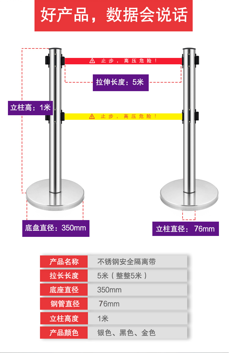 경고 벨트 스테인레스 스틸 텔레스코픽 울타리 3 미터 5 미터 이중 격리 벨트 코르 돈 큐잉 컬럼 안전 가드 레일