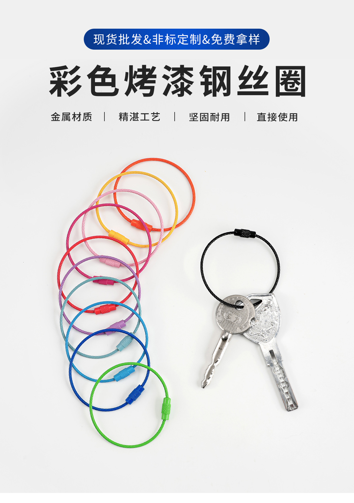 금속 캔디 컬러 페인트 컬러 와이어 링 열쇠 고리 열쇠 고리 수제 펜던트 작은 보석 액세서리