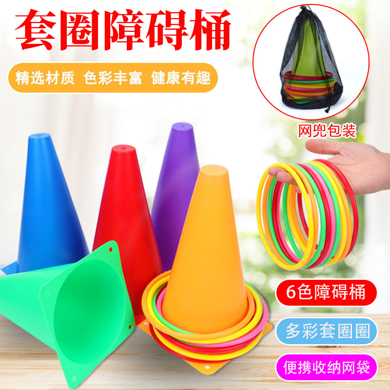 장애물 양동이 반지 플라스틱 축구 훈련 도로 장벽 장애물 어린이 부모-어린이 게임 던지기 양동이 반지 장난감