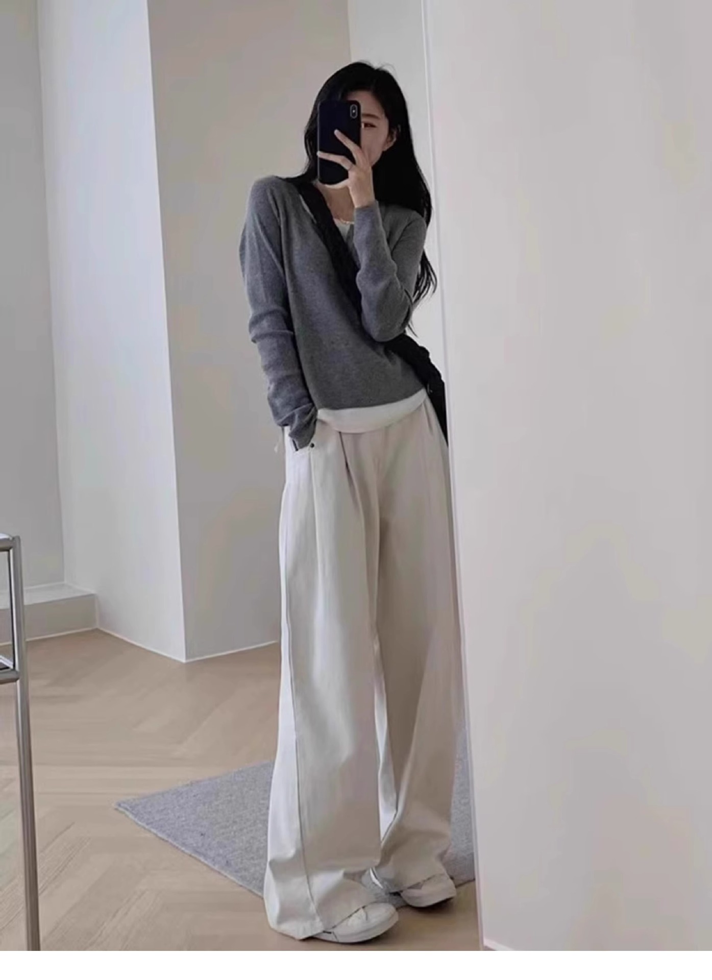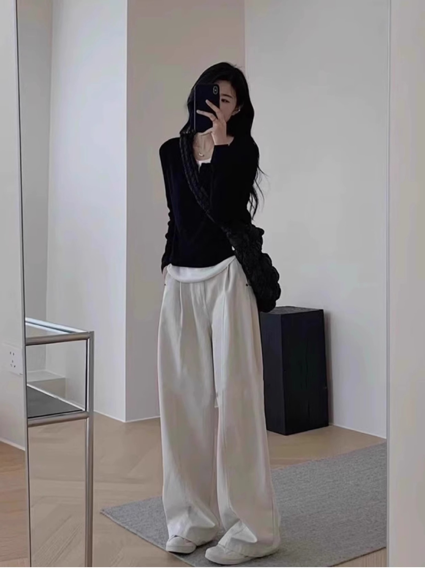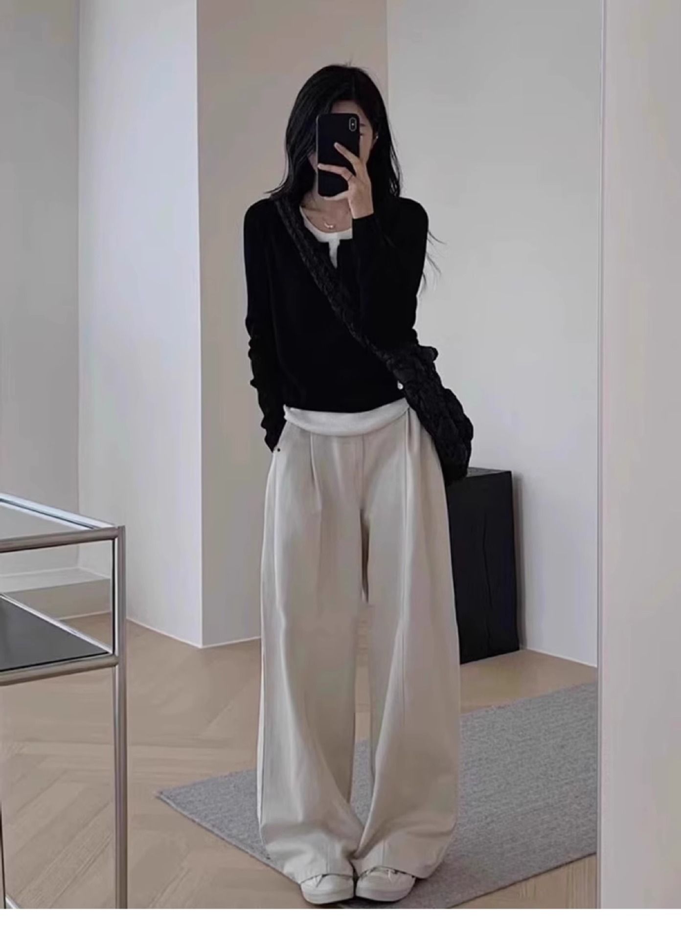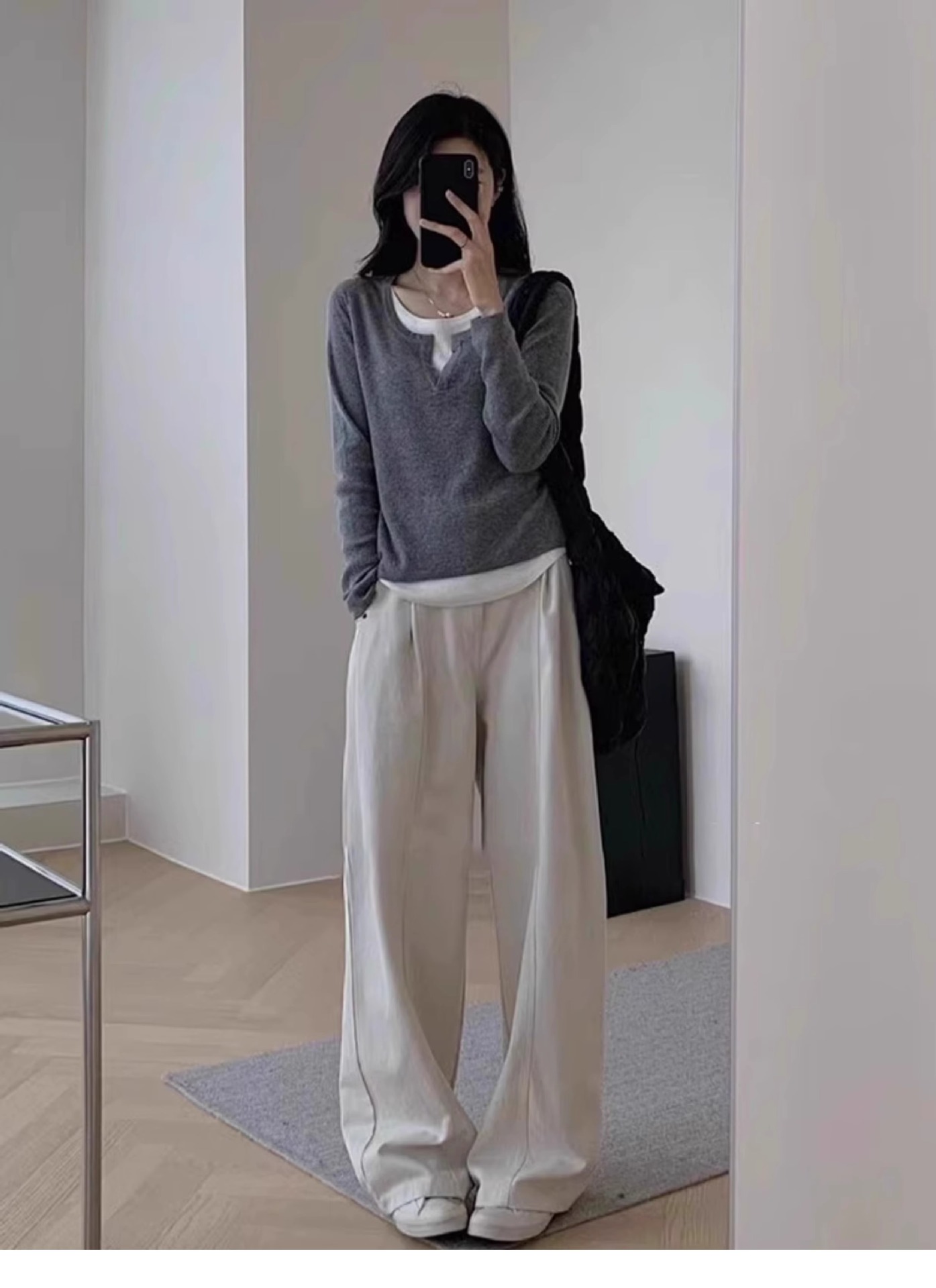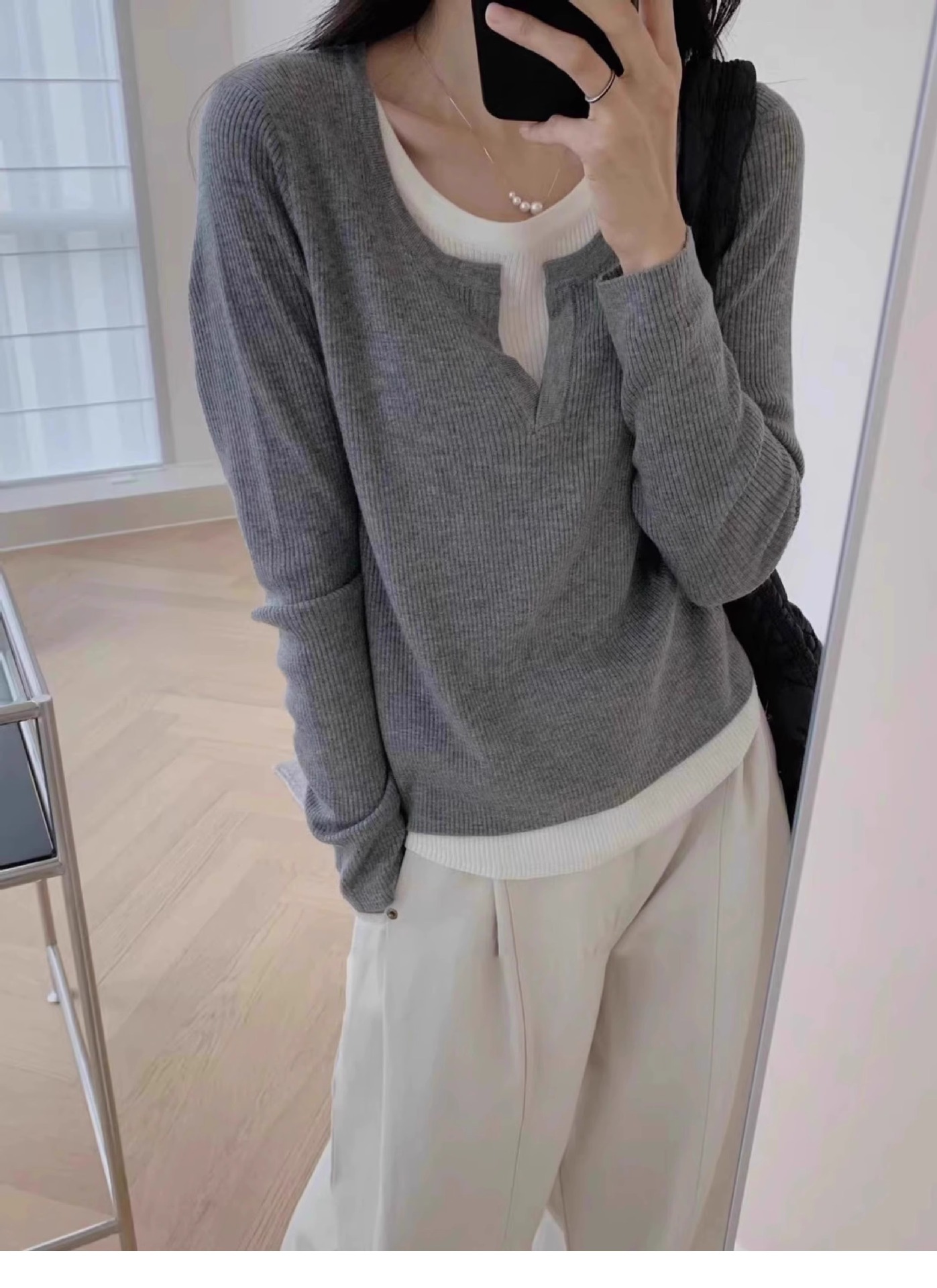 Chic Irregular Hem Top 여성용 봄과 가을 인테리어 가짜 투피스 바느질 긴팔 티셔츠 슬림핏 베이스 셔츠스토어 가기