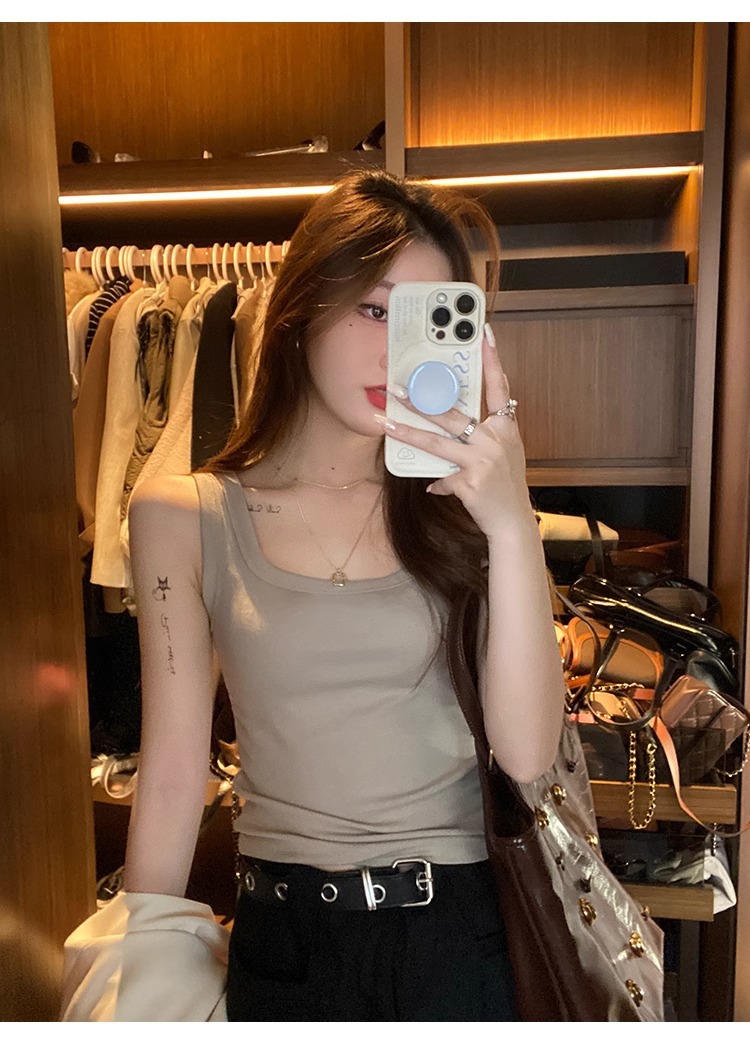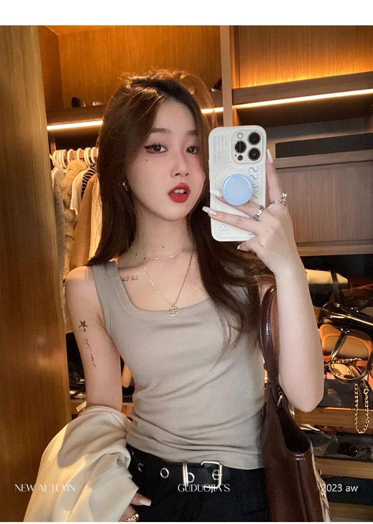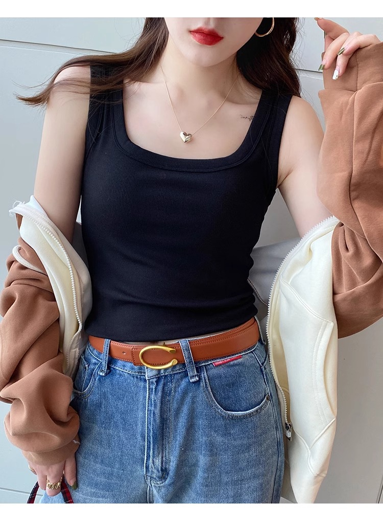 모달 스레드 스퀘어 칼라 카미 솔 여성의 봄과 여름 플러스 사이즈 내복 외복 슬림 핏 민소매 기본 레이어 탑스토어 가기