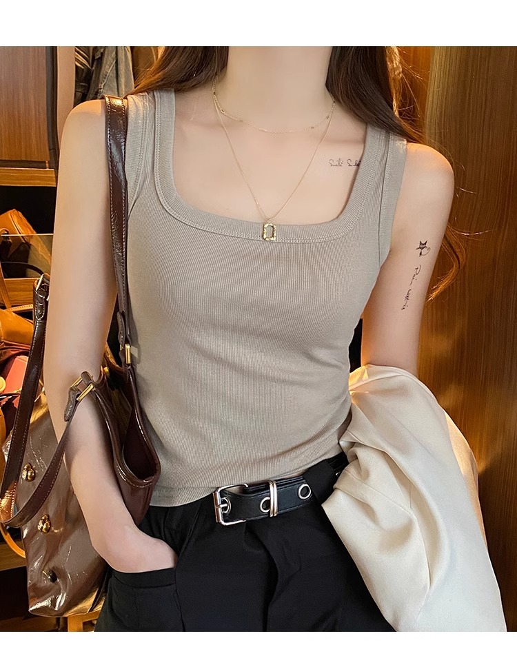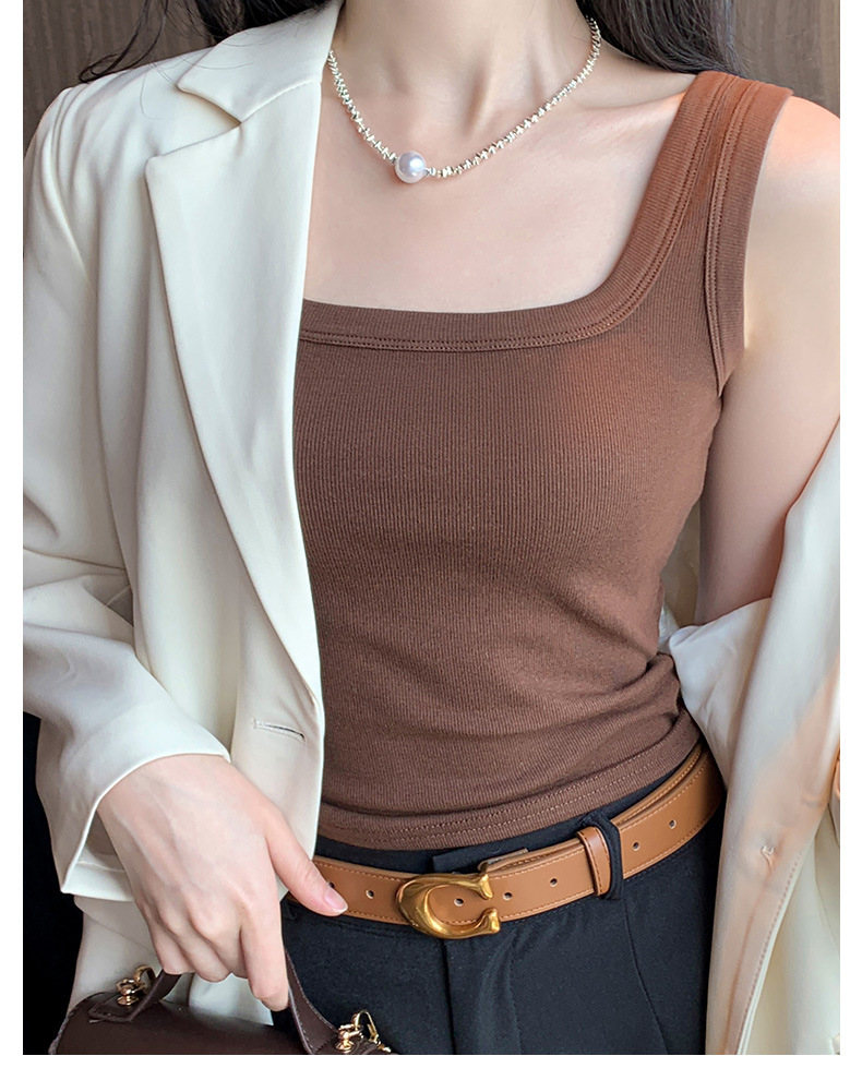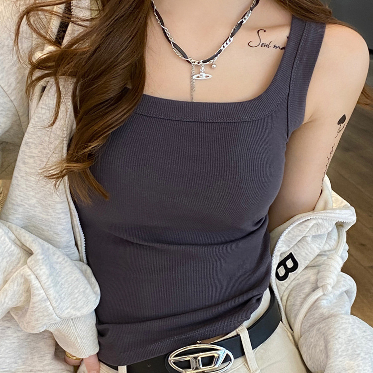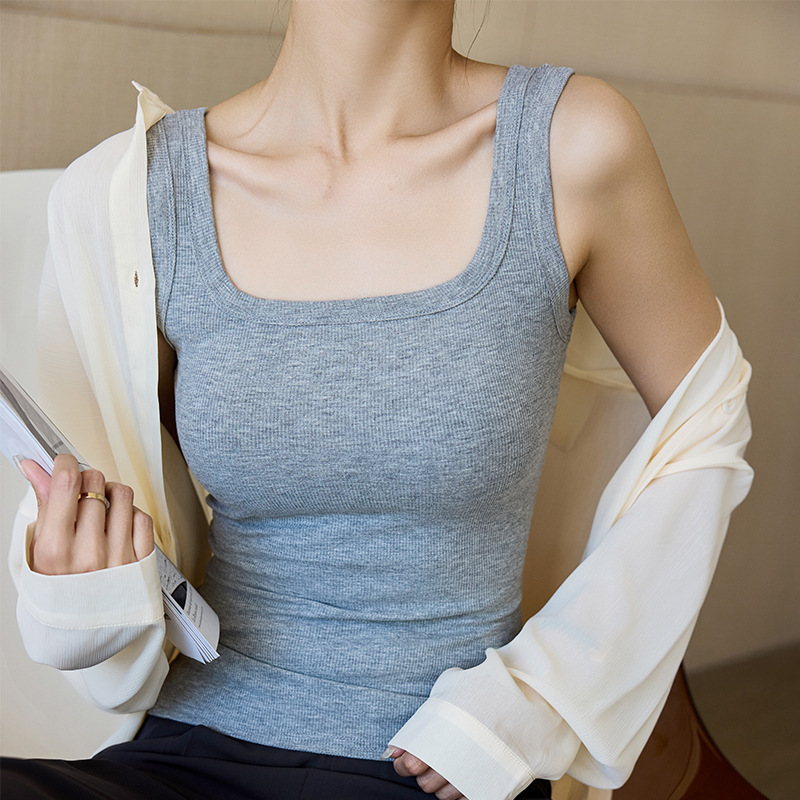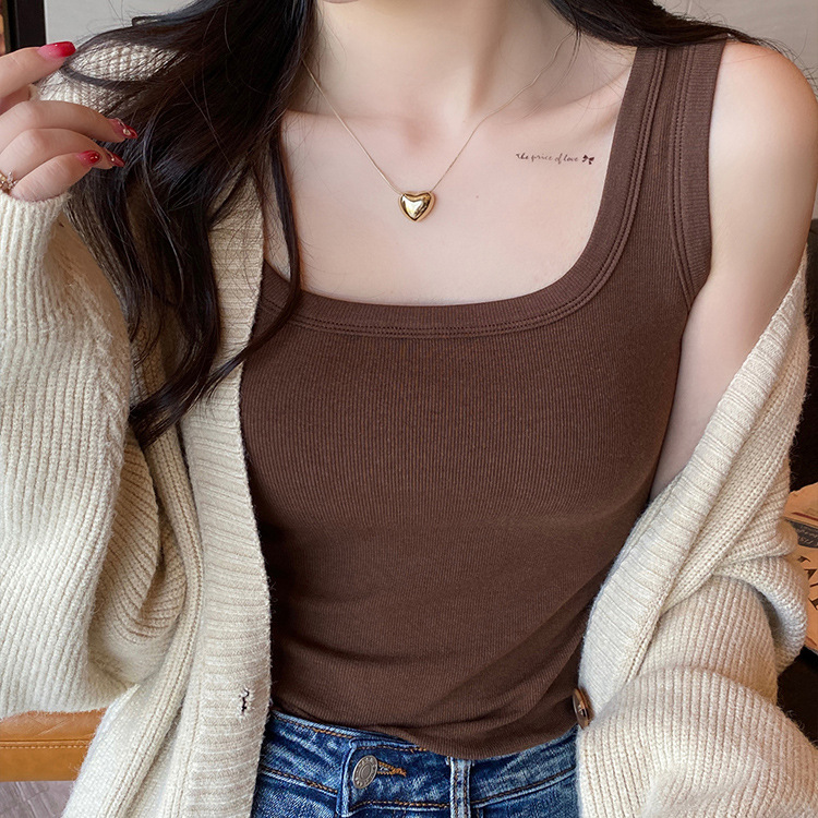 모달 스레드 스퀘어 칼라 카미 솔 여성의 봄과 여름 플러스 사이즈 내복 외복 슬림 핏 민소매 기본 레이어 탑