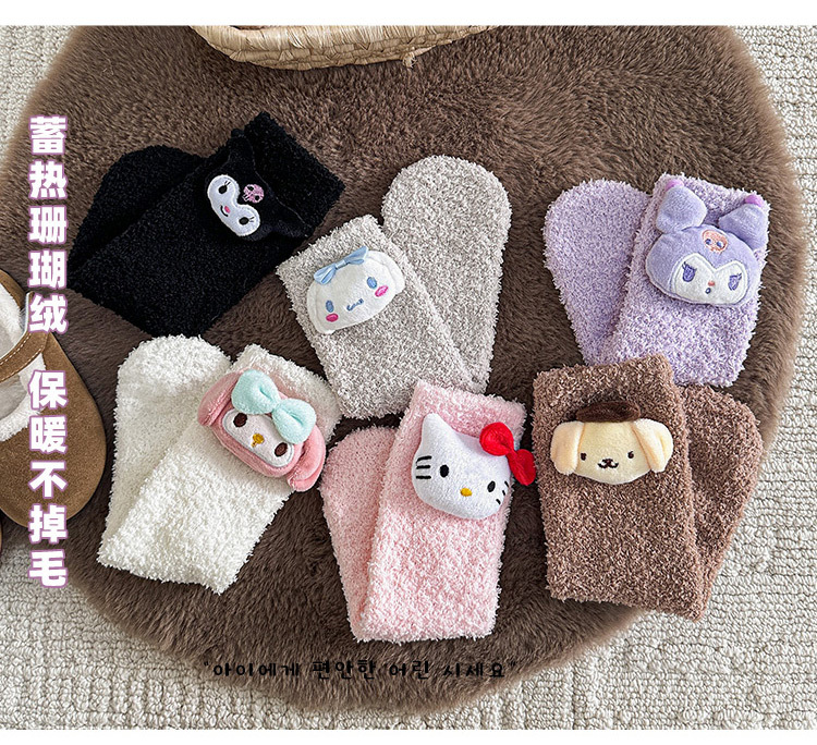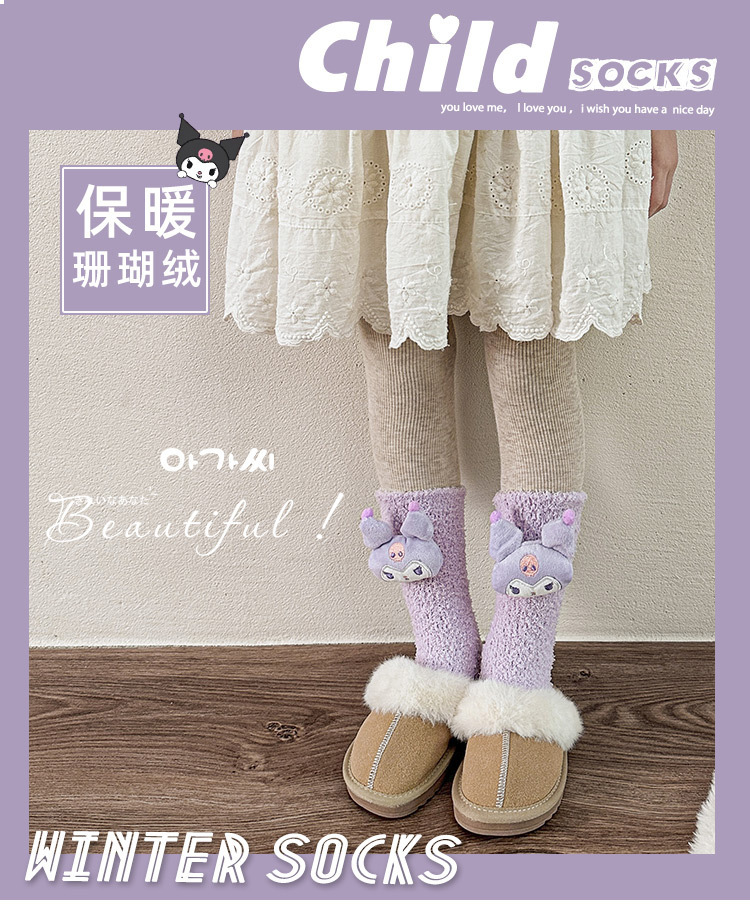 어린이 산호 벨벳 양말 가을과 겨울 두꺼운 봉제 양말 귀여운 만화 소녀 Kulomi Boys의 따뜻한 수면 양말스토어 가기
