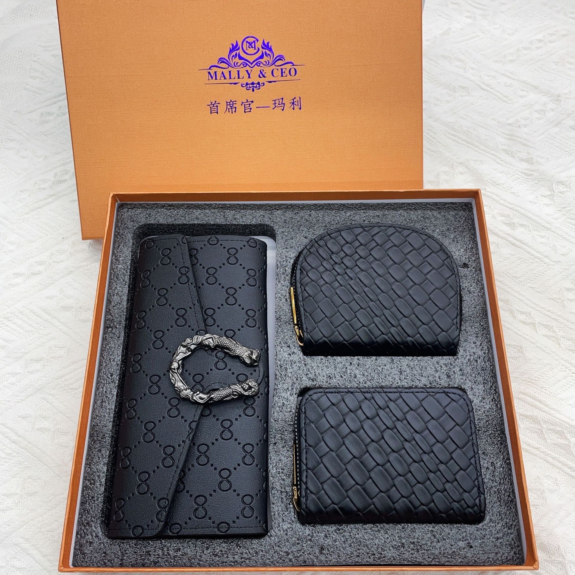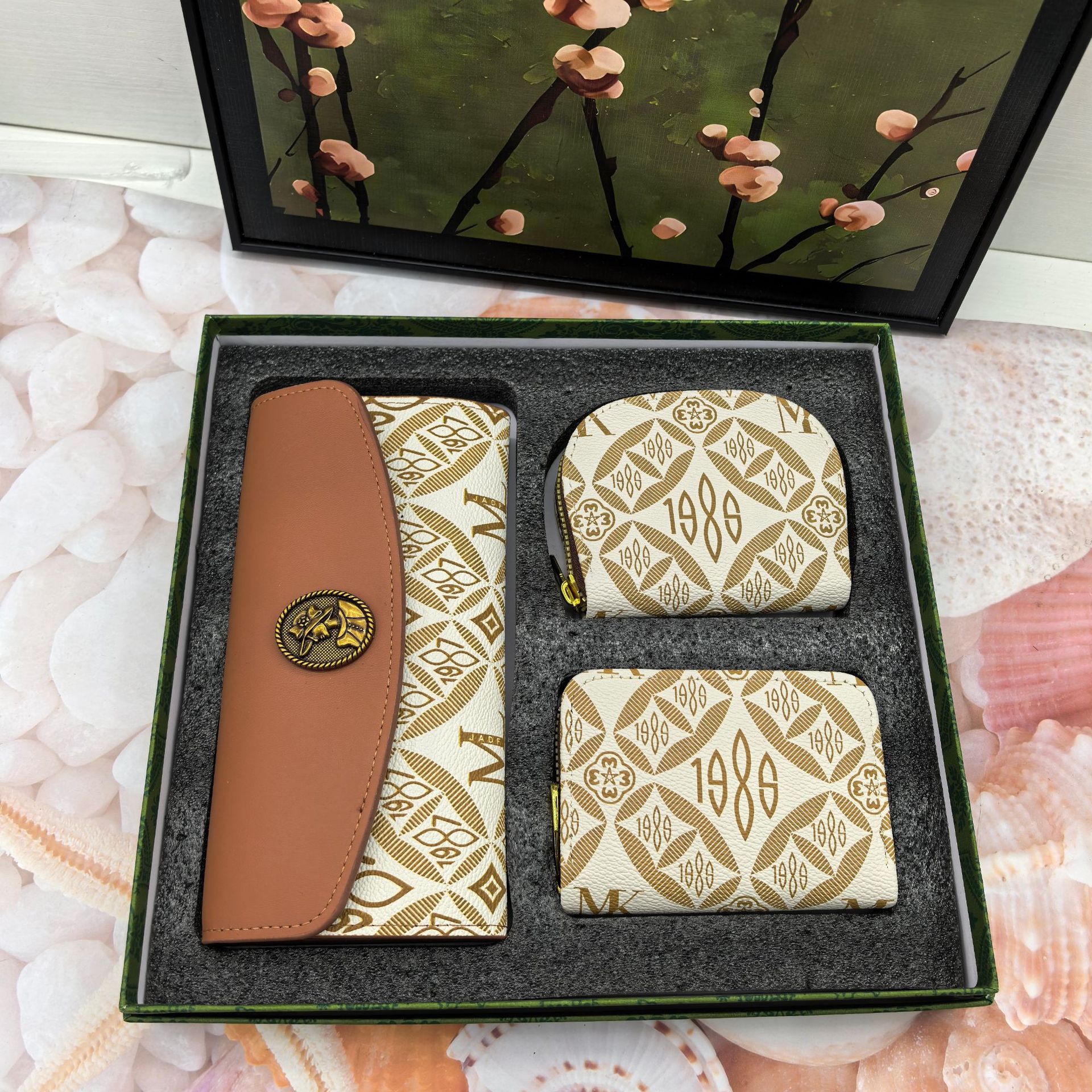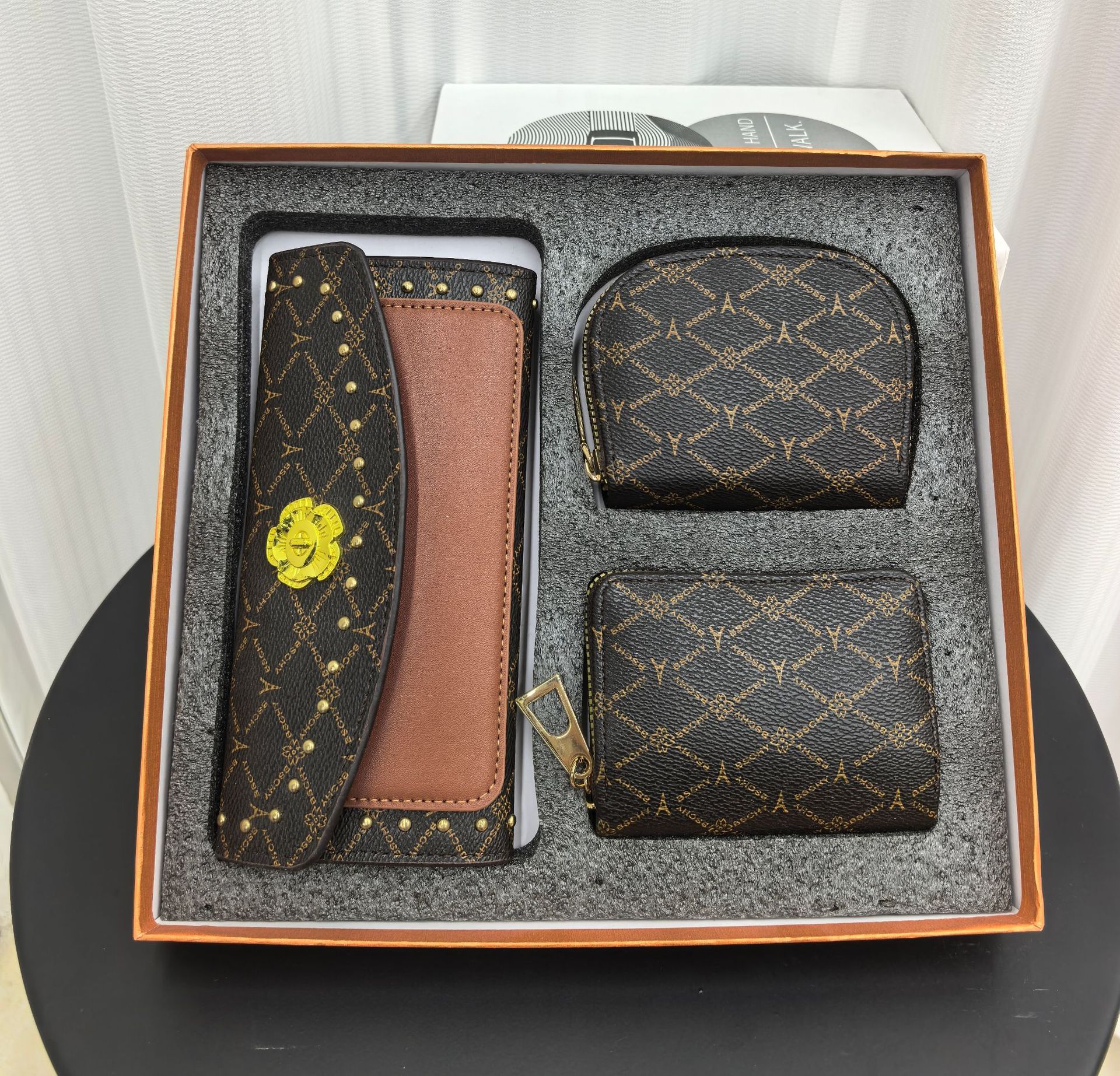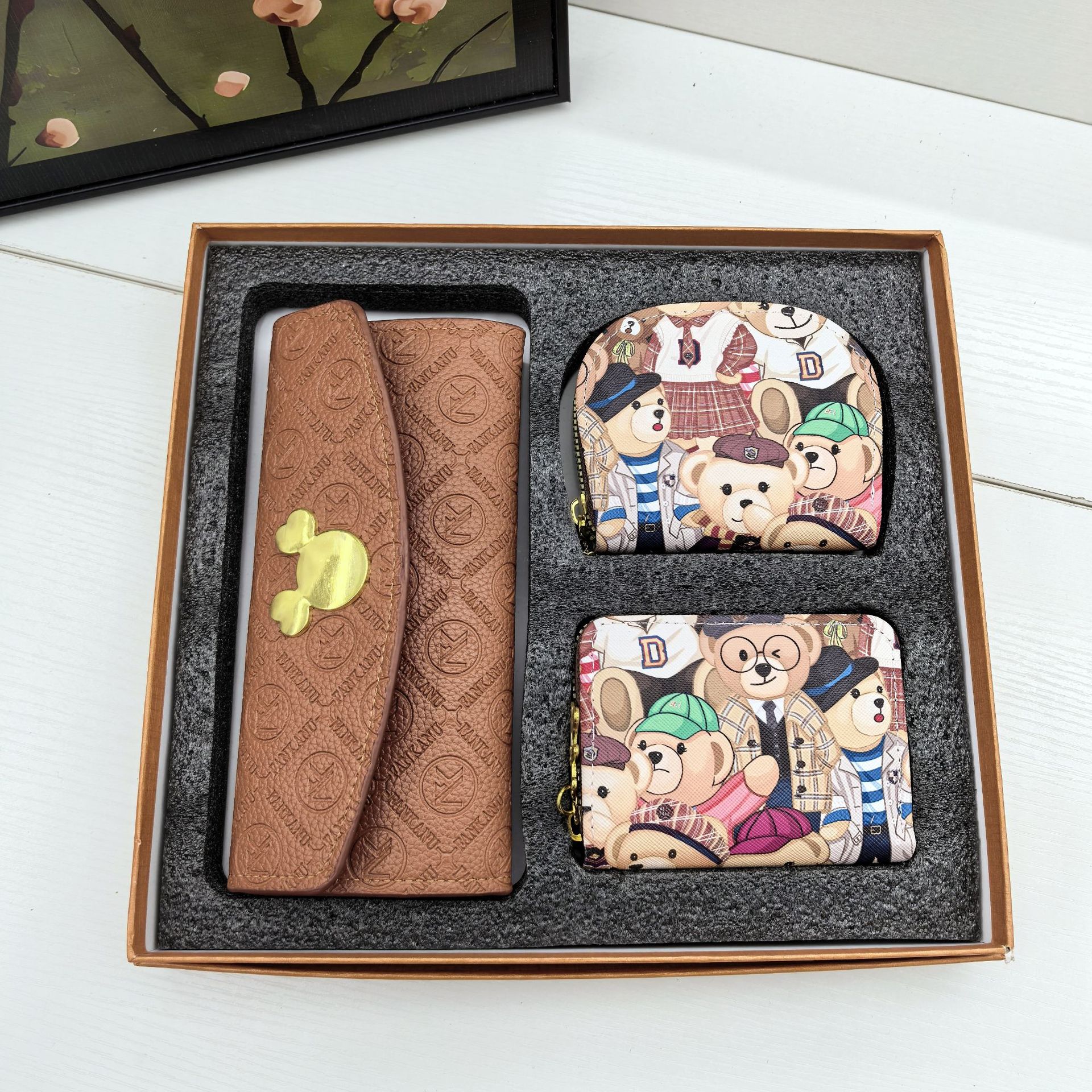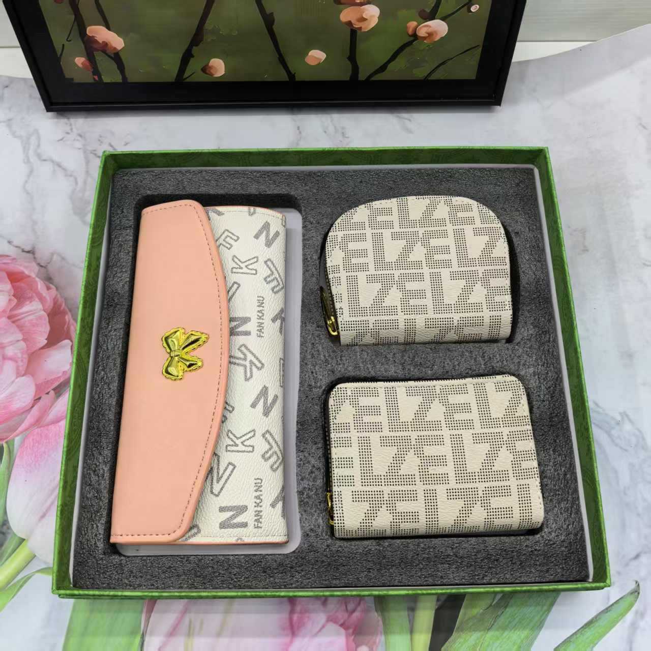 2024 새로운 3 피스 선물 상자 머니 클립 카드 가방 커버 박스 지퍼 더블 지퍼 패션 스토리지