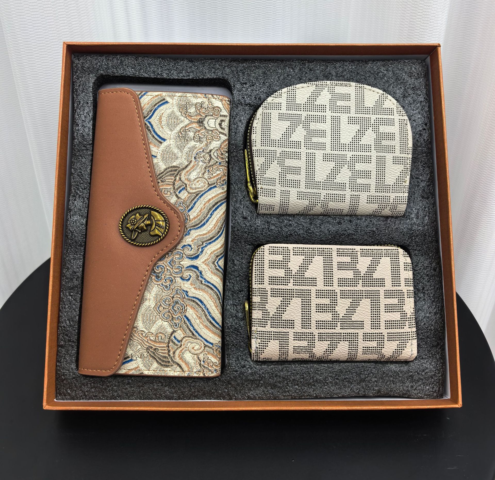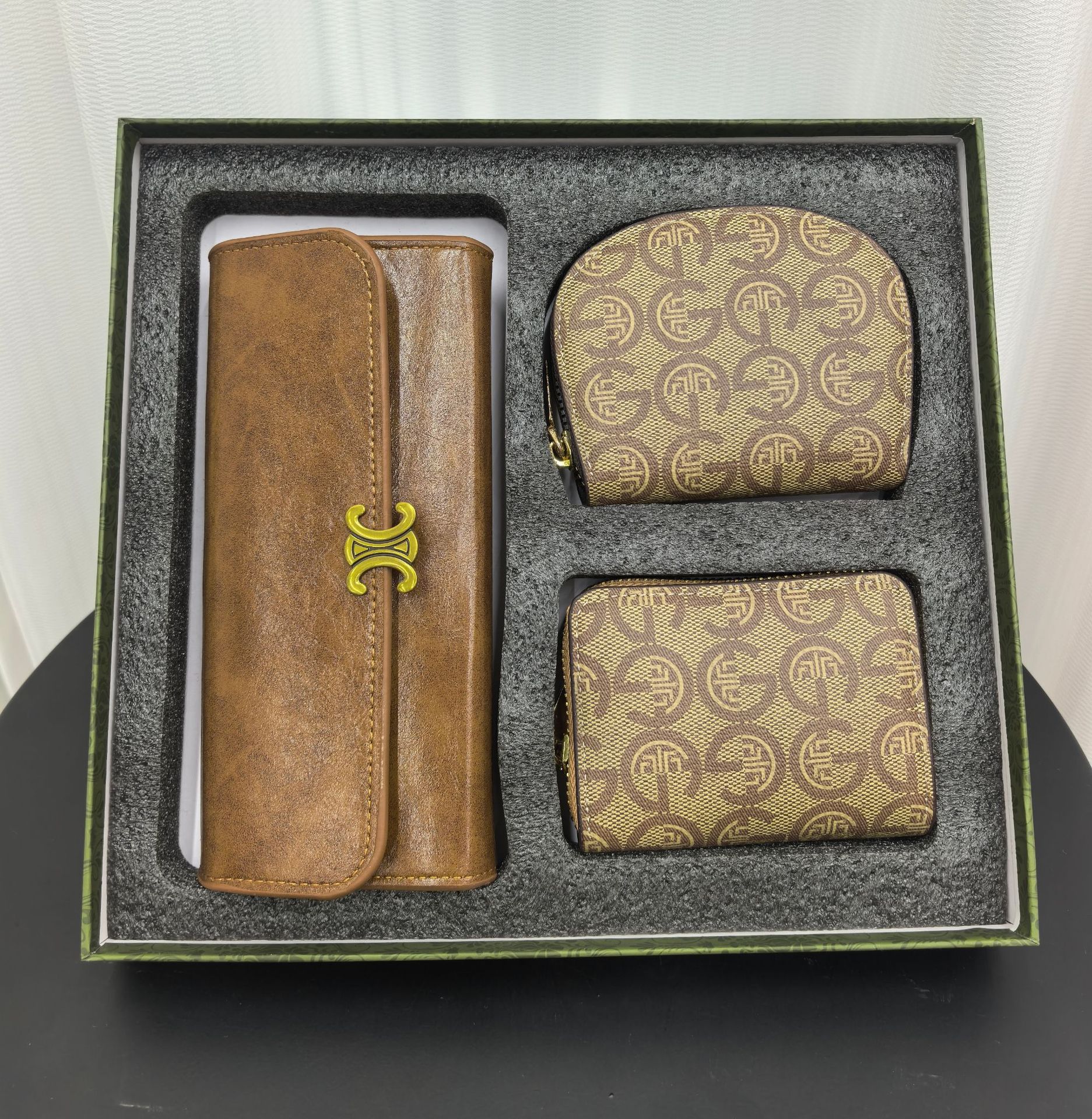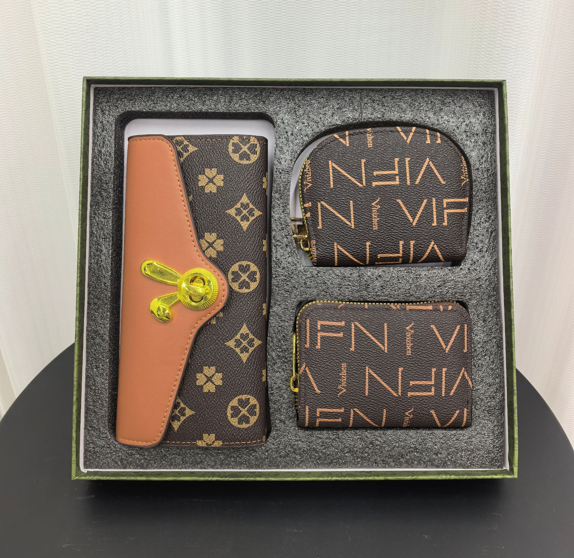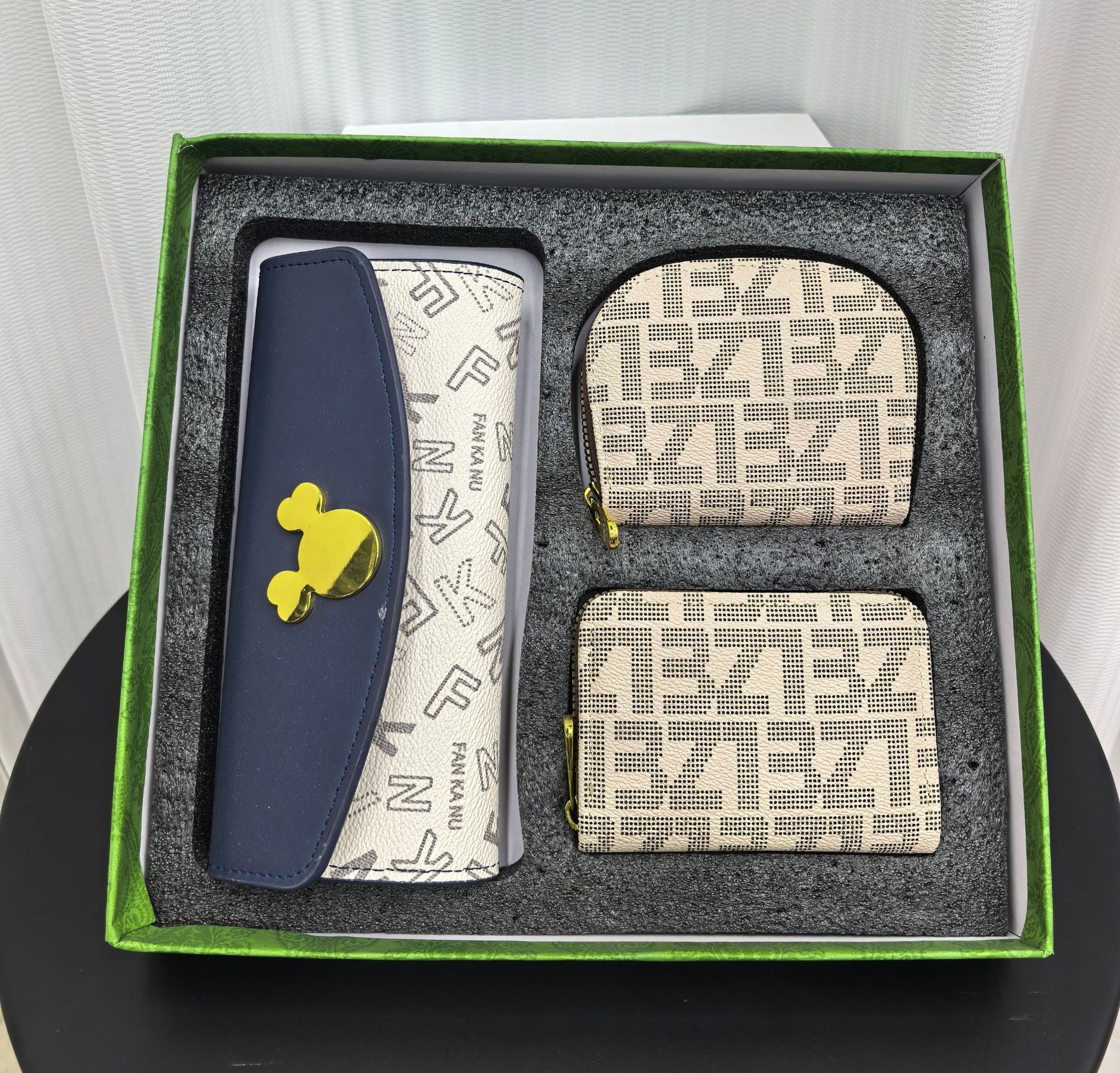 2024 새로운 3 피스 선물 상자 머니 클립 카드 가방 커버 박스 지퍼 더블 지퍼 패션 스토리지