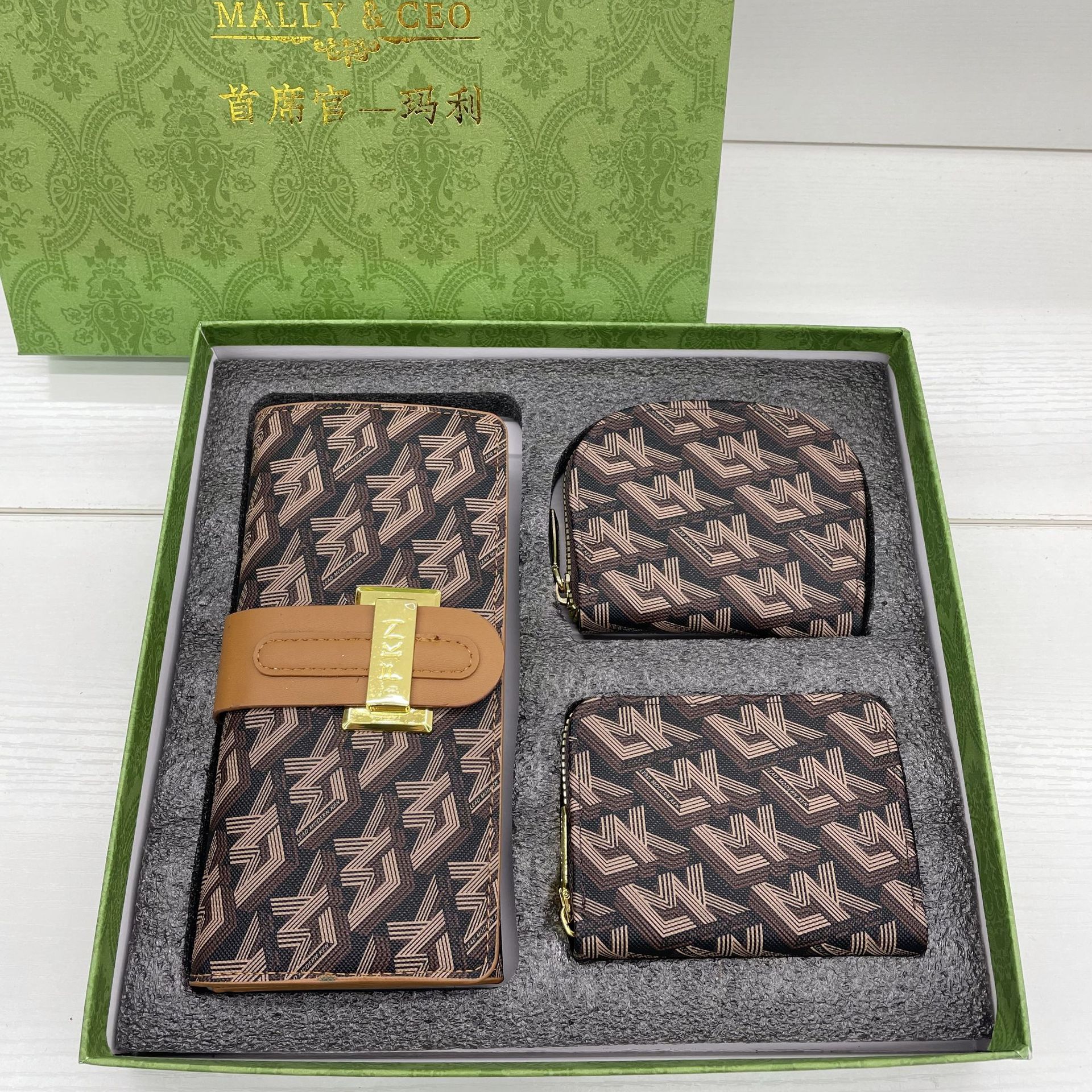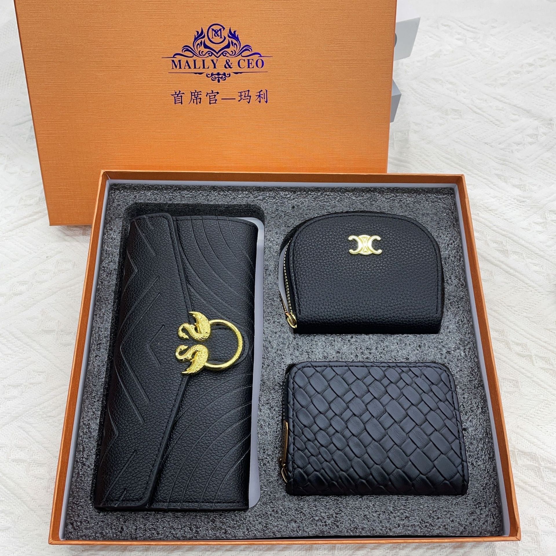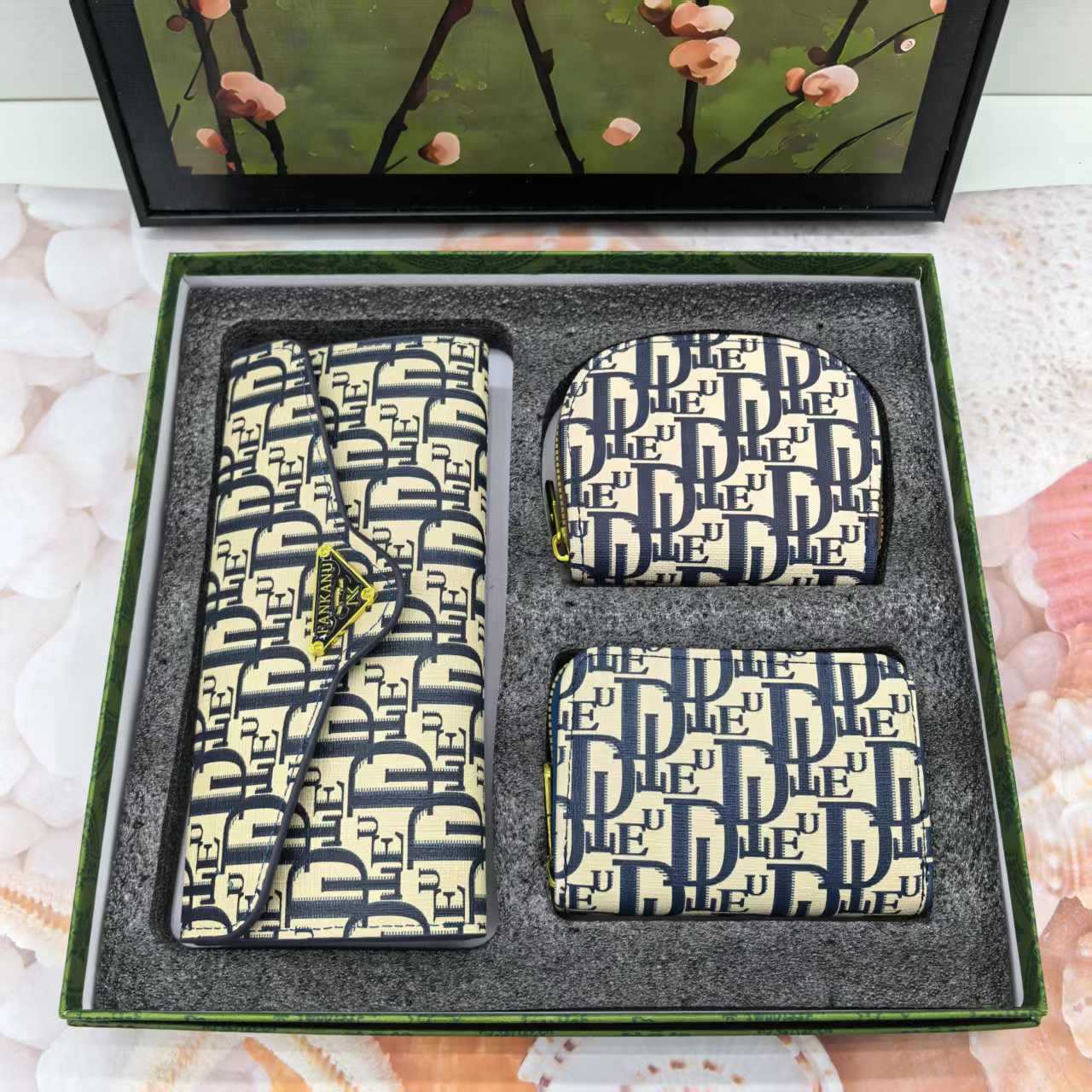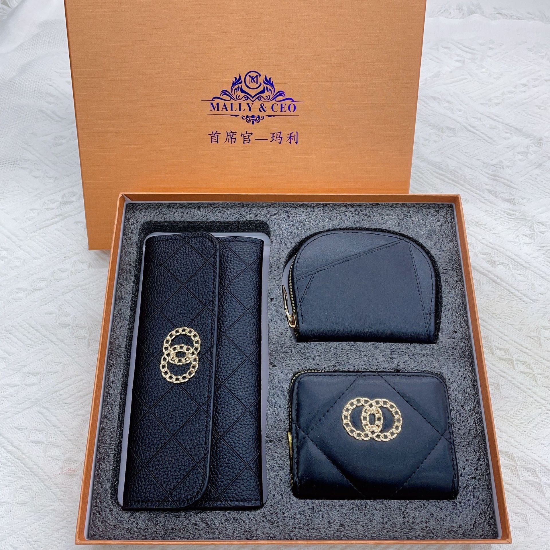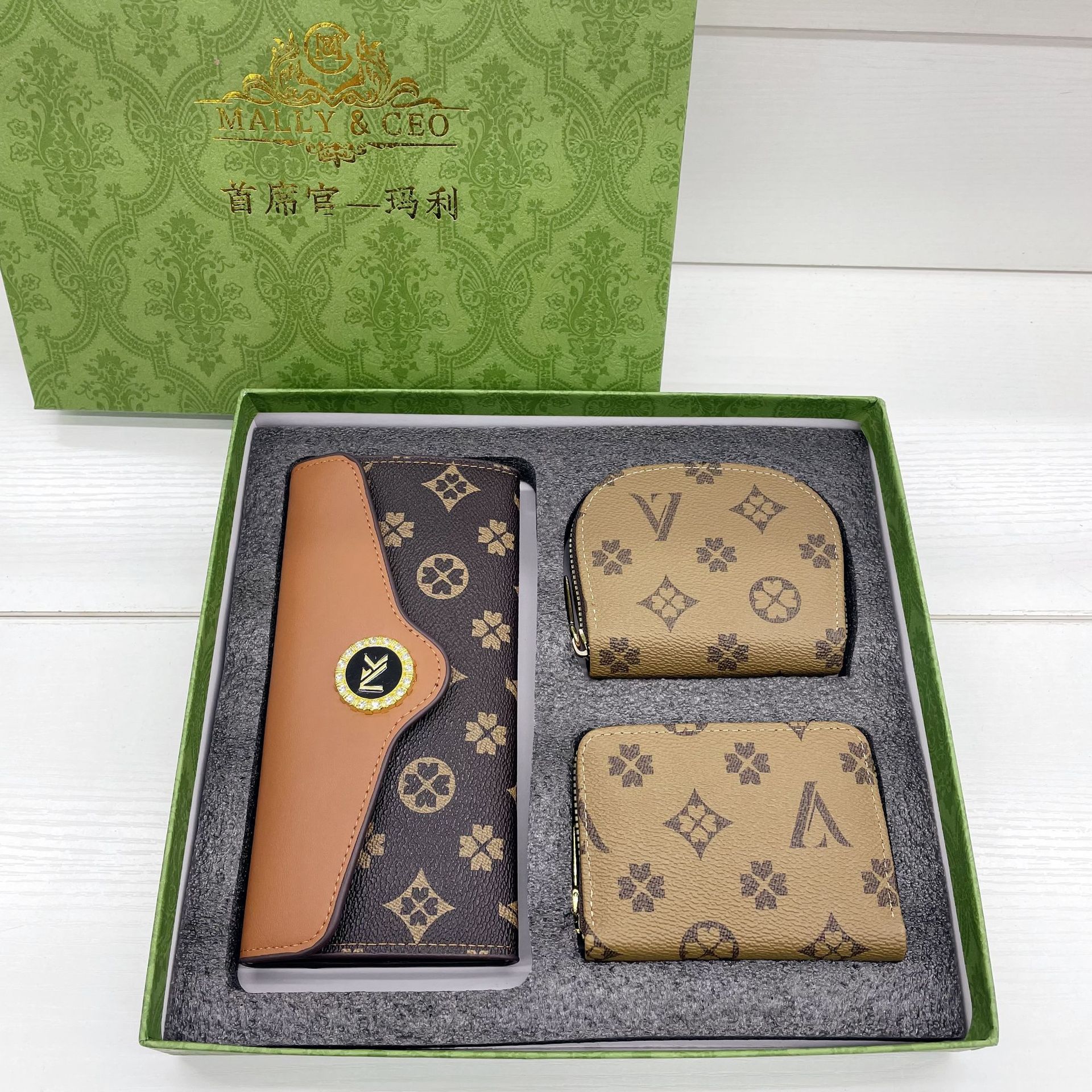 2024 새로운 3 피스 선물 상자 머니 클립 카드 가방 커버 박스 지퍼 더블 지퍼 패션 스토리지