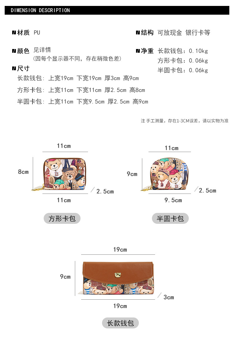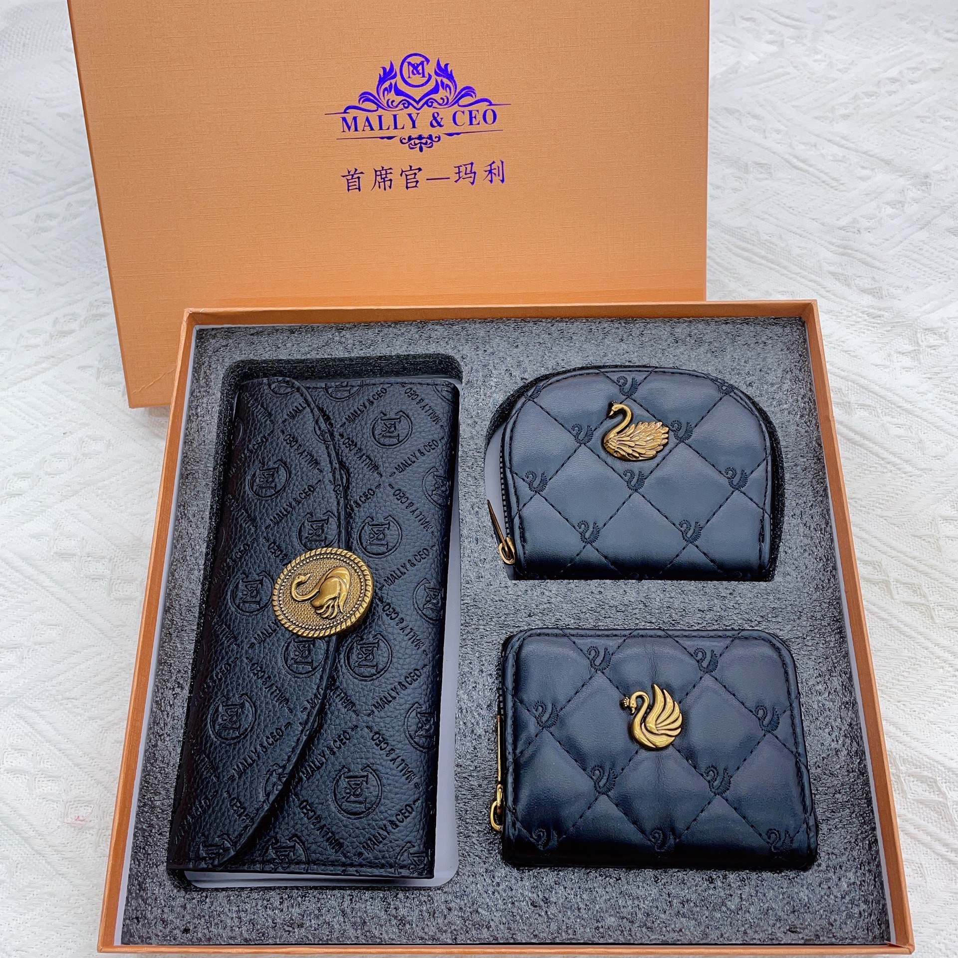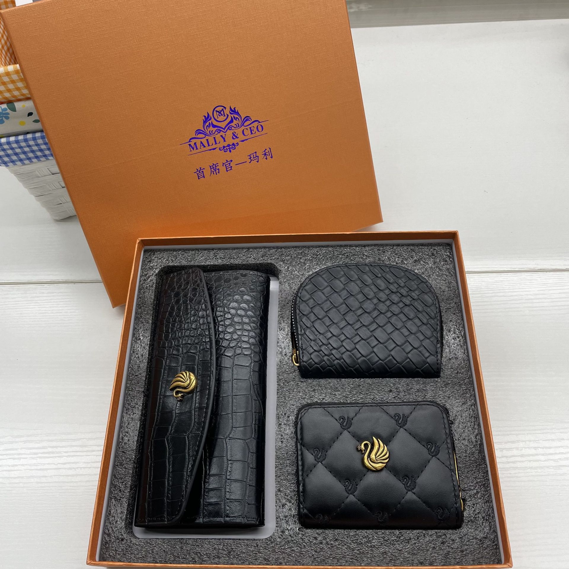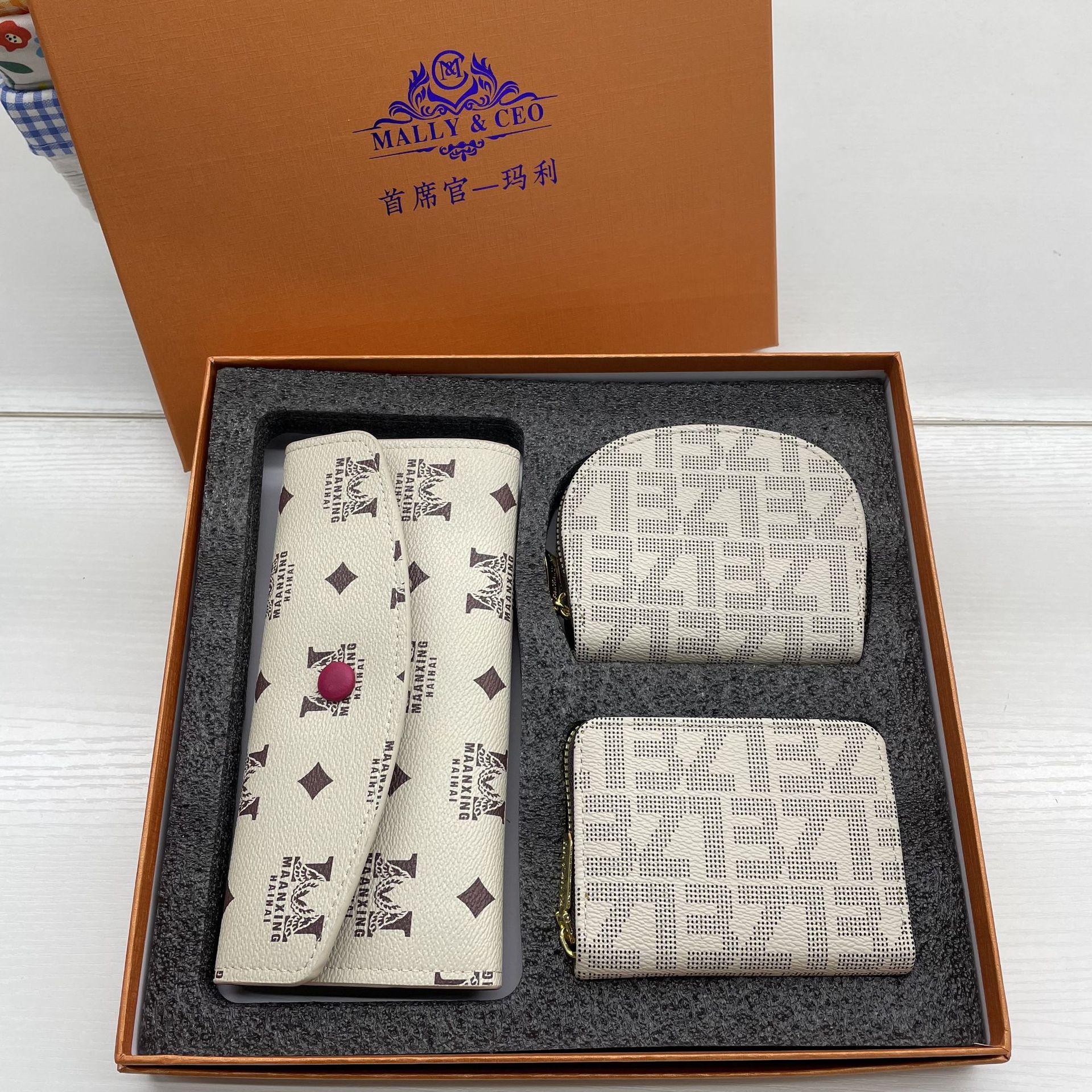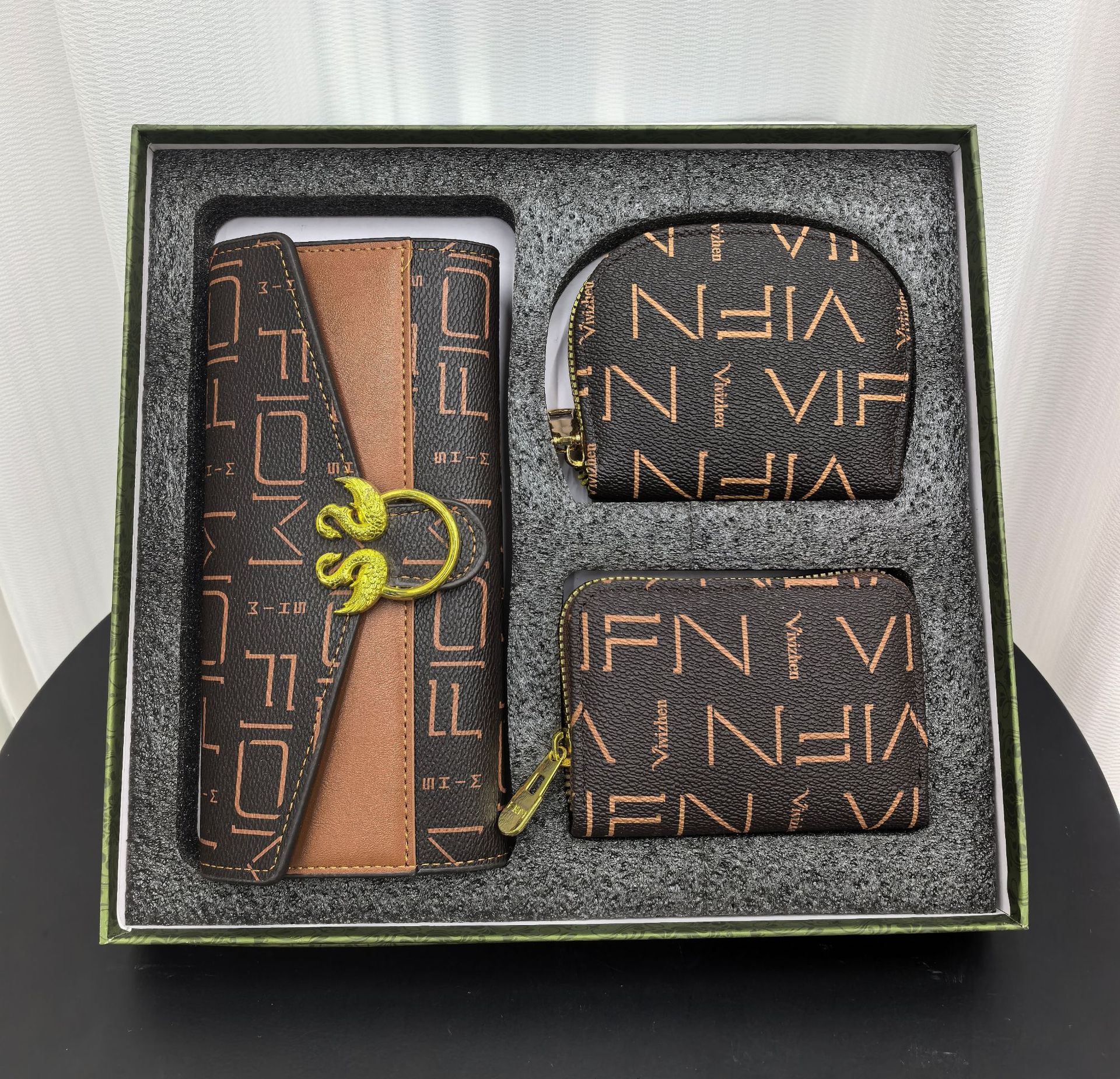 2024 새로운 3 피스 선물 상자 머니 클립 카드 가방 커버 박스 지퍼 더블 지퍼 패션 스토리지
