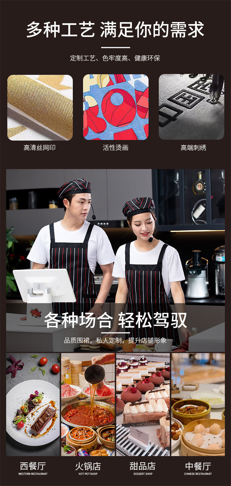 서양 레스토랑 핫팟 샵 웨이터 작업 줄무늬 앞치마 모자 카페 우유 차 가게 케이터링 케이크 가게 허리