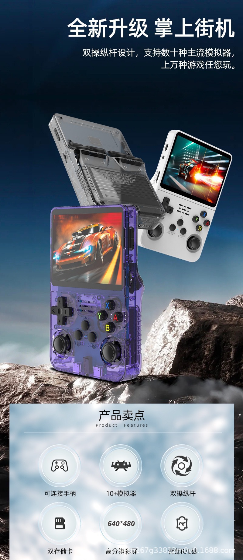 국경 간 새로운 r36 핸드 헬드 게임 콘솔 휴대용 향수 레트로 아케이드 올인원 휴대용 오픈 소스 게임 콘솔