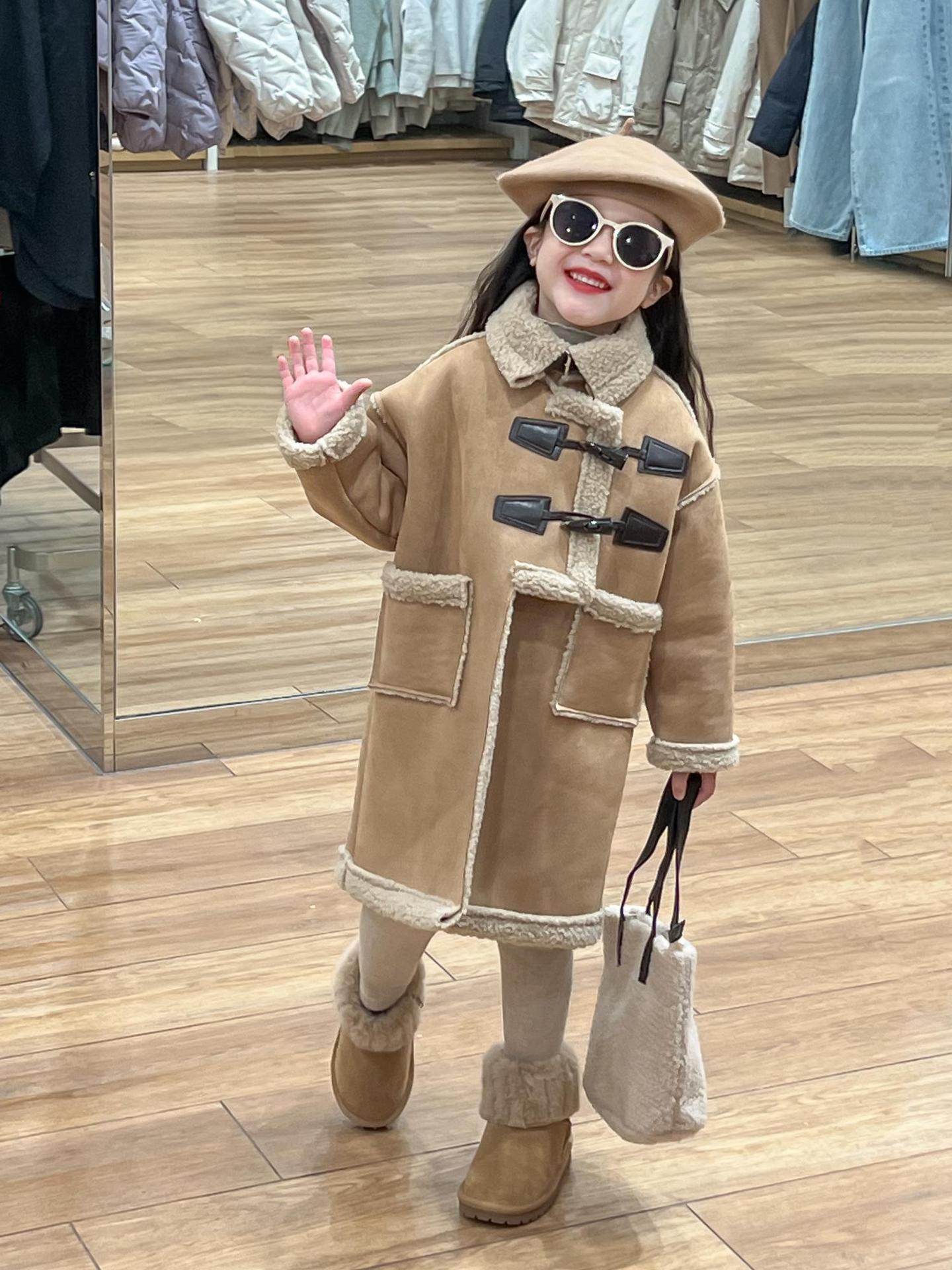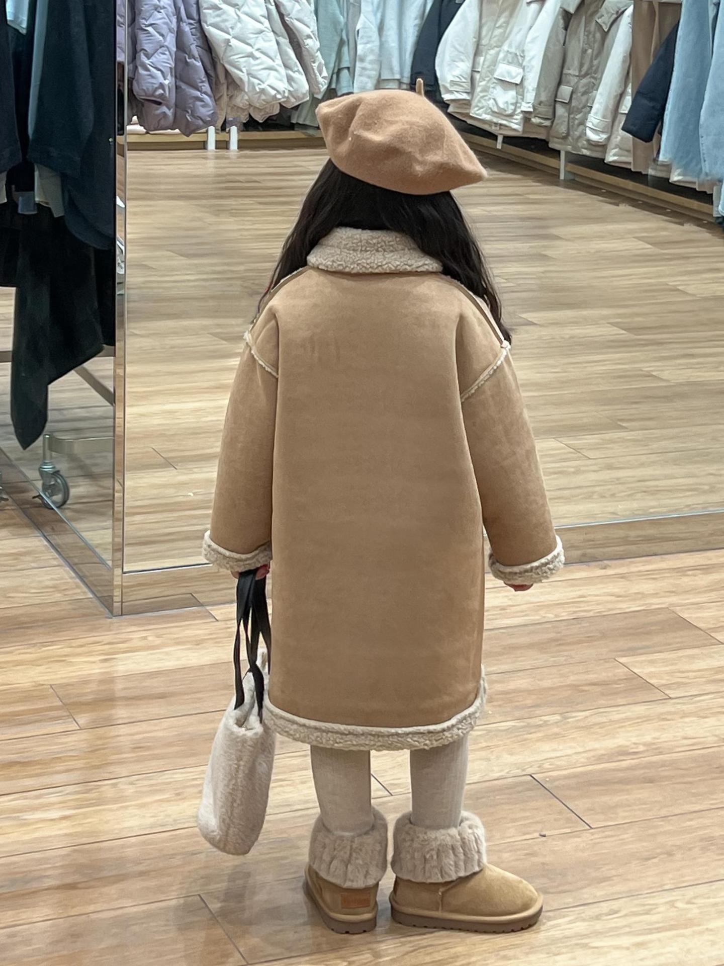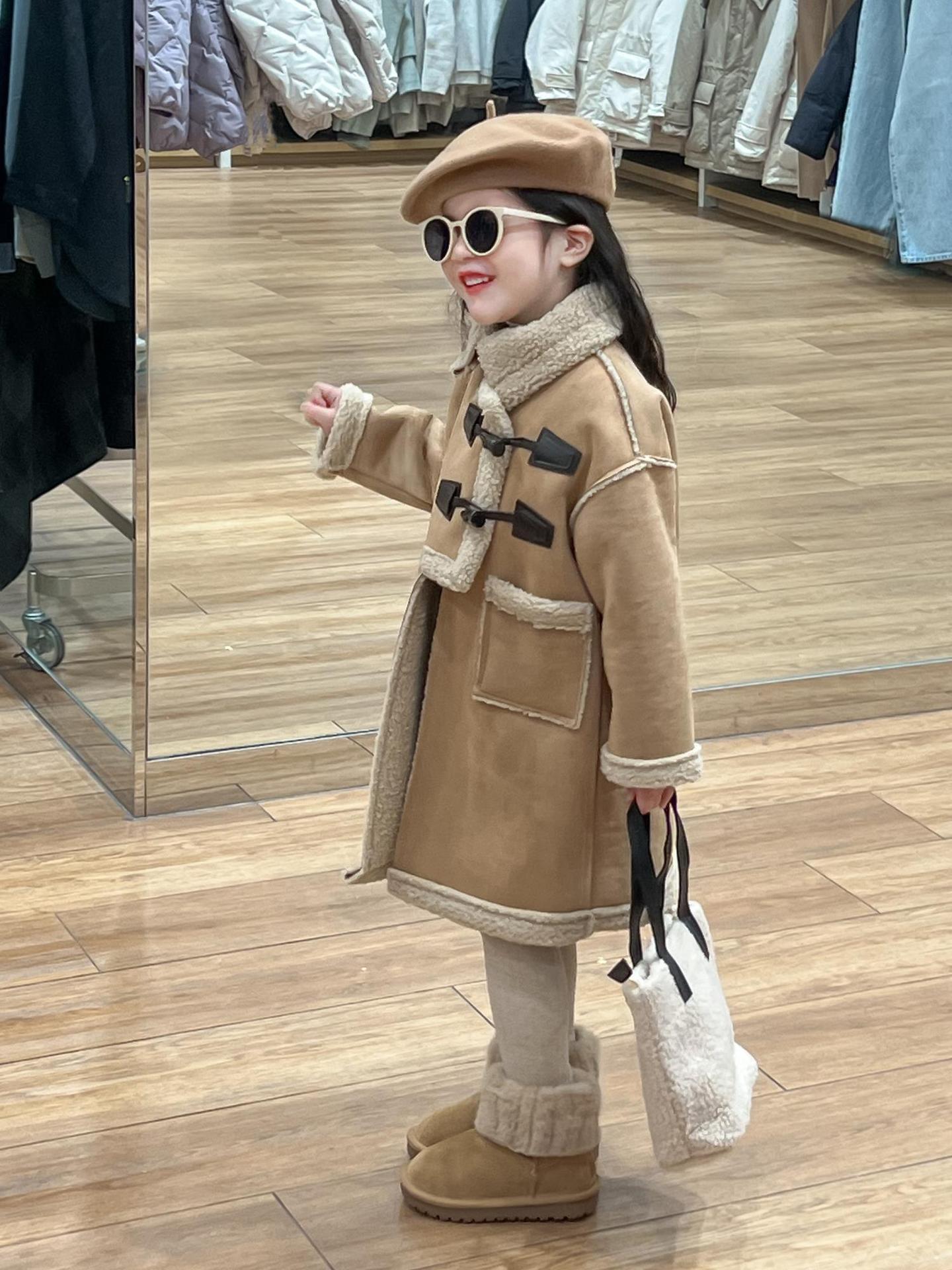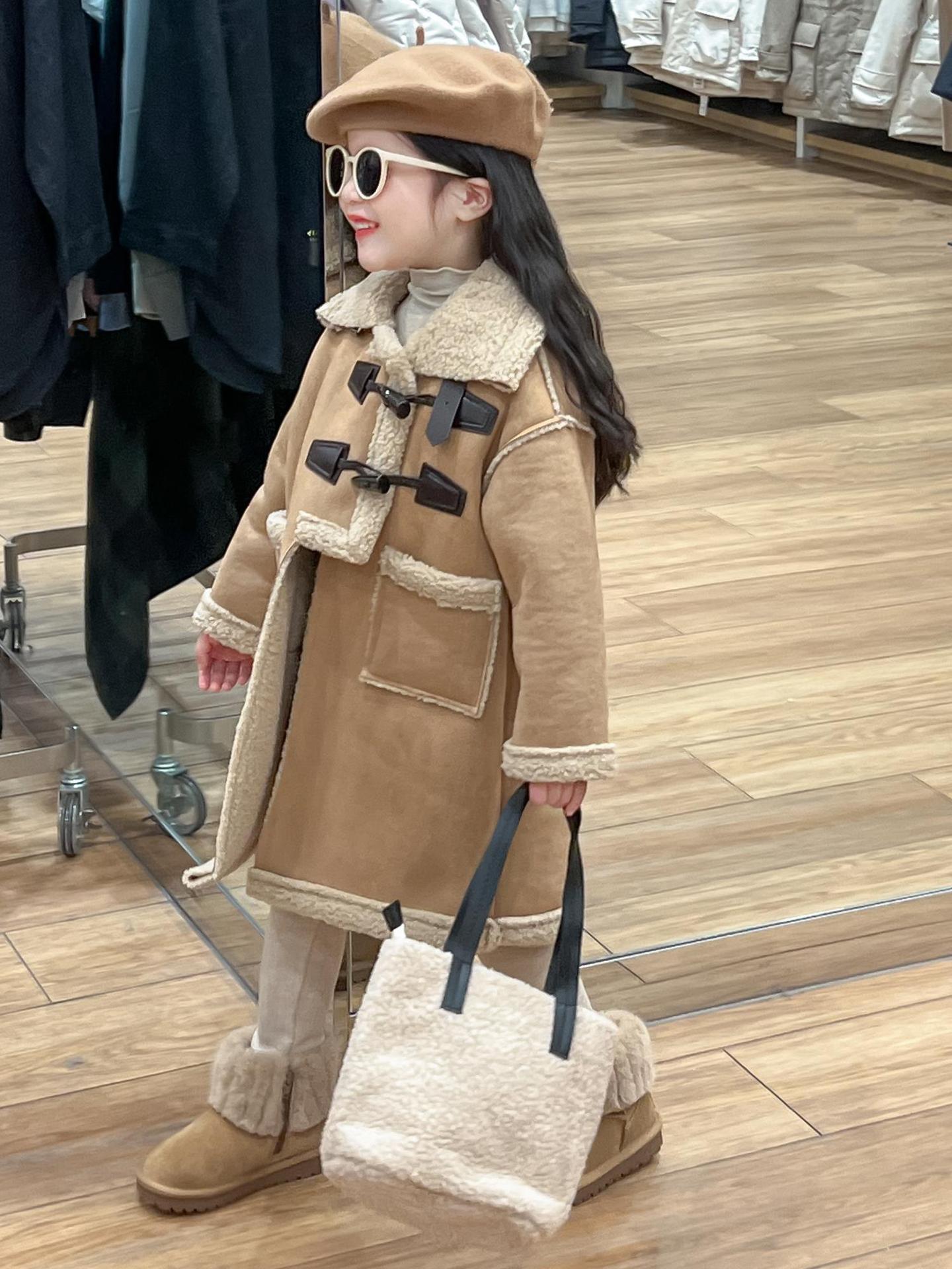 소녀 겨울 불규칙한 가죽 버튼 라켓 기모 두꺼운 다크 브라운 모피 원피스 따뜻한 중간 길이 코트 재킷스토어 가기