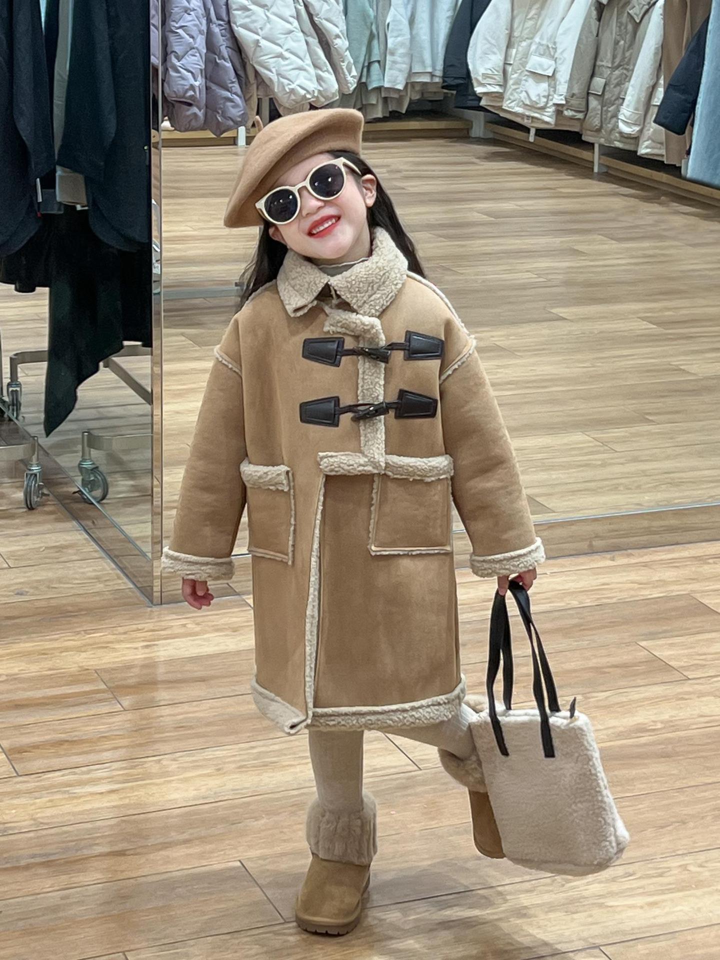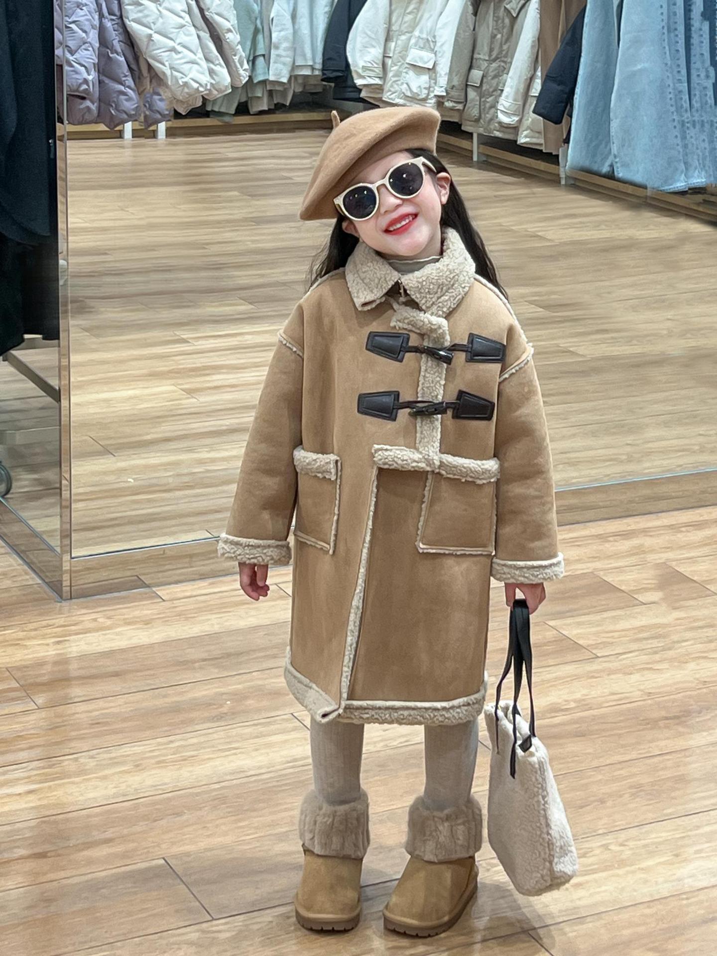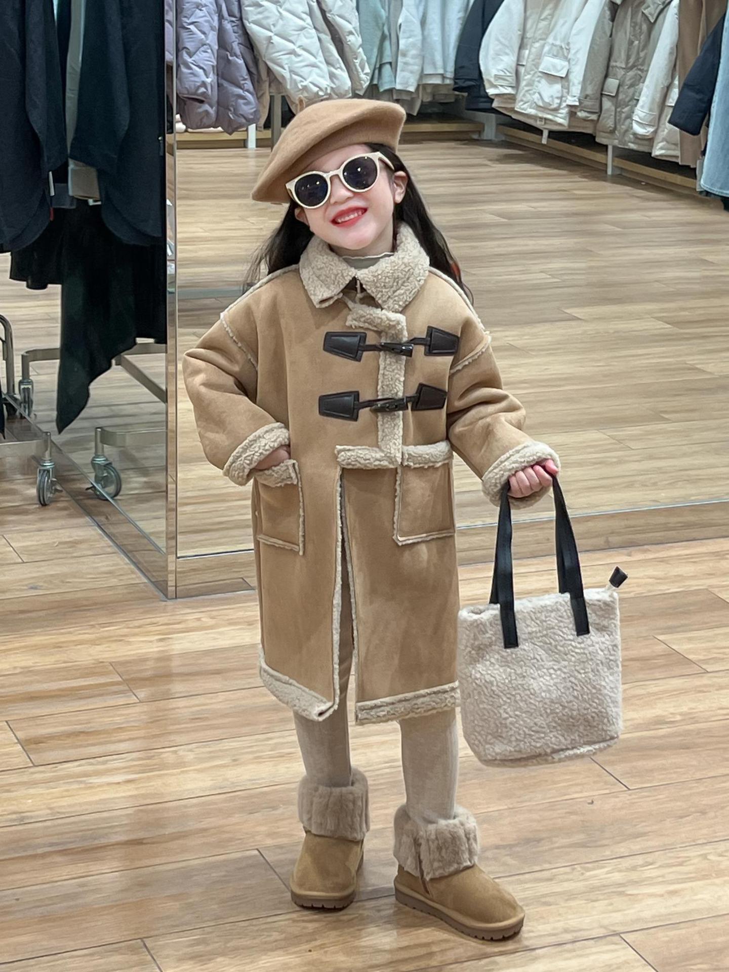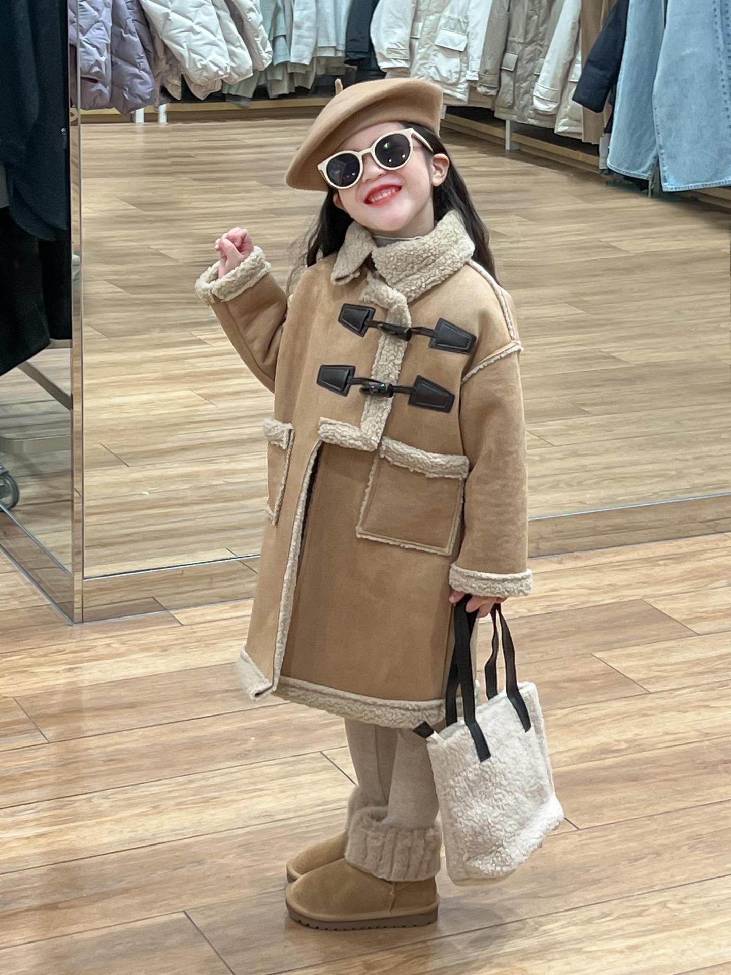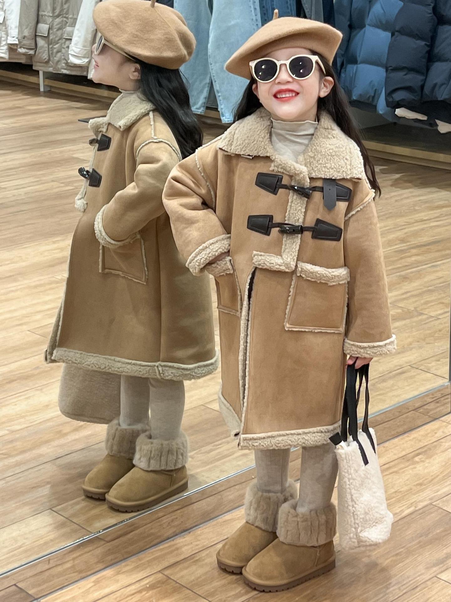 소녀 겨울 불규칙한 가죽 버튼 라켓 기모 두꺼운 다크 브라운 모피 원피스 따뜻한 중간 길이 코트 재킷스토어 가기