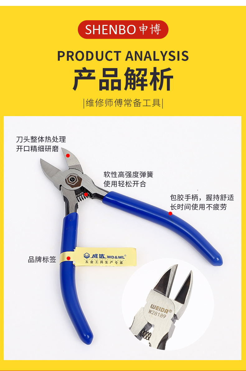 Weida 전문 펜치 산업용 펜치 노즐 펜치 플라스틱 절단 펜치 대각선 펜치 모델 절단 펜치
