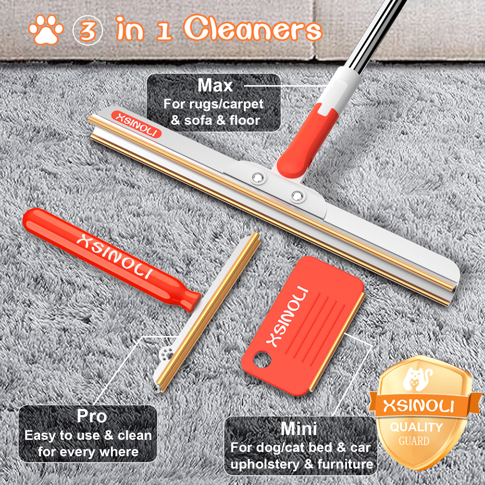 고양이와 개의 털을 제거하는 3-in-1 제모기, 카펫 및 넓은 면적의 털 제거용 고양이 털 브러시스토어 가기