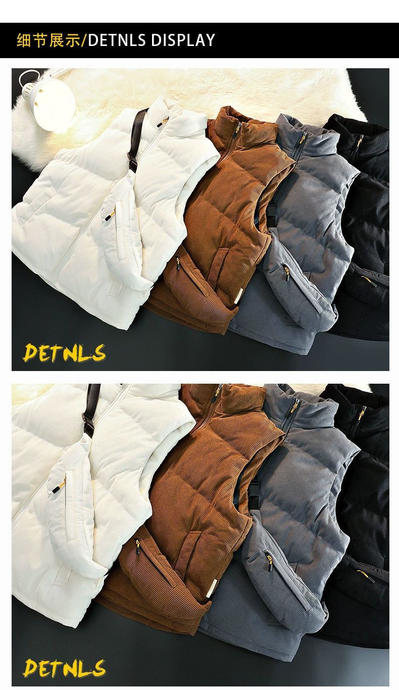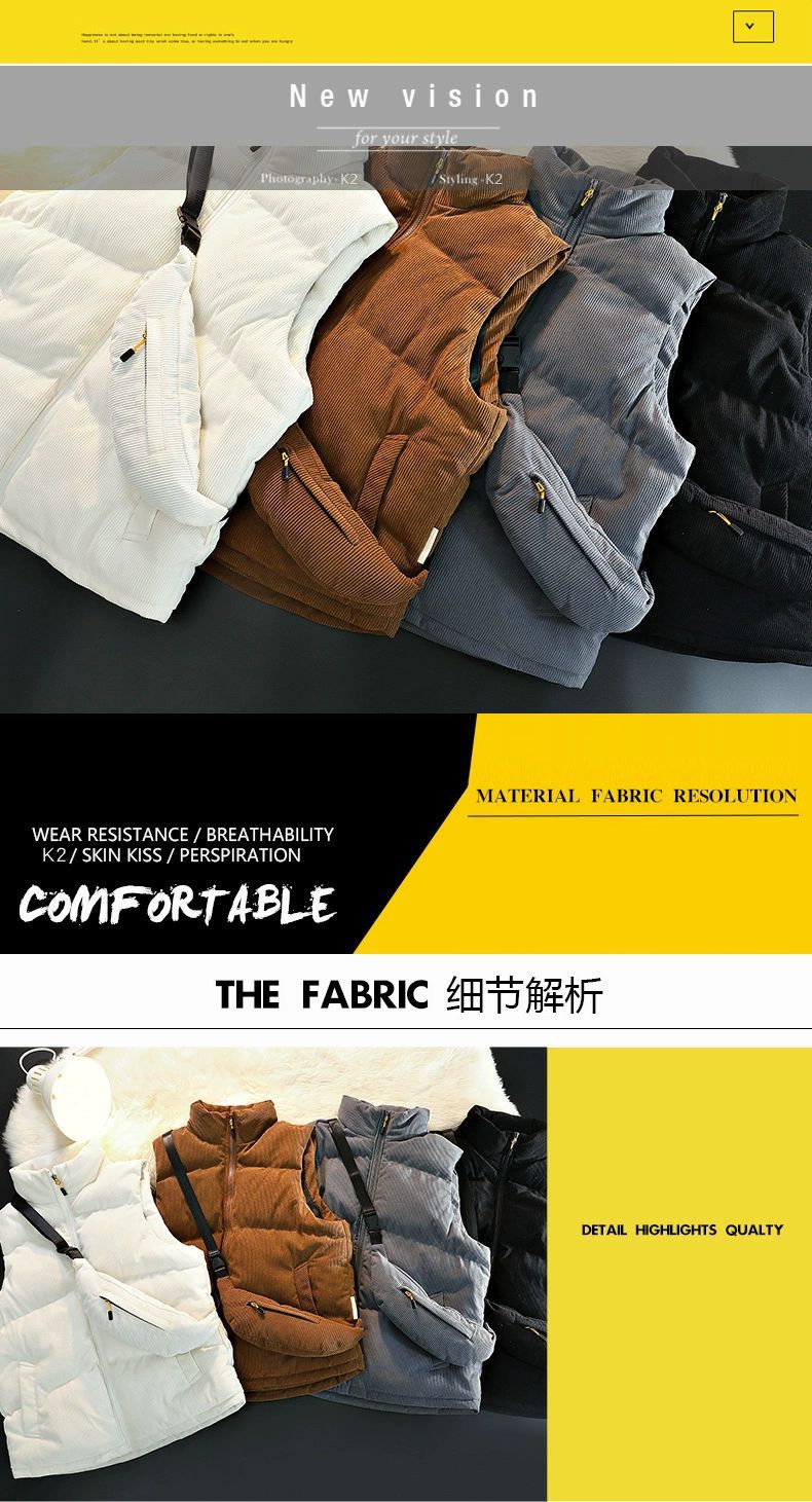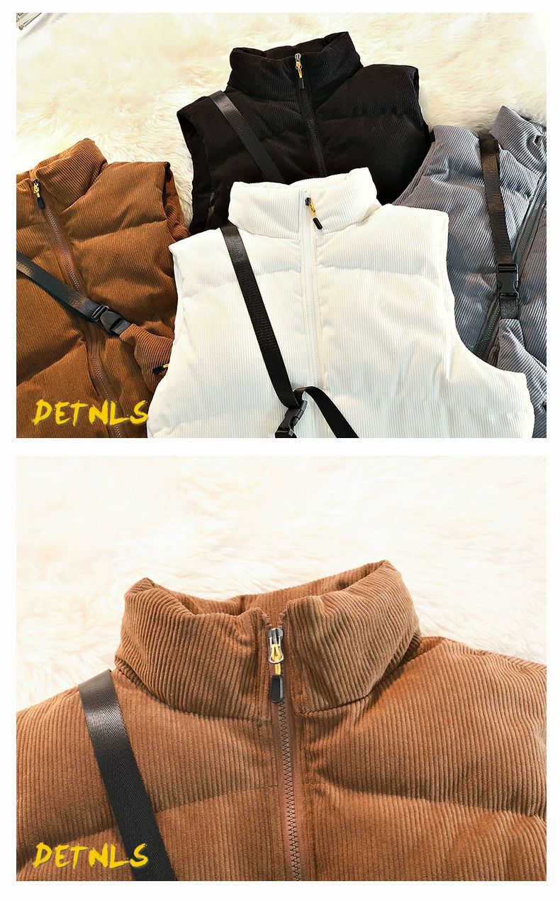 다운 코튼 조끼 남자의 가을과 겨울 커플 두꺼운 따뜻한 조끼 코듀로이 조끼 일본 빈티지 자켓을 착용