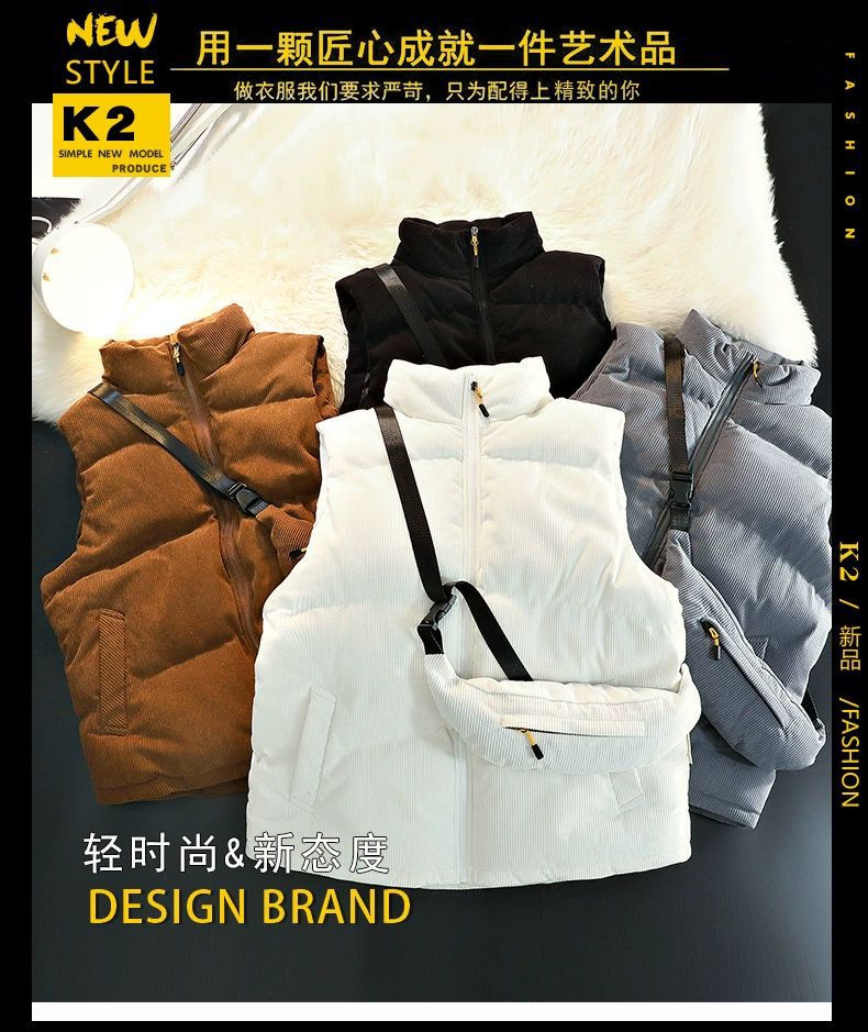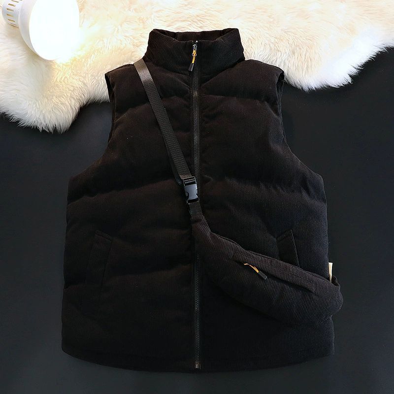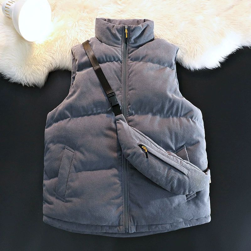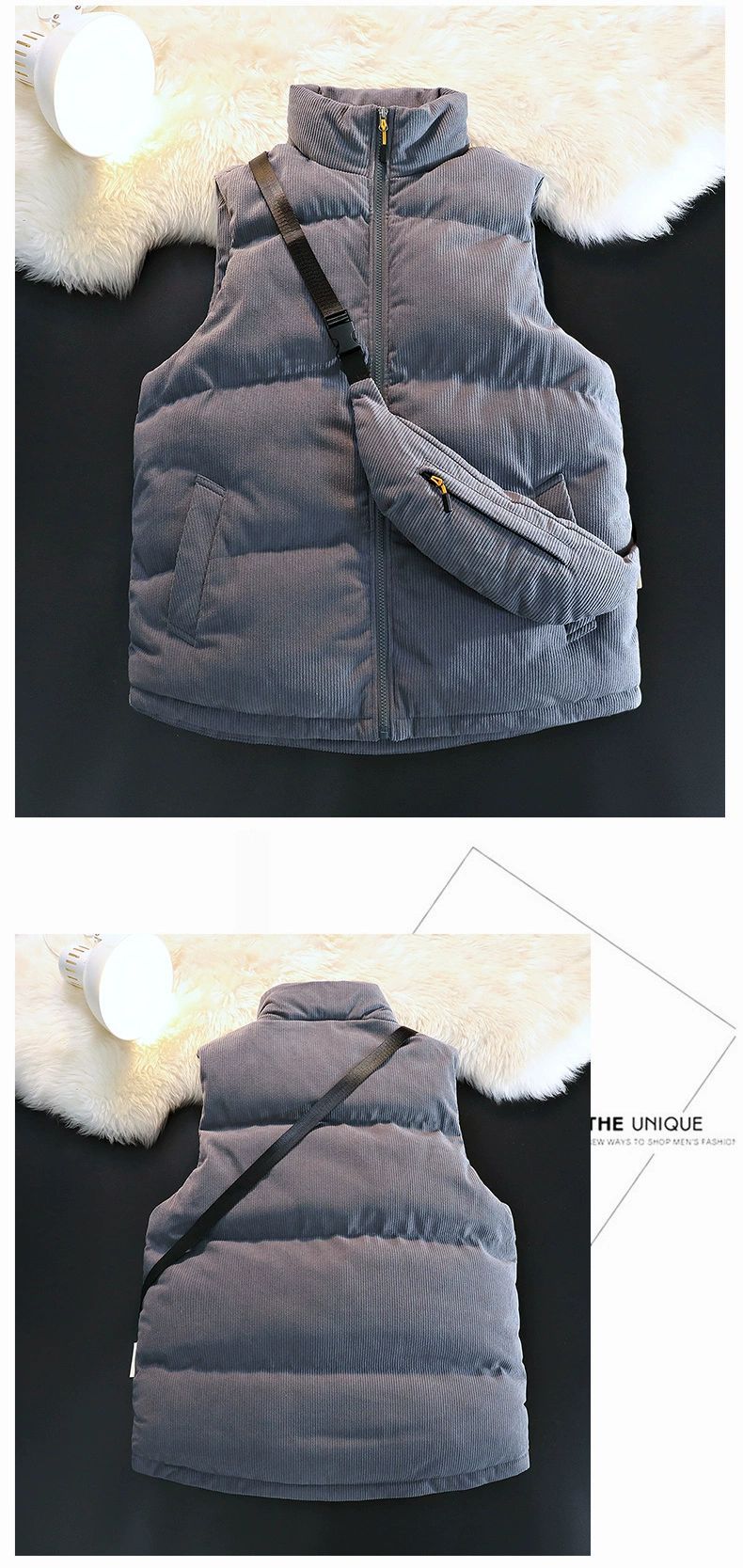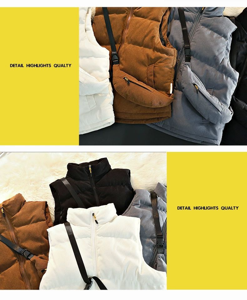 다운 코튼 조끼 남자의 가을과 겨울 커플 두꺼운 따뜻한 조끼 코듀로이 조끼 일본 빈티지 자켓을 착용