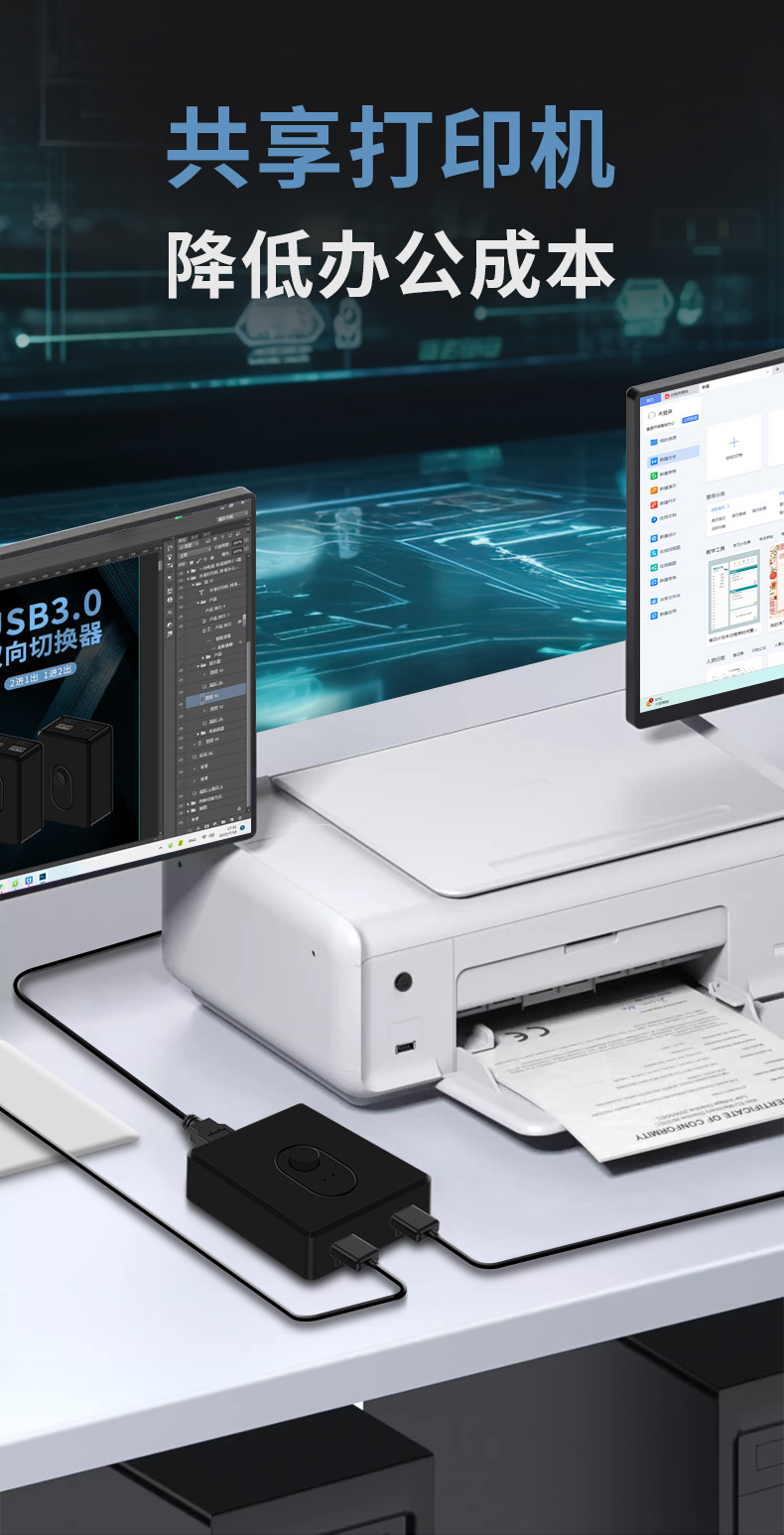 USB3.0 스위처 2 in 1 out 1 드래그 2 양방향 고속 스위칭 프린터 U 디스크 하드 디스크 컴퓨터 공유기