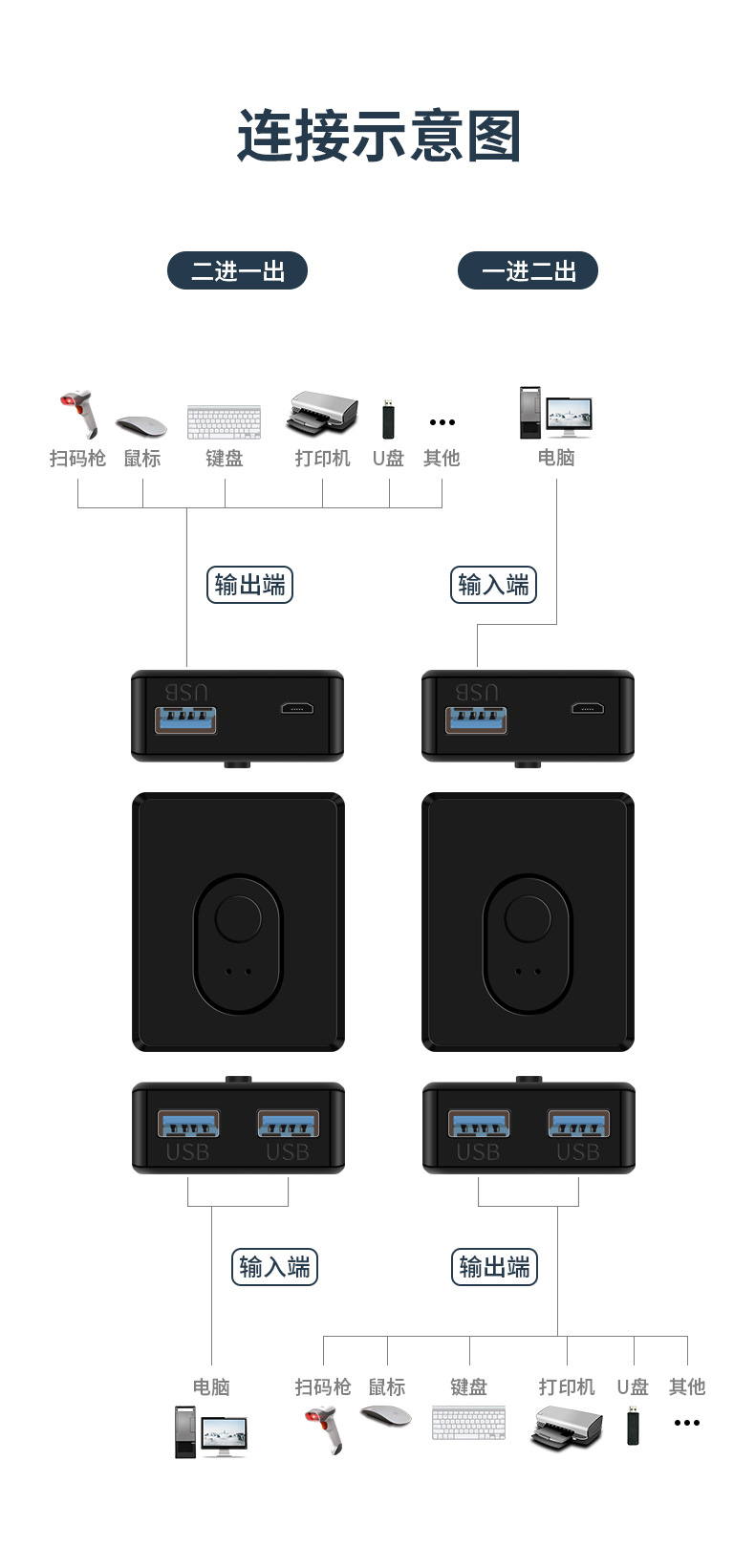 USB3.0 스위처 2 in 1 out 1 드래그 2 양방향 고속 스위칭 프린터 U 디스크 하드 디스크 컴퓨터 공유기스토어 가기