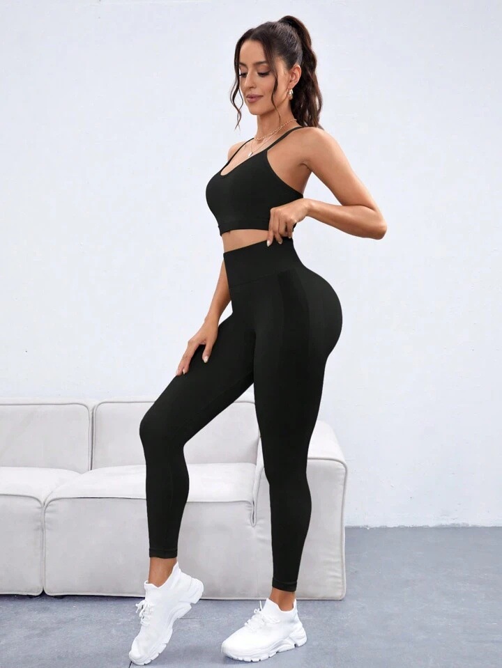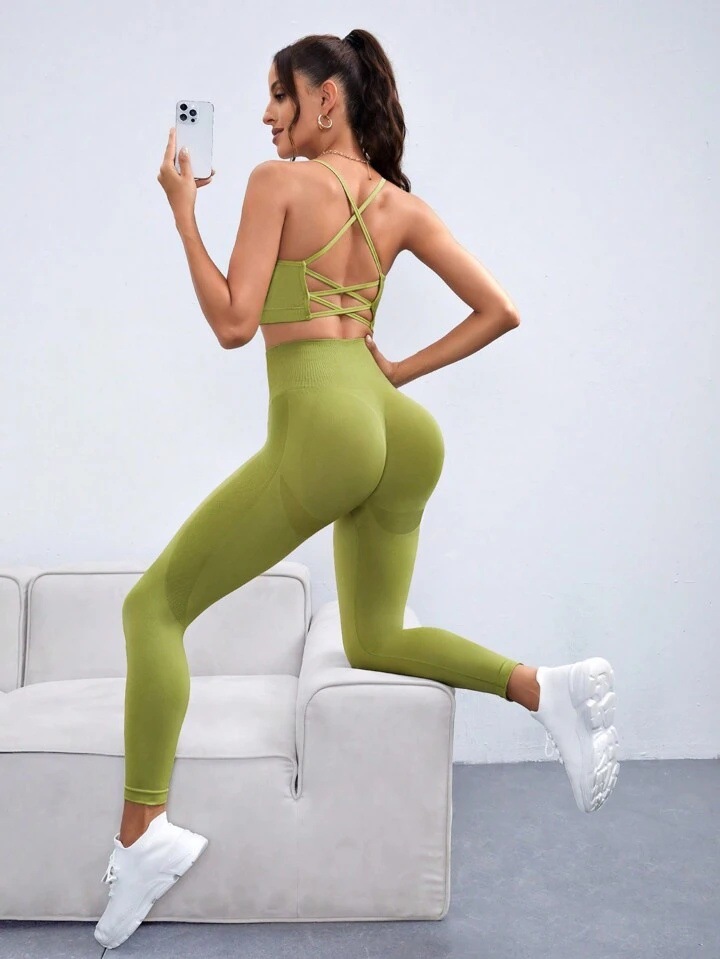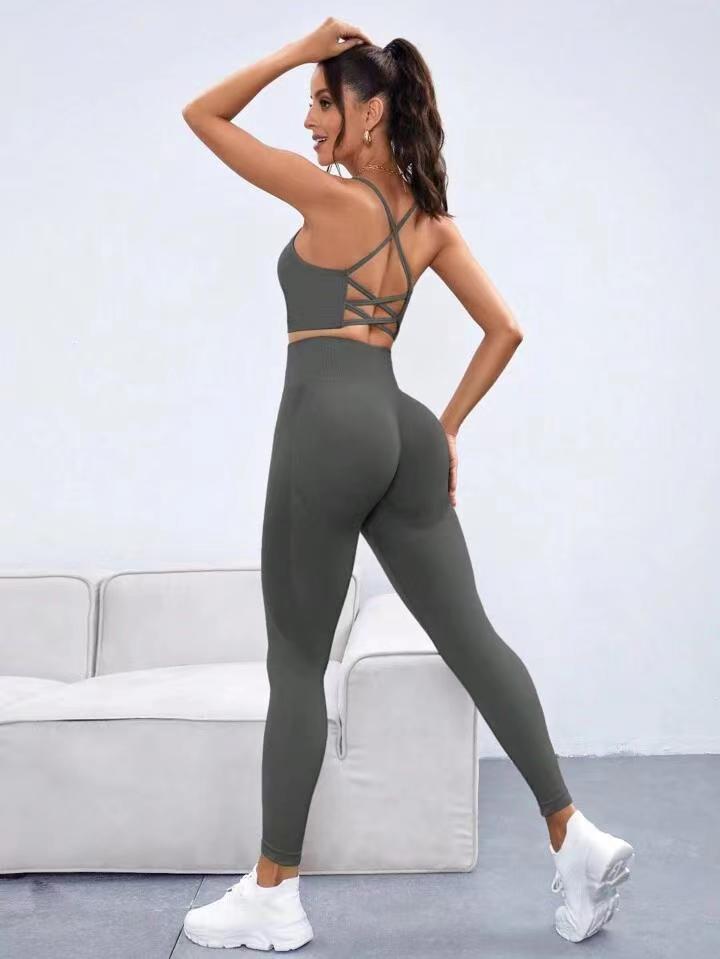 원활한 크로스 스트랩 스포츠 브라 바지 요가 의류 여성 야외 달리기 빠른 건조 속옷 엉덩이 바지 세트