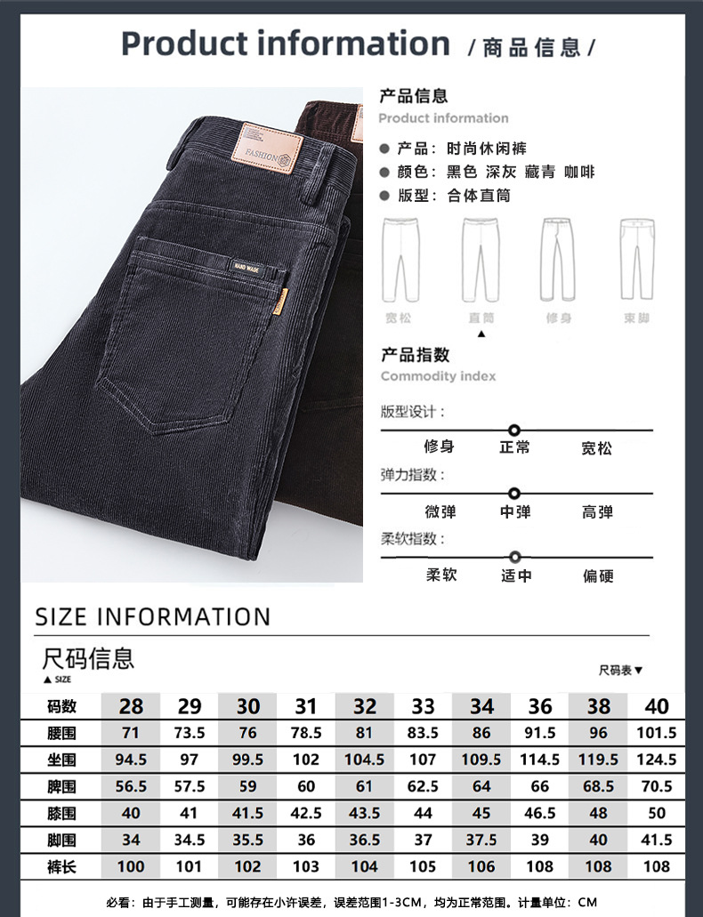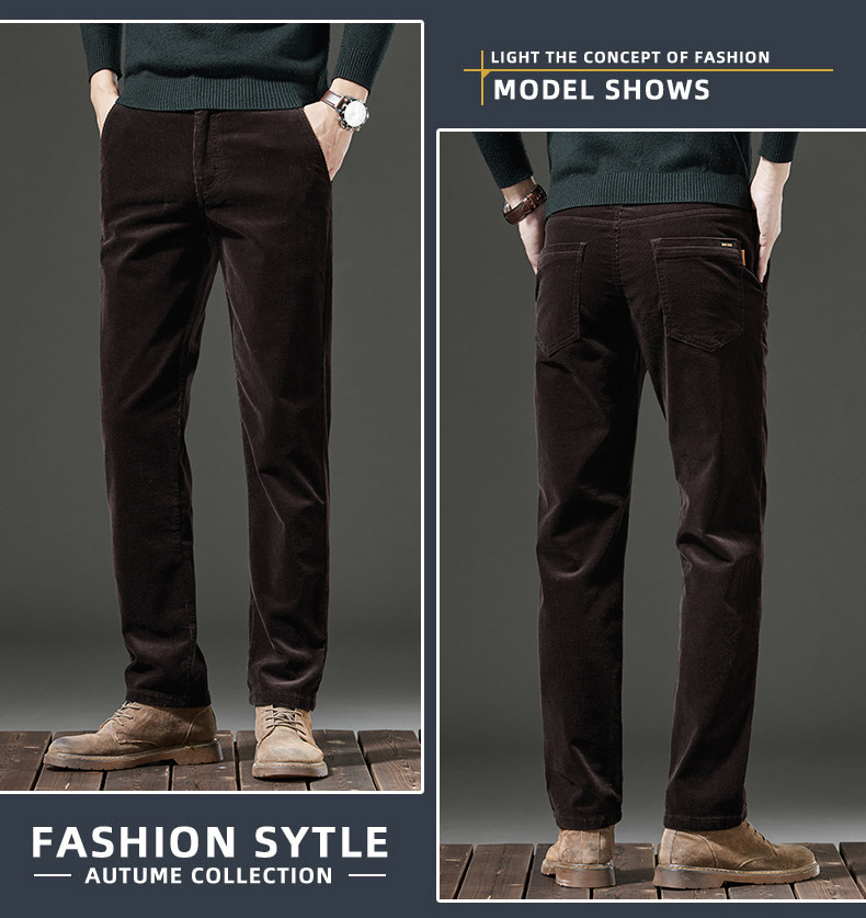 코듀로이 스트레이트 다리 바지 남성 클래식 5 백 디자인 부드러운 따뜻한 겨울 새로운 빛 럭셔리 비즈니스 캐주얼 바지 탄성스토어 가기