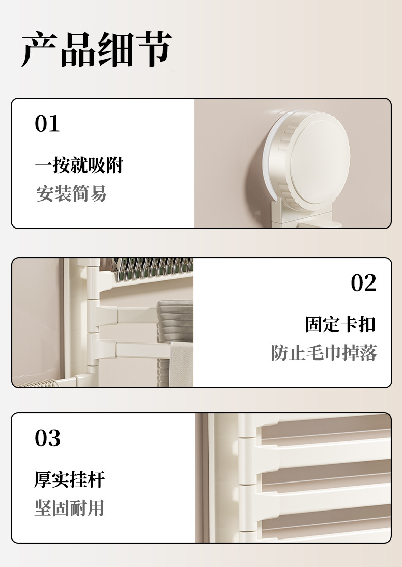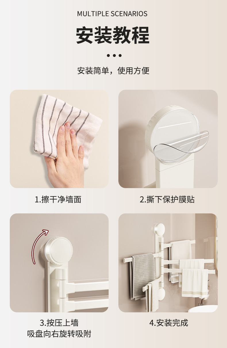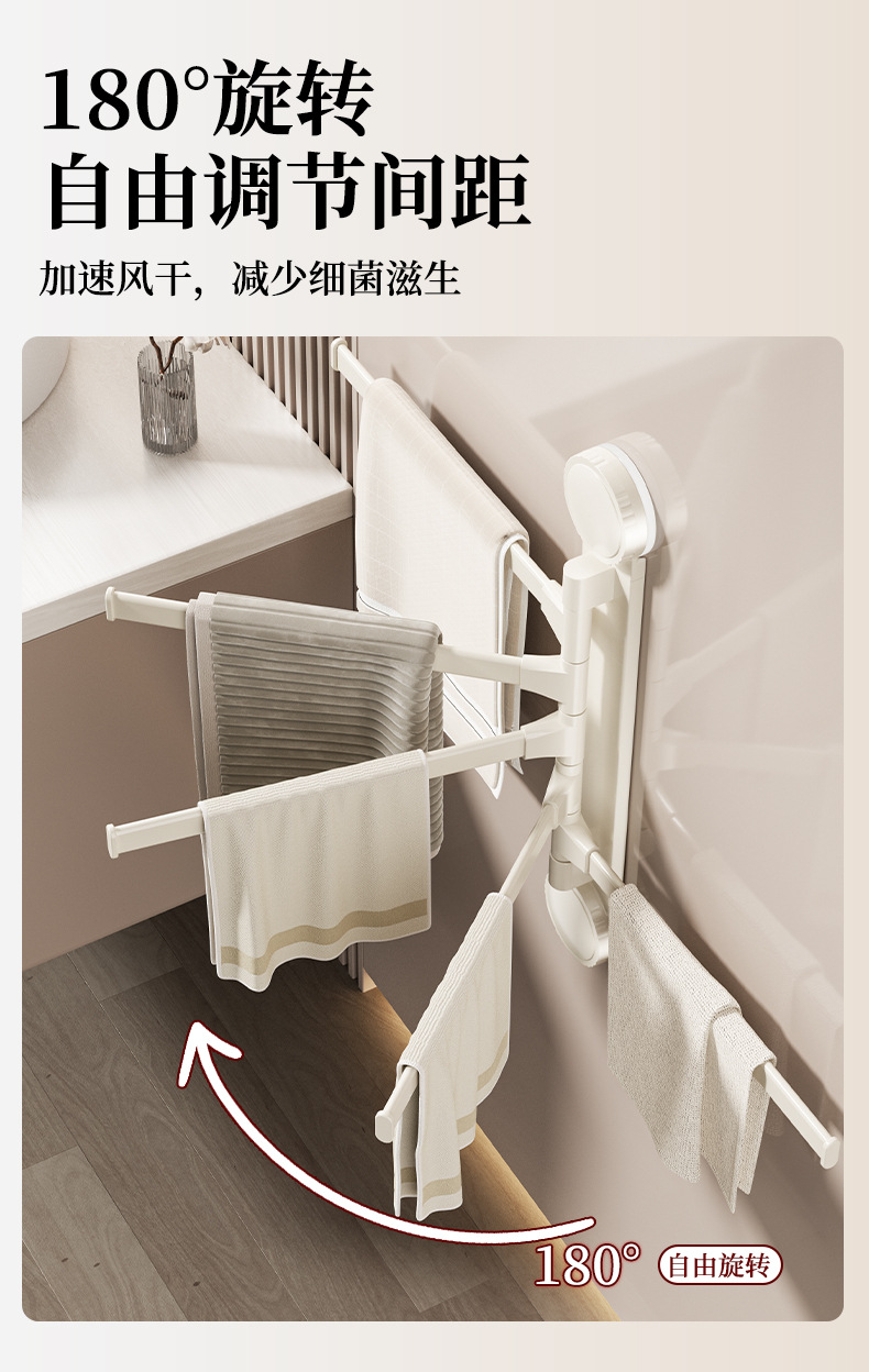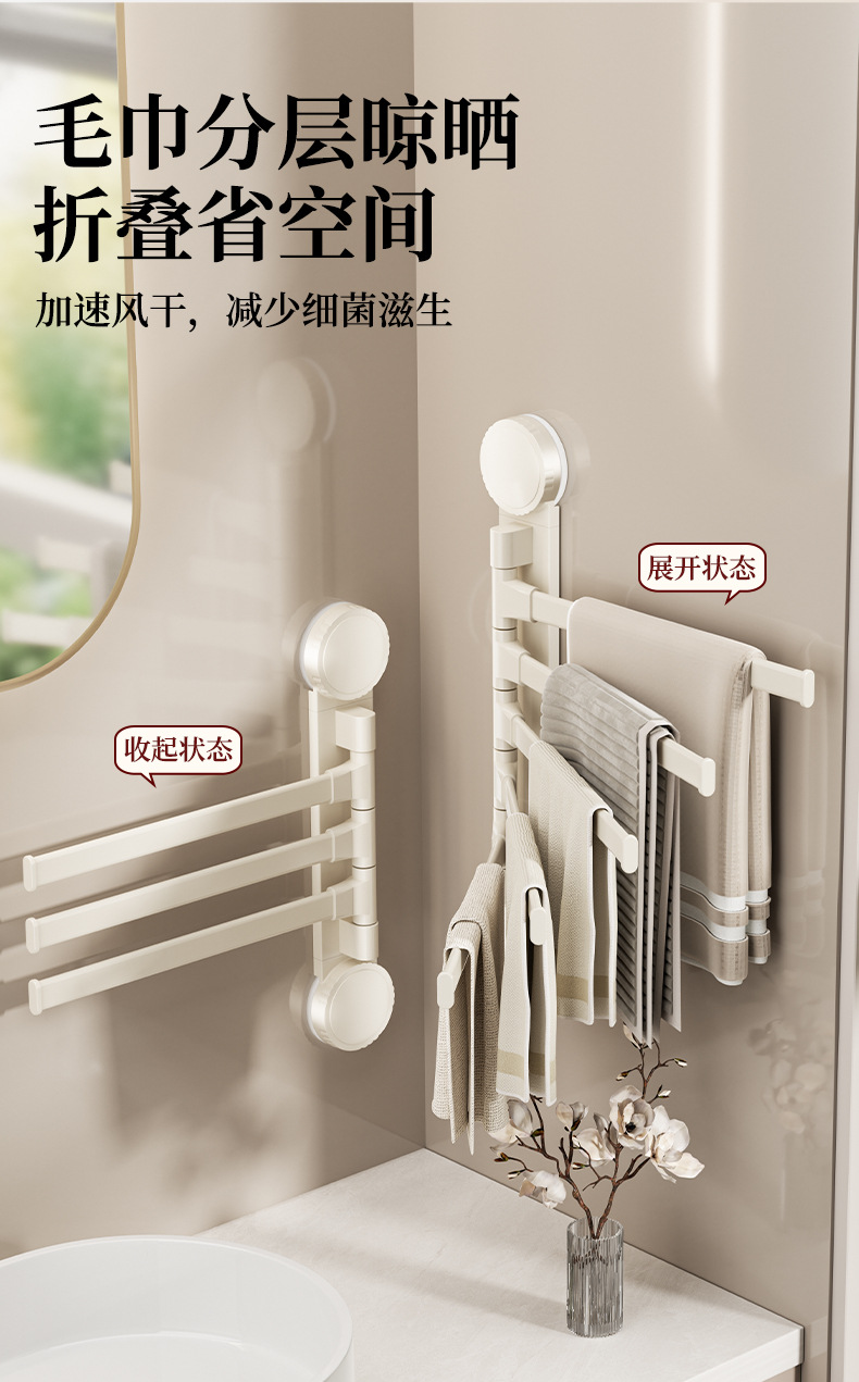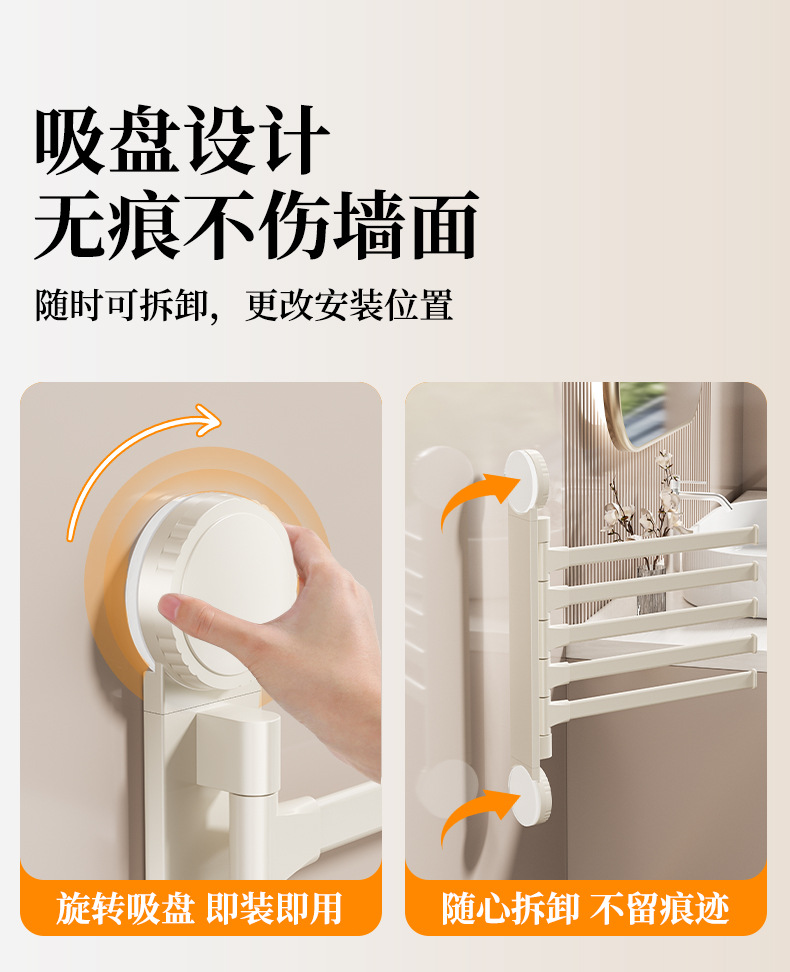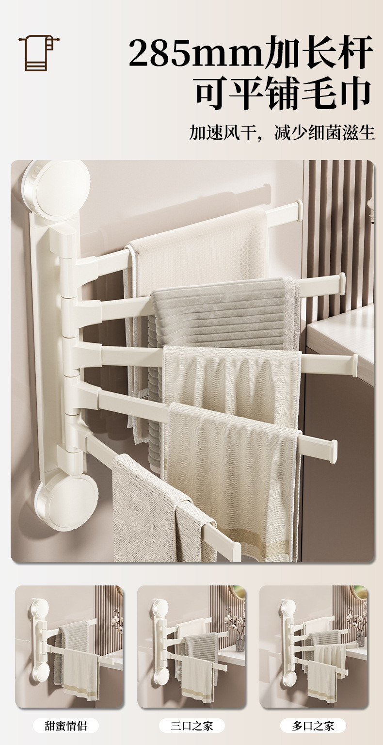 • 크림 흡입 컵 회전 수건 걸이 3개 막대