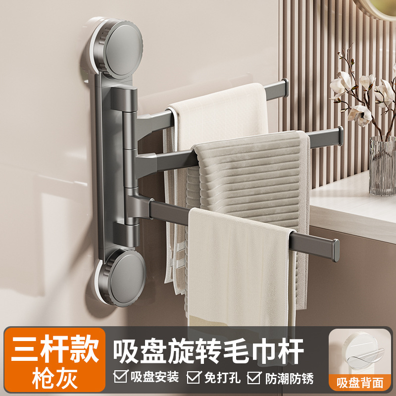 • 건 애쉬 흡입 컵 회전 수건 걸이 3개 막대