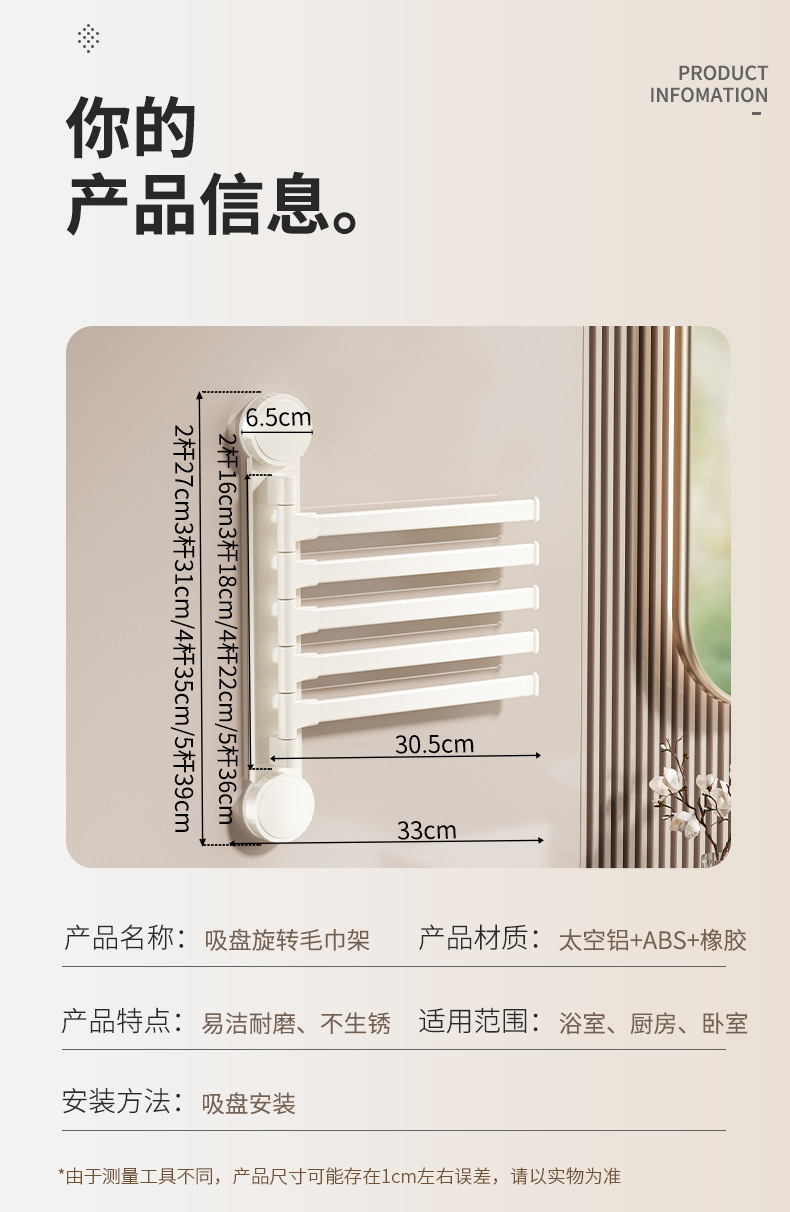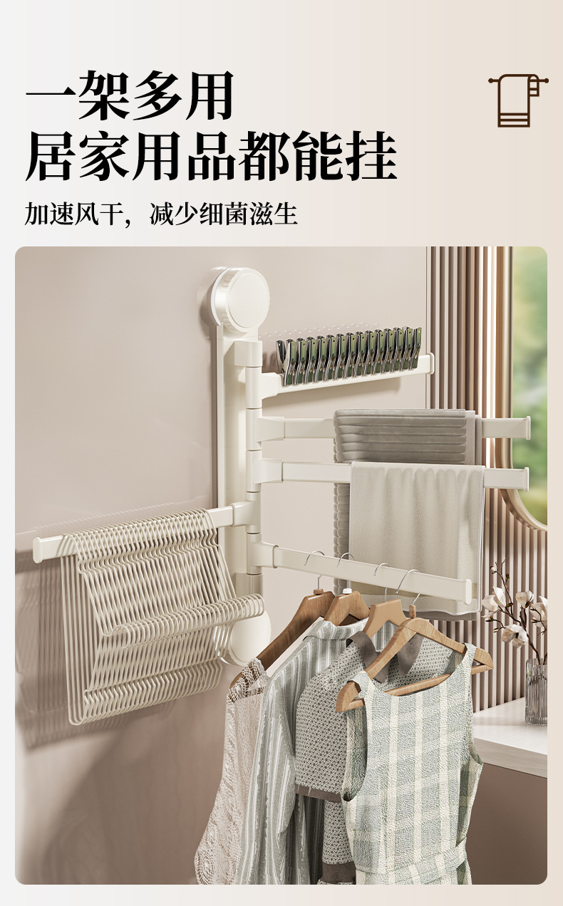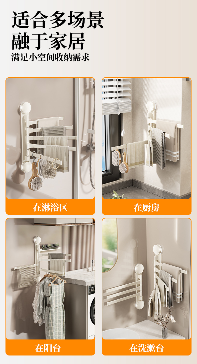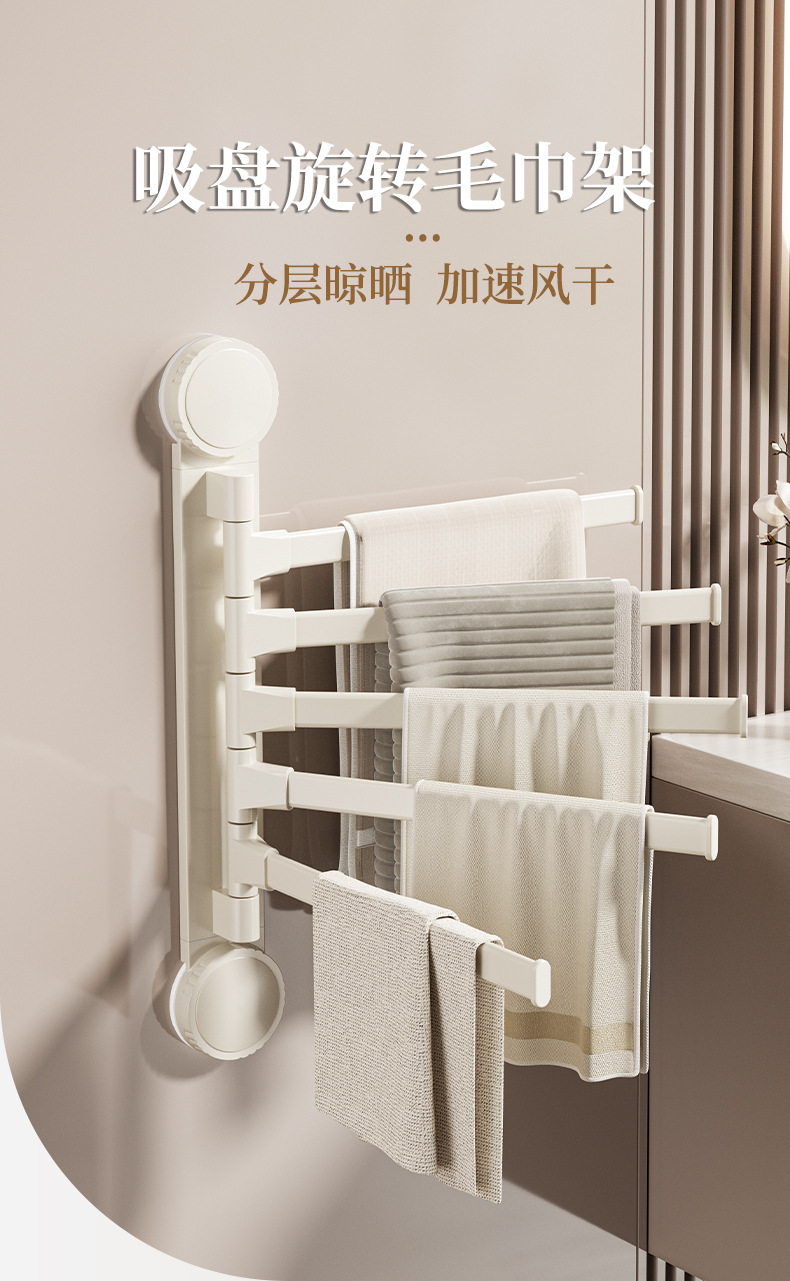 • 크림 흡입 컵 회전 수건 걸이 5개 막대