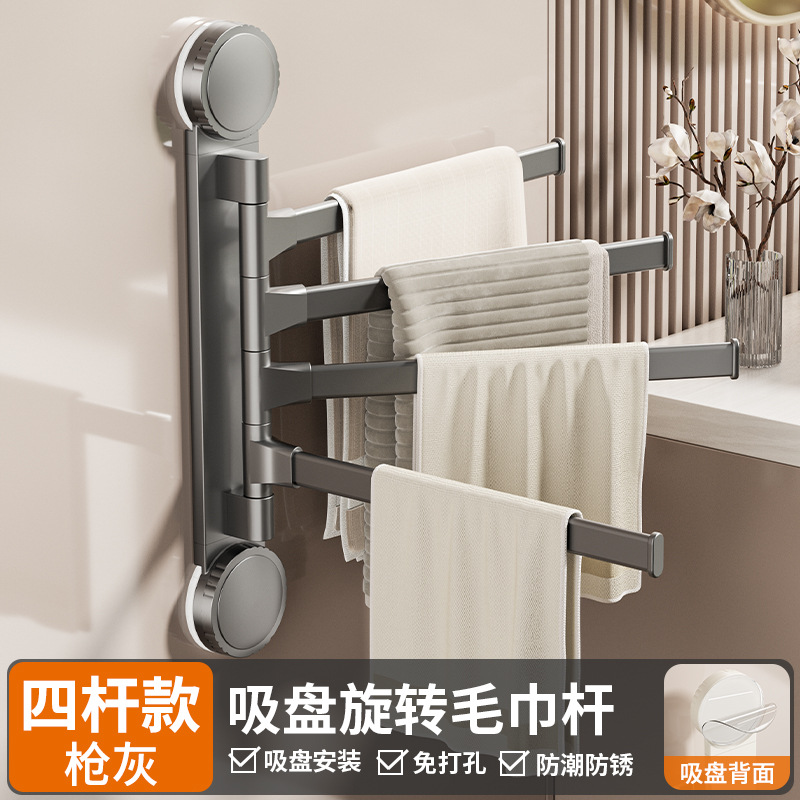 • 총 회색 흡입 컵 회전 수건 걸이 4개 막대