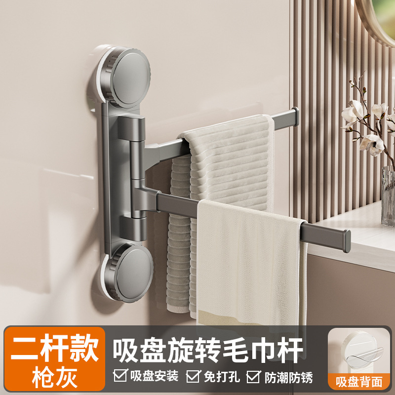 • 총 회색 흡입 컵 회전 수건 걸이 2개 막대